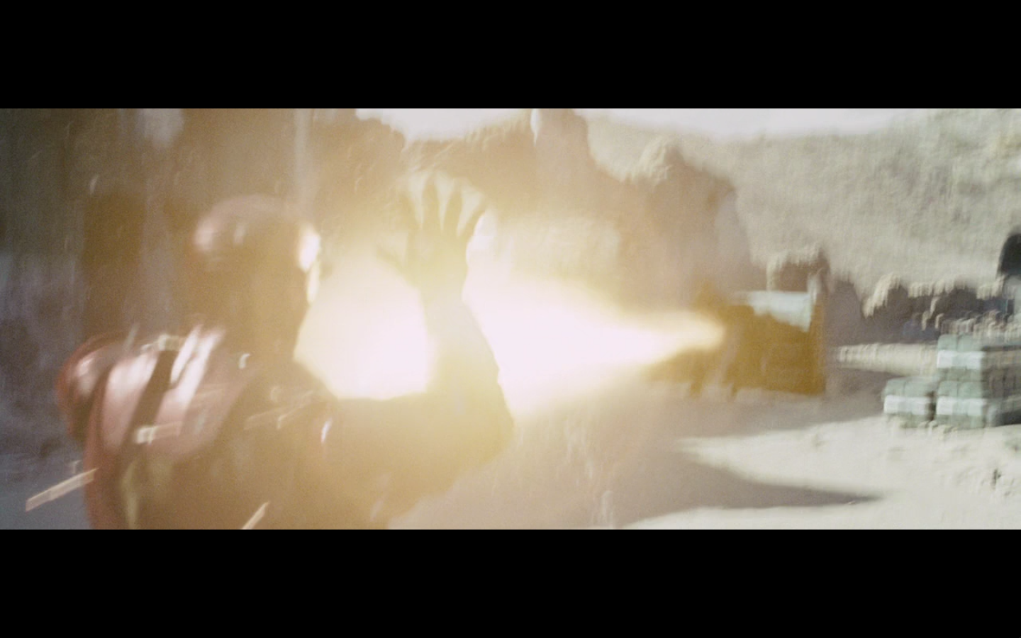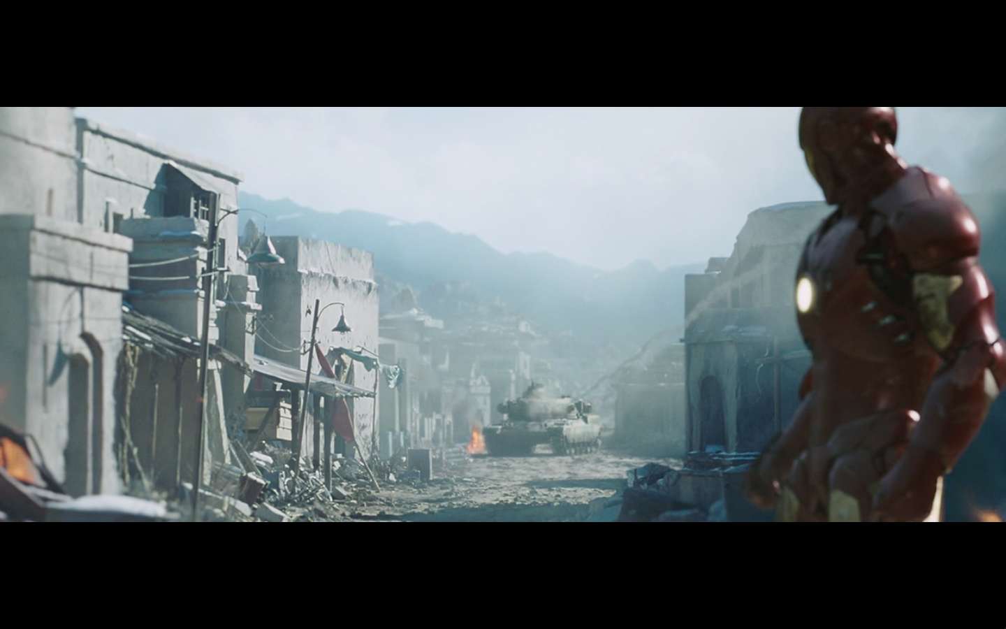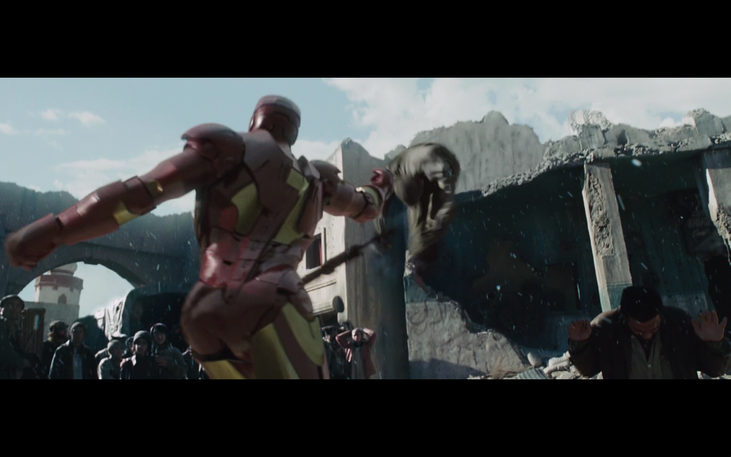 I hate it when children look up in movies. It’s always that moment of wonder. These are the moments Favreau worked in to subliminally appeal to kids. If Stark was a real badass, there’d be one really hot hostage chick who would look up like, “D-AMN! I wanna get fucked!”