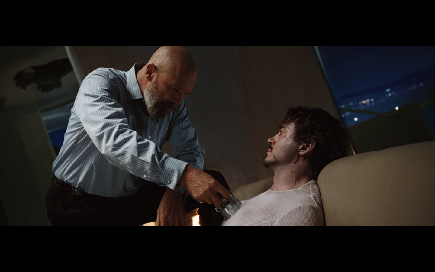 See, this would have been better without like 80 reveals leading up to it, right? You’d be just as shocked as Tony is, and you could even shoot it from his perspective as Jeff Bridges walks back and forth, in and out of his line of sight. That would be fucking diabolical.