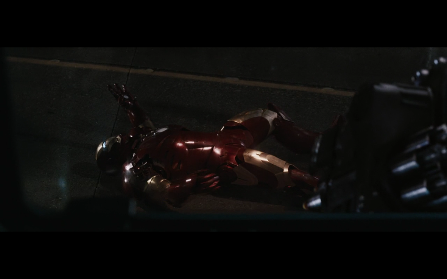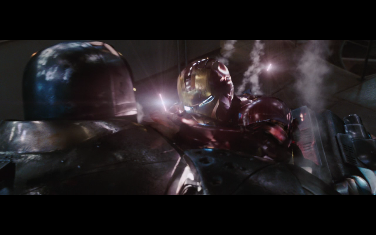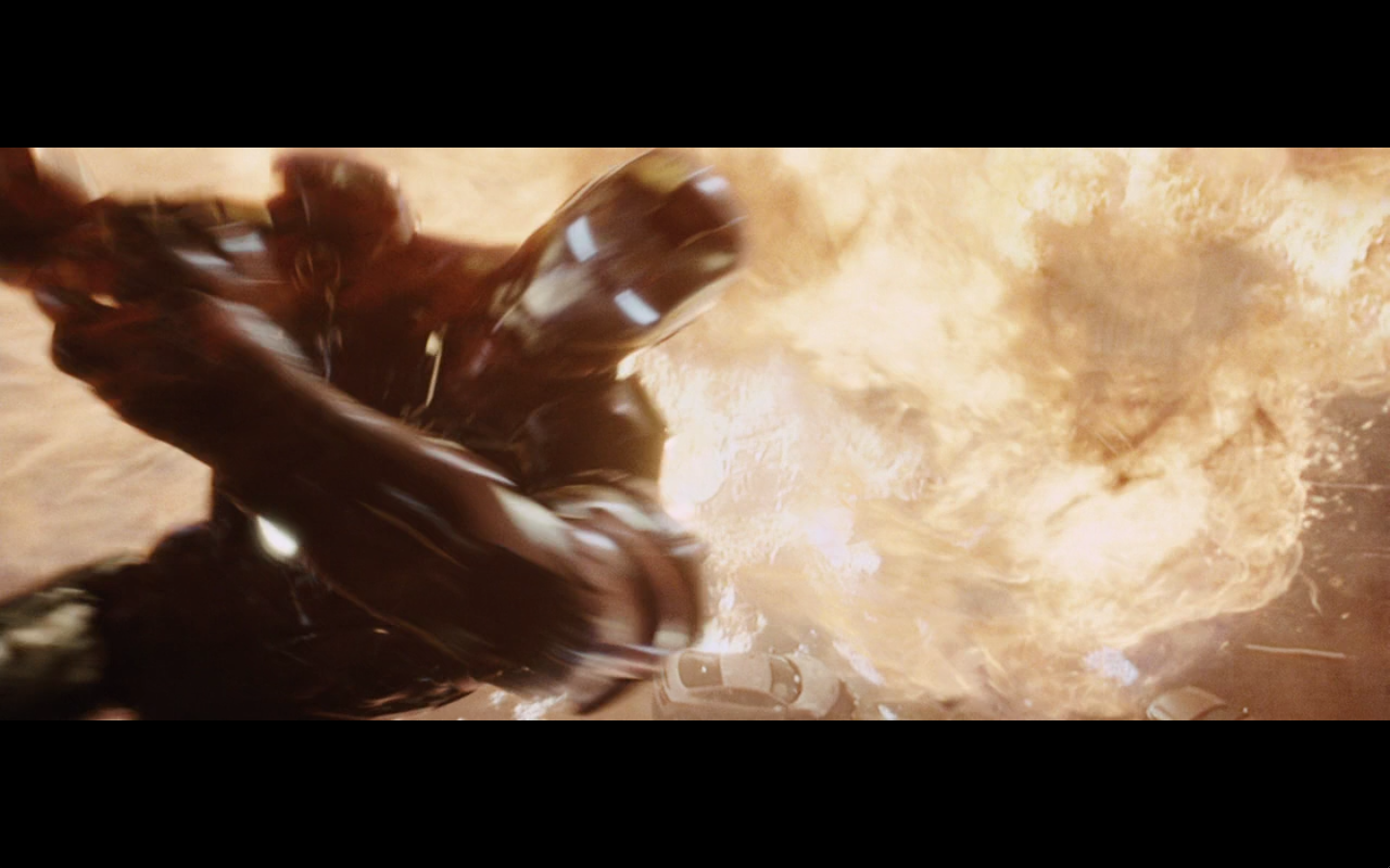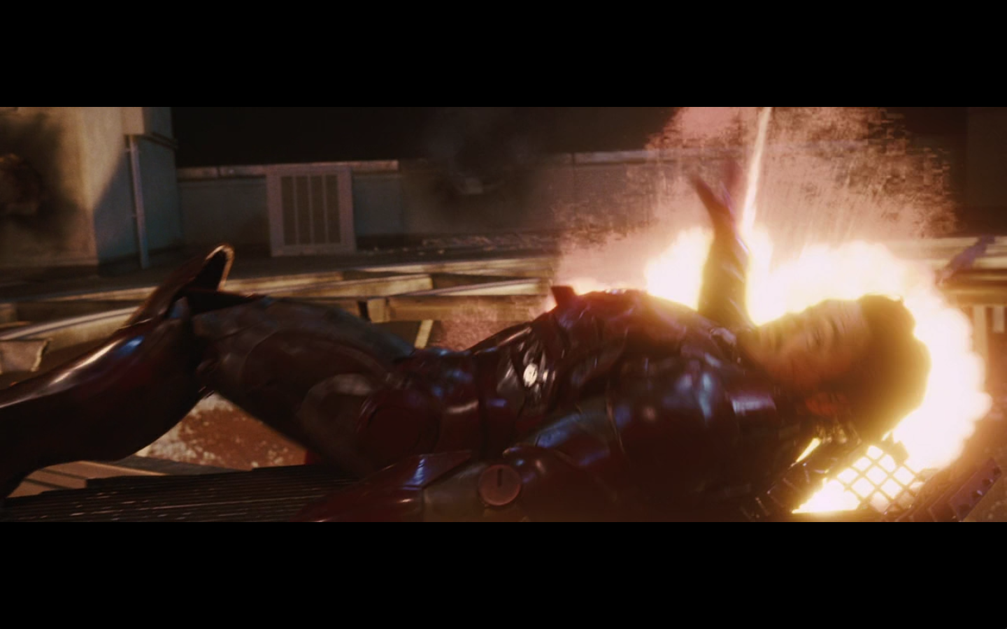 At least he heard it and realized what was going on. This is all around a lesser version of what Tony did earlier in the movie, down to the explosion. So that’s a nice juxtaposition.