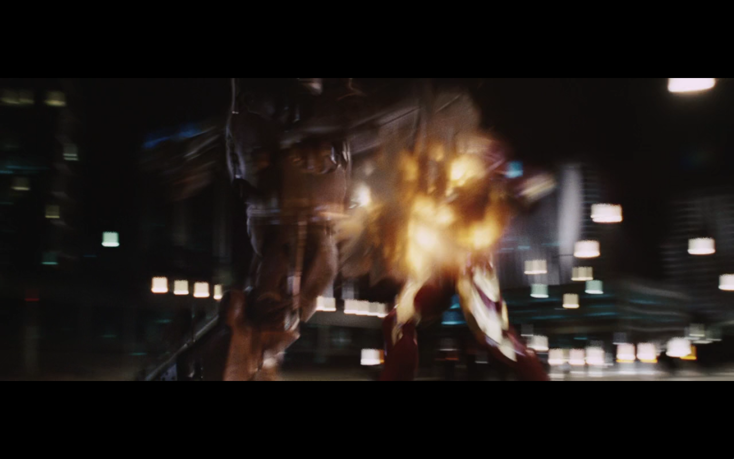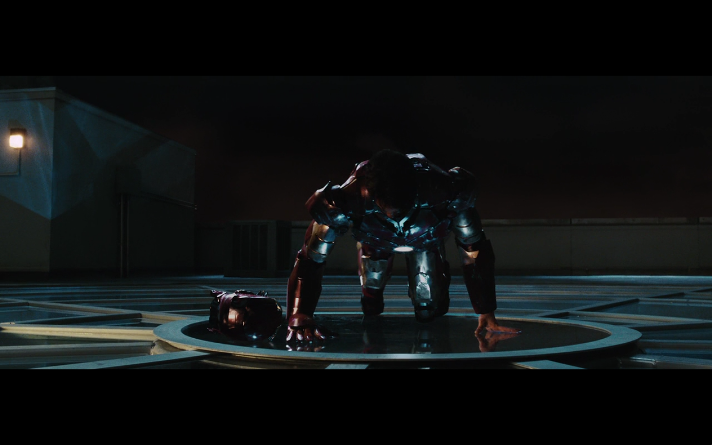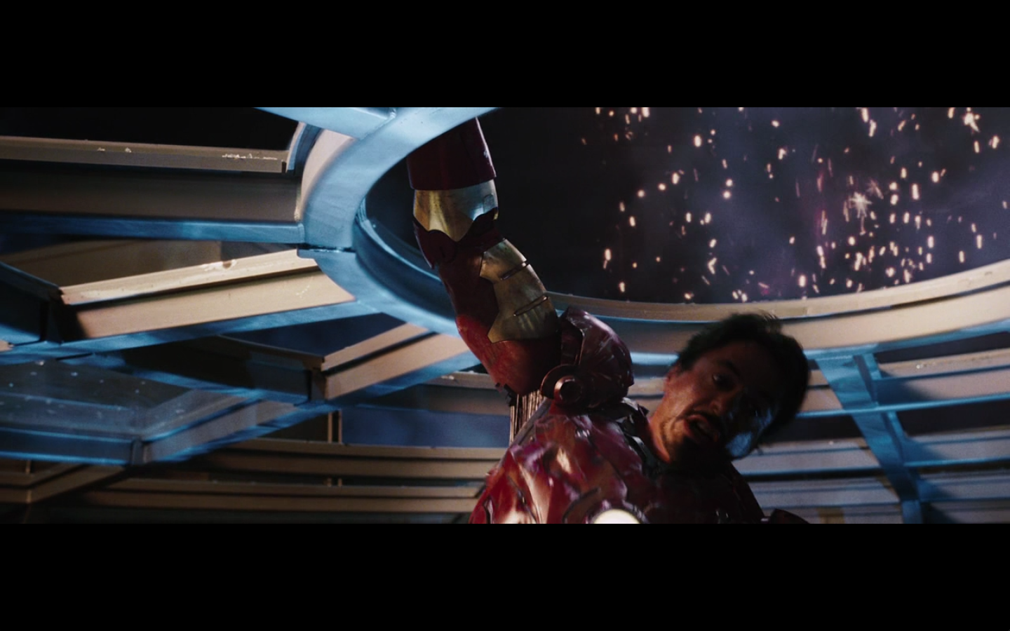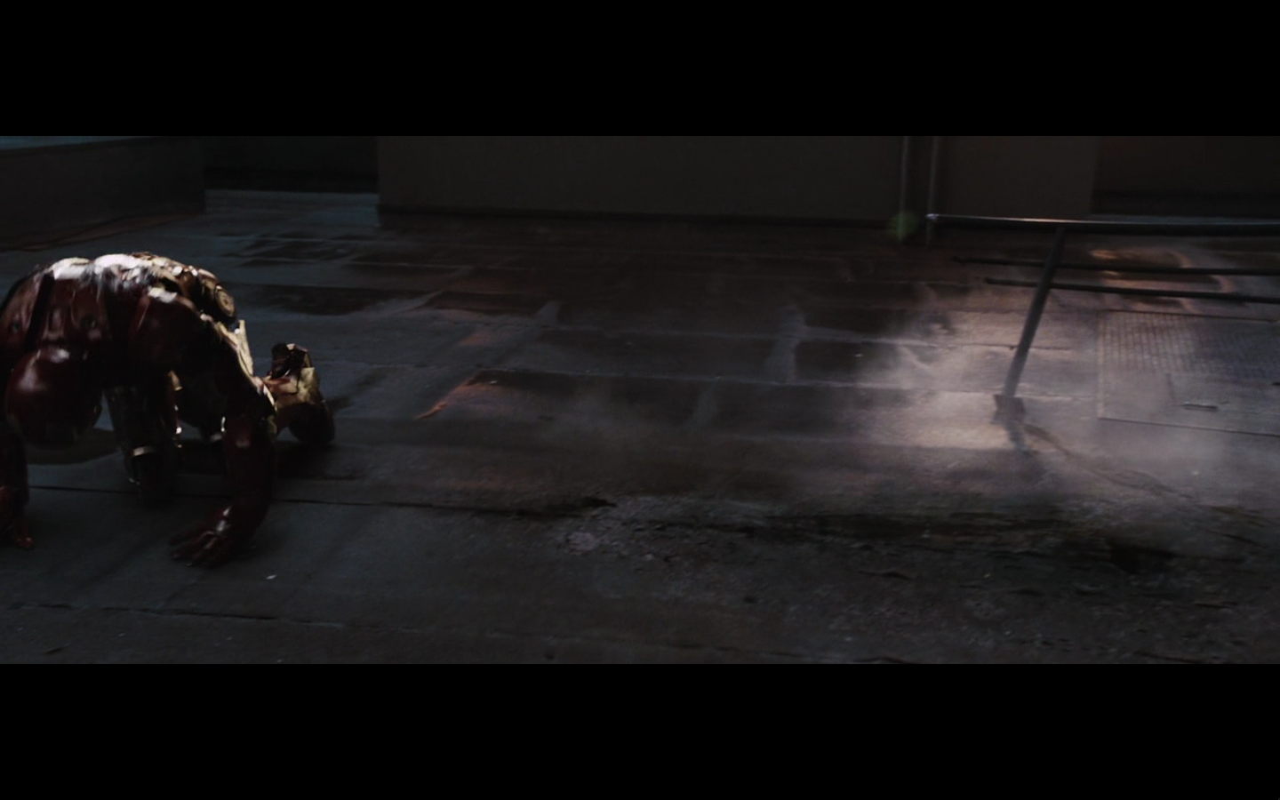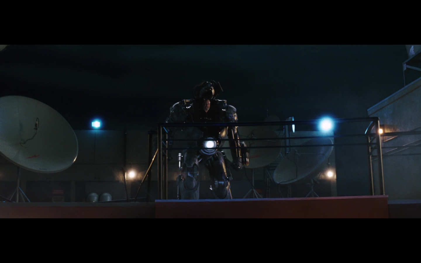 At least he heard it and realized what was going on. This is all around a lesser version of what Tony did earlier in the movie, down to the explosion. So that’s a nice juxtaposition.