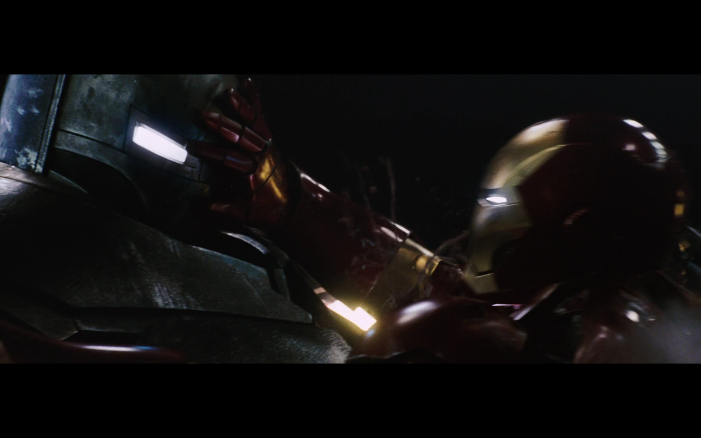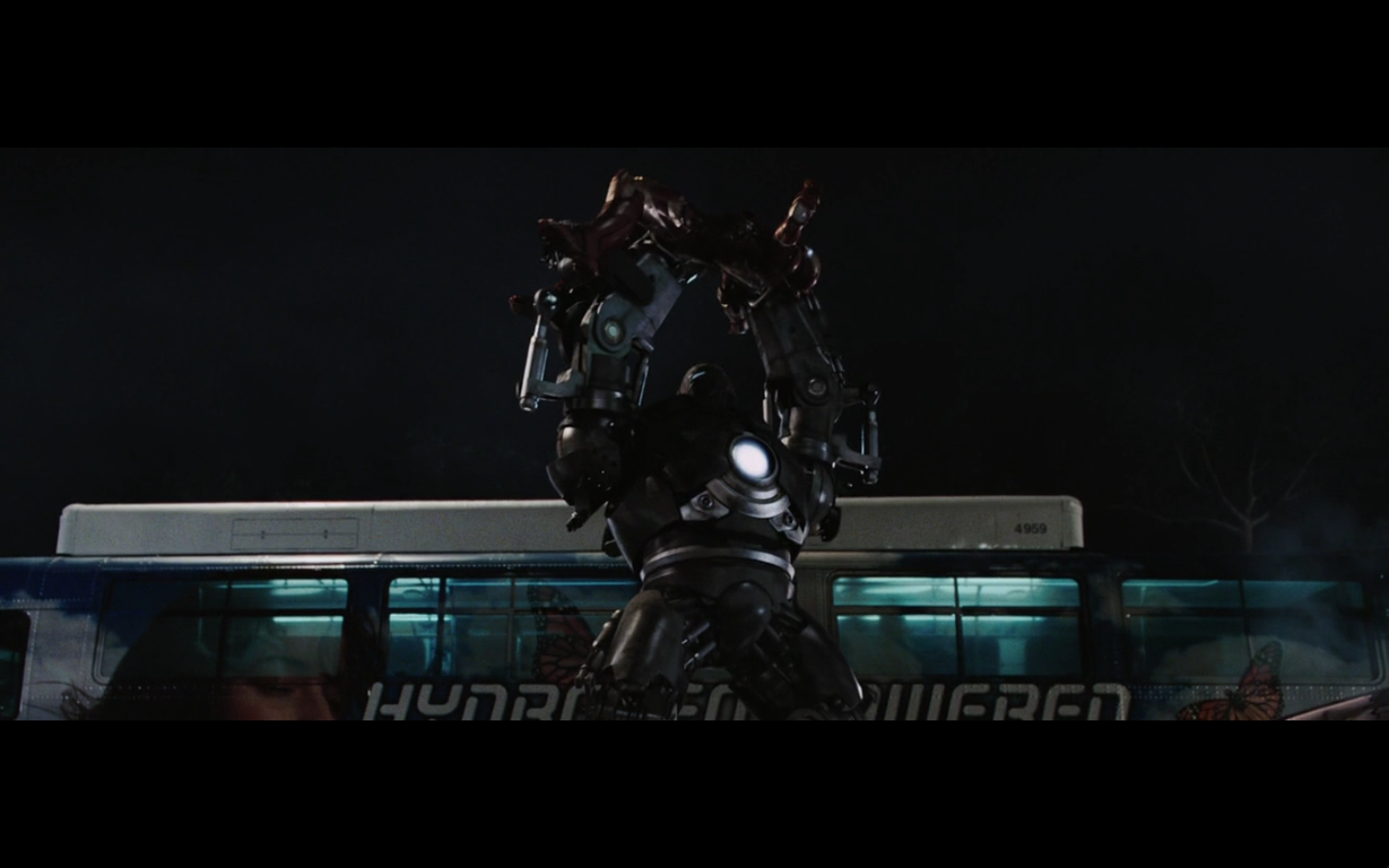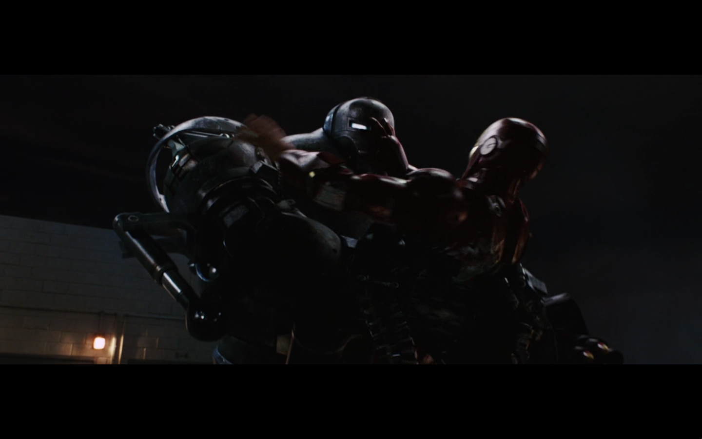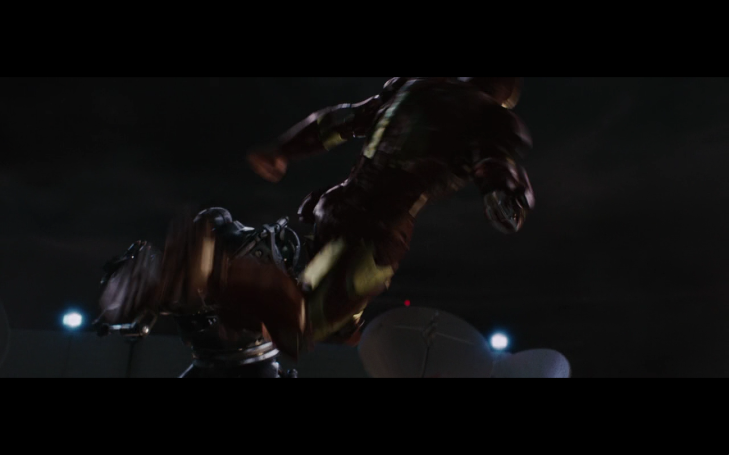 At least he heard it and realized what was going on. This is all around a lesser version of what Tony did earlier in the movie, down to the explosion. So that’s a nice juxtaposition.