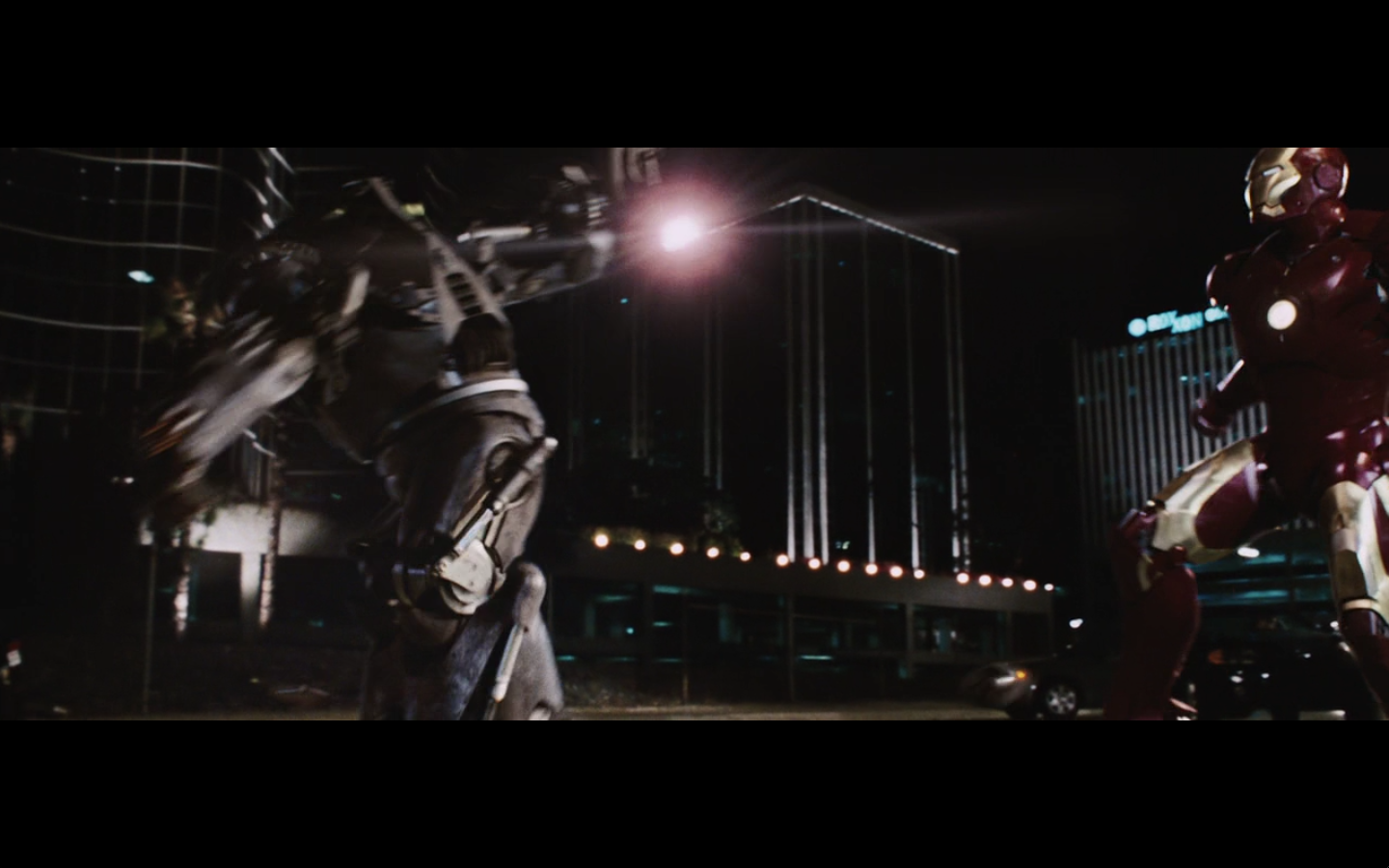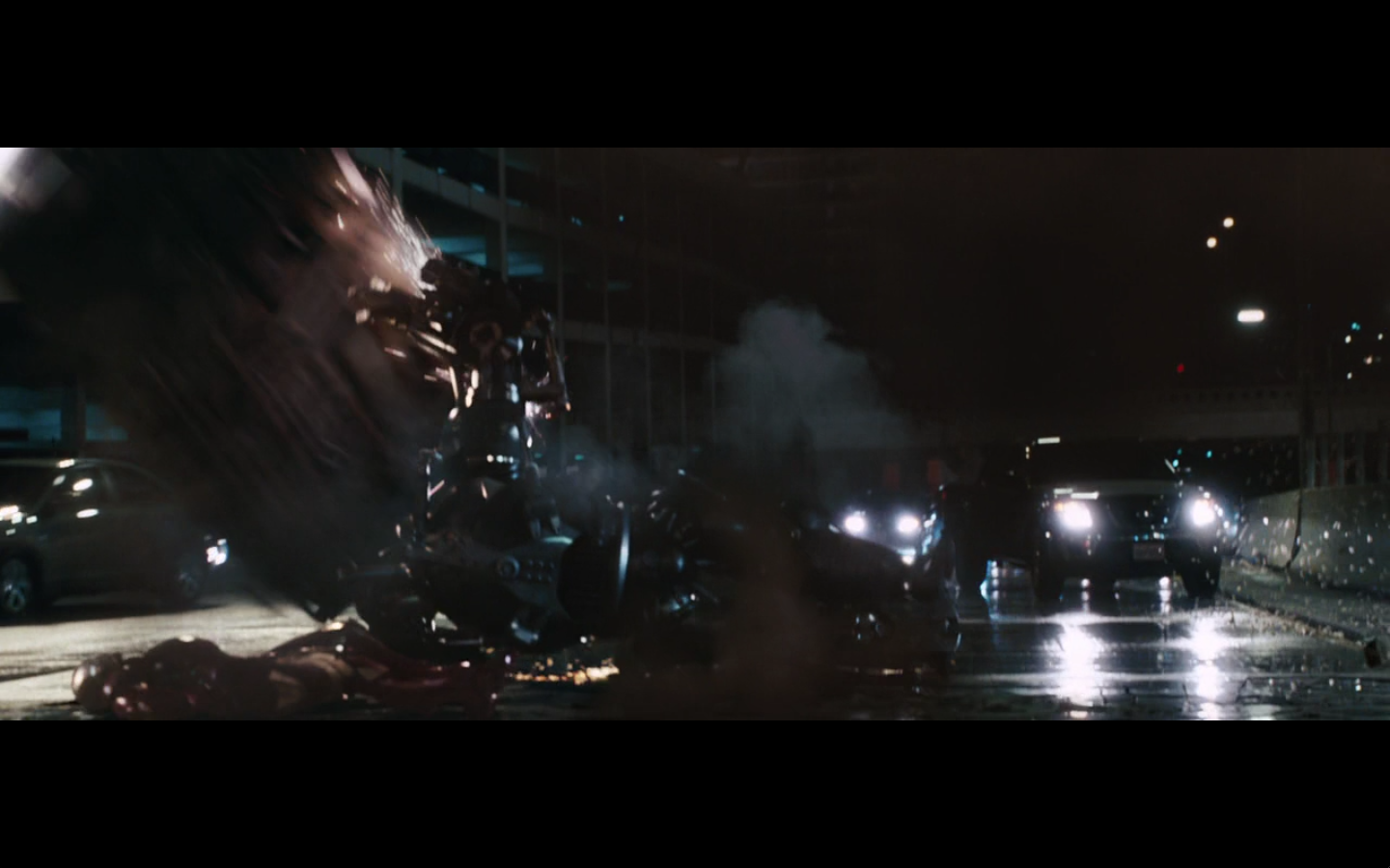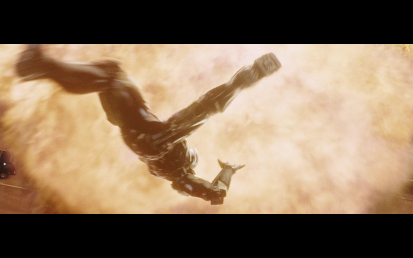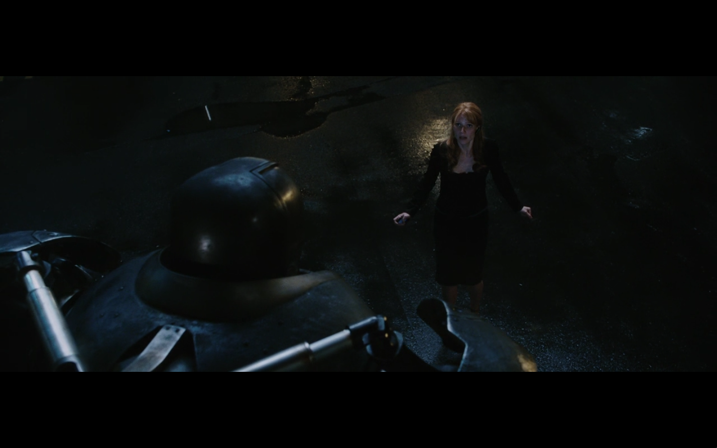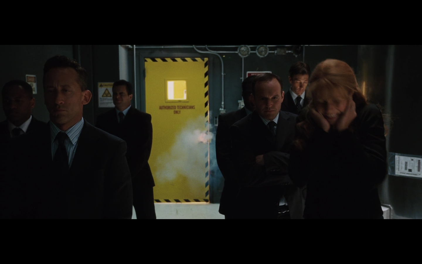 At least he heard it and realized what was going on. This is all around a lesser version of what Tony did earlier in the movie, down to the explosion. So that’s a nice juxtaposition.