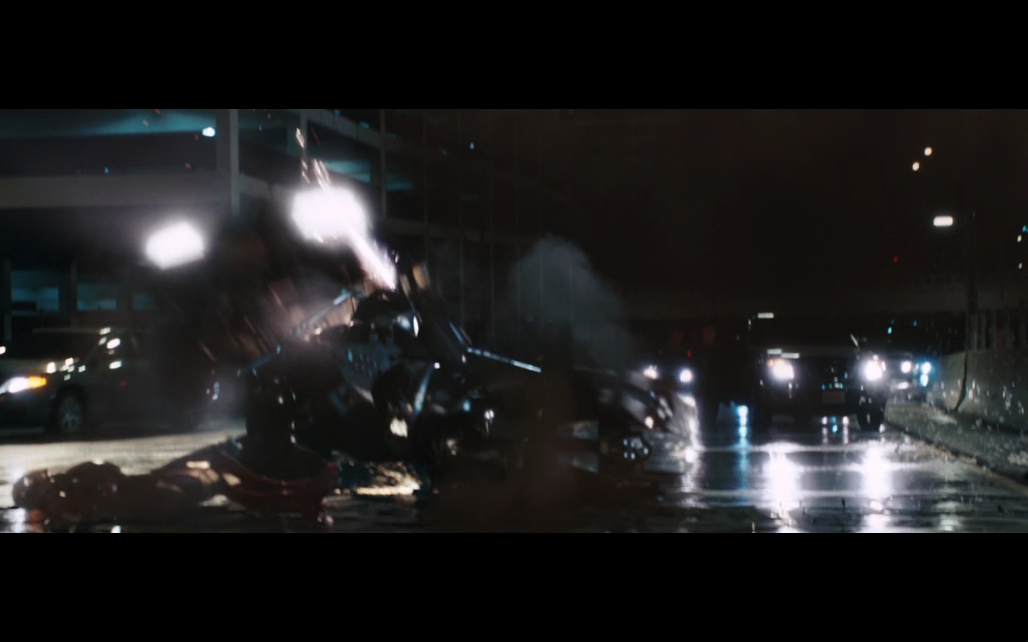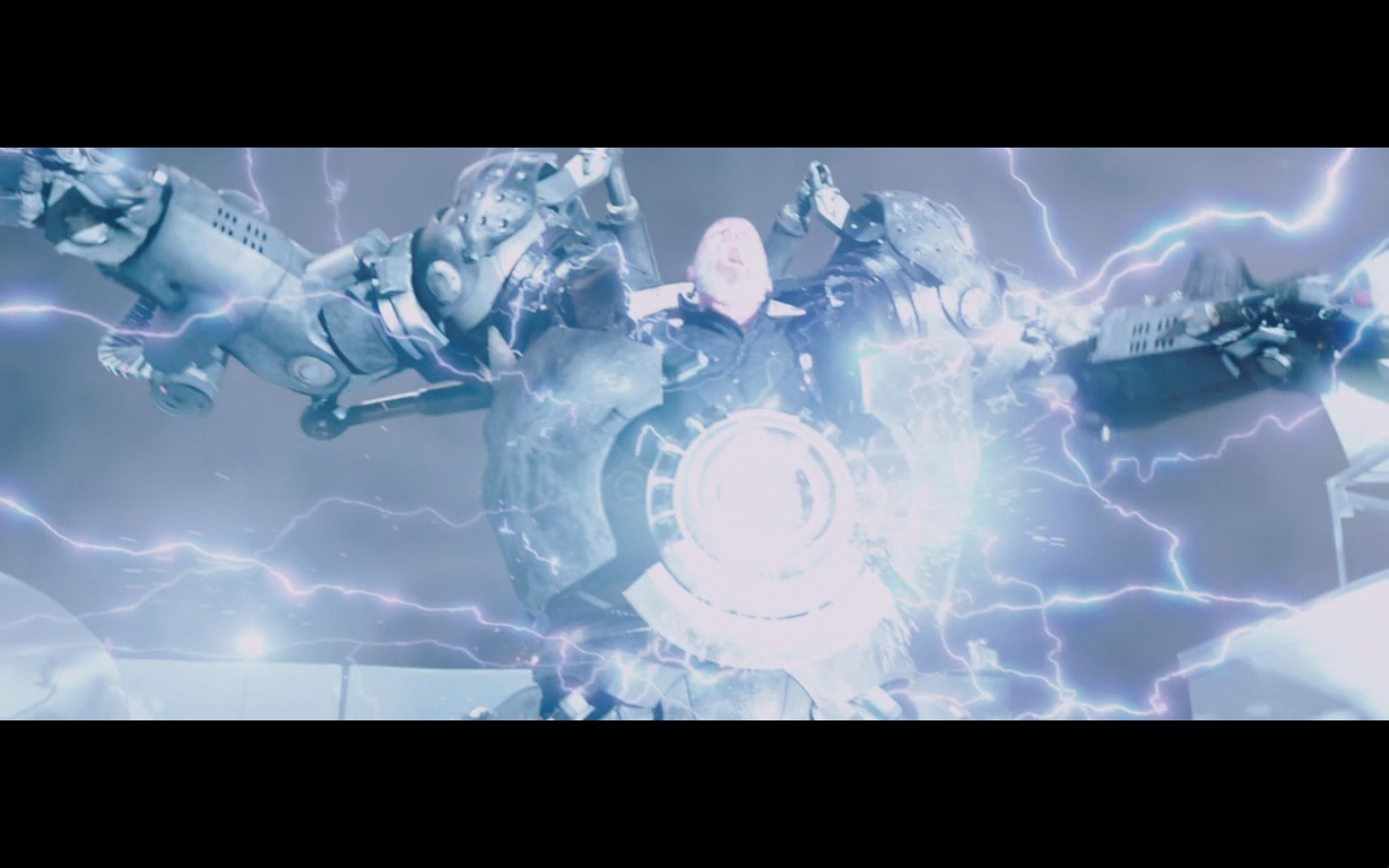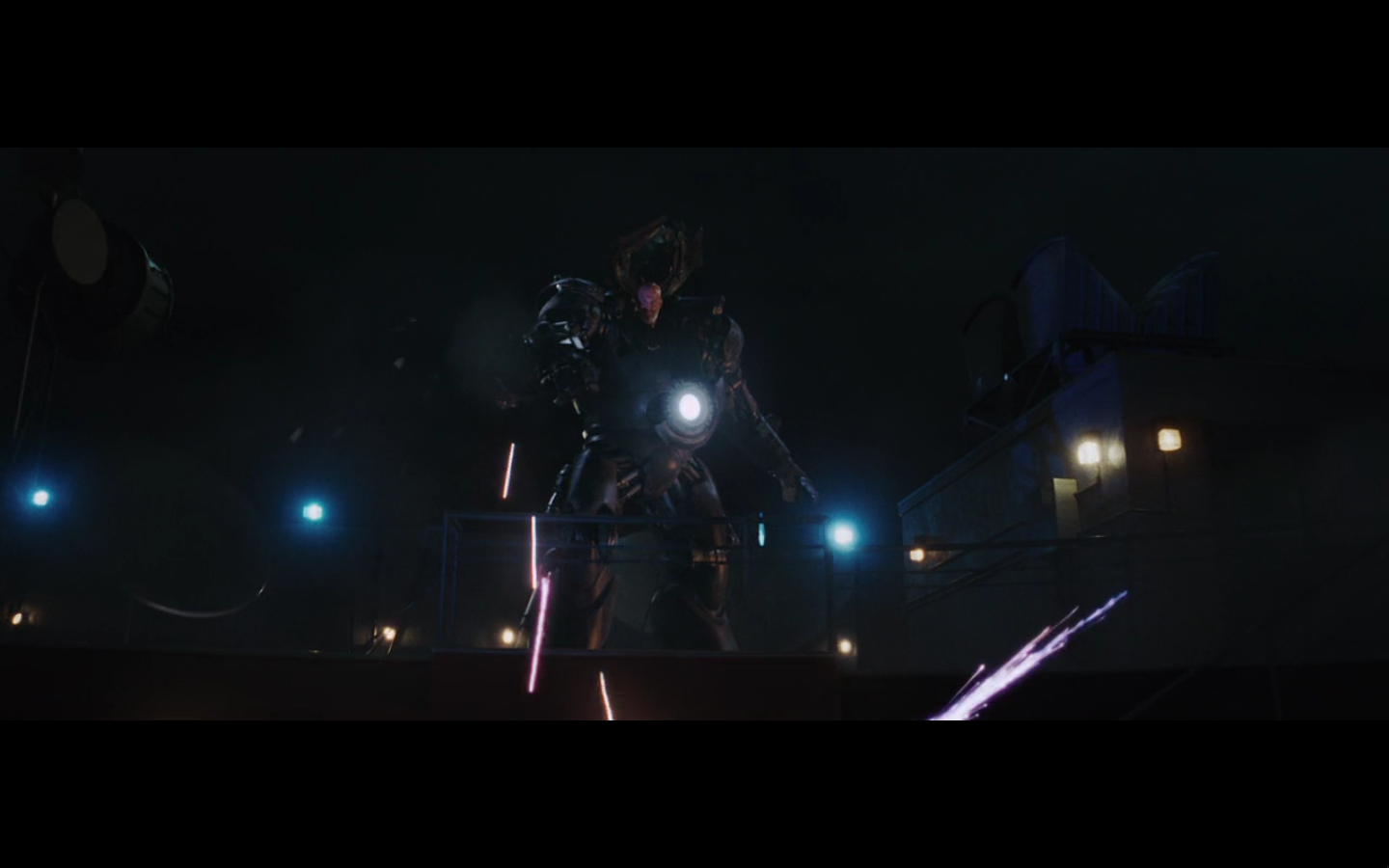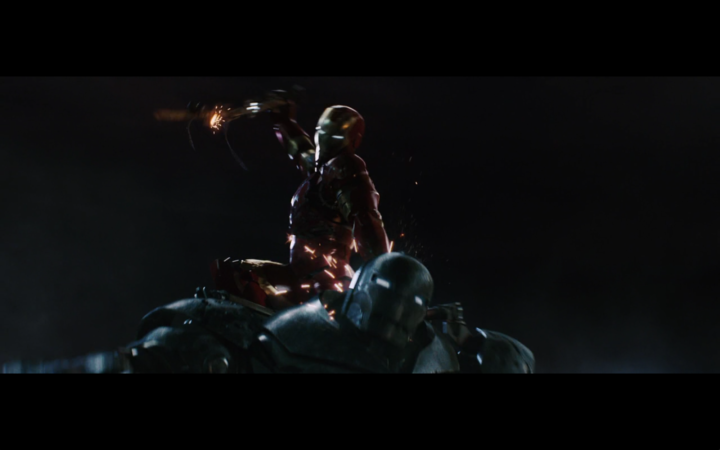 At least he heard it and realized what was going on. This is all around a lesser version of what Tony did earlier in the movie, down to the explosion. So that’s a nice juxtaposition.