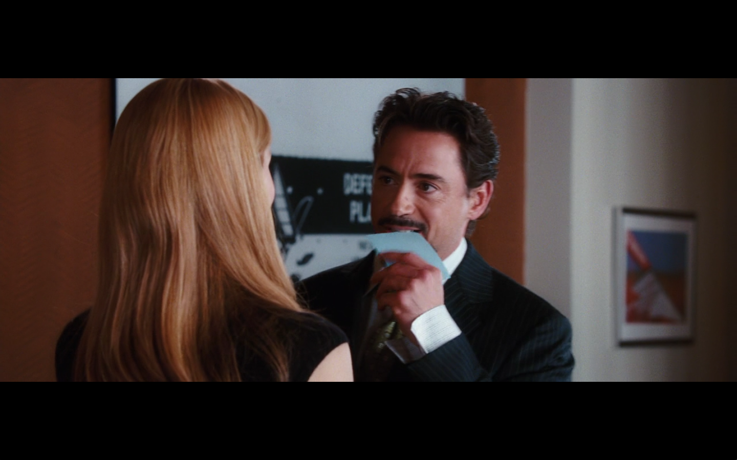 “You know, if I were Iron Man, I’d have this girlfriend who knew my true identity. She’d be a wreck. She’d be always worrying that I was gonna die, yet so proud of the man I’d become. She’d be wildly conflicted, which would only make her more crazy about me. Tell me you don’t think about that night.”