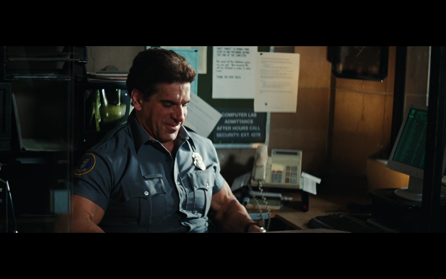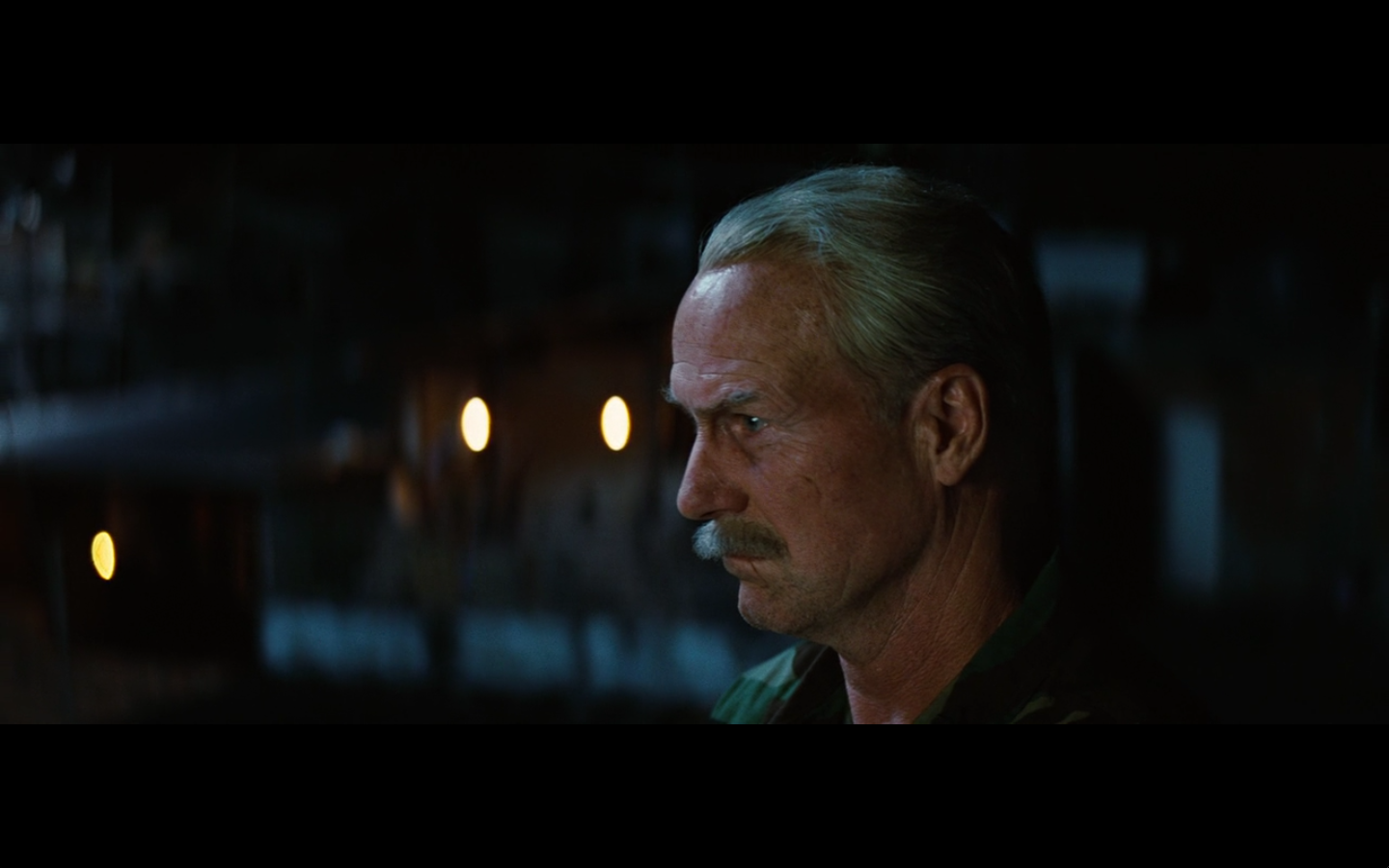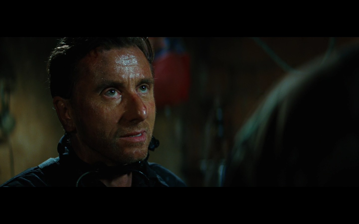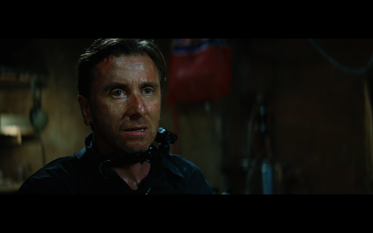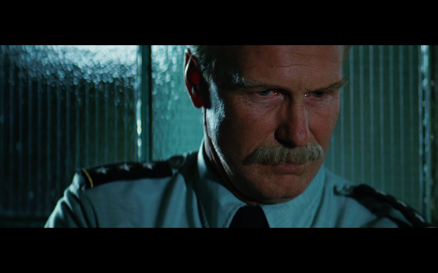 I’d also like to stop for a second to point out the shots. Where this is being done. They had to do this in this dimly-lit hangar, which is inexplicably green, with a helicopter. So we have military stuff, and GREEN. Cause…I dunno, Hulk? They really tried to go full comic book with this one, and it doesn’t work.