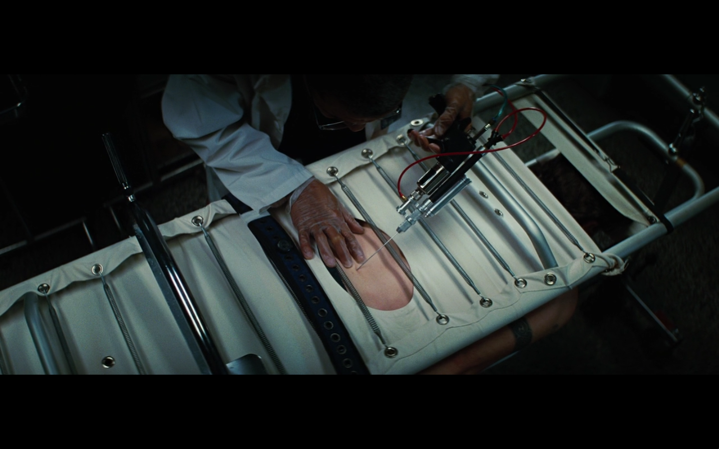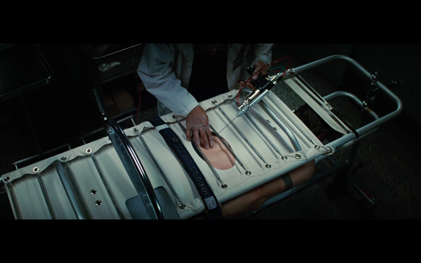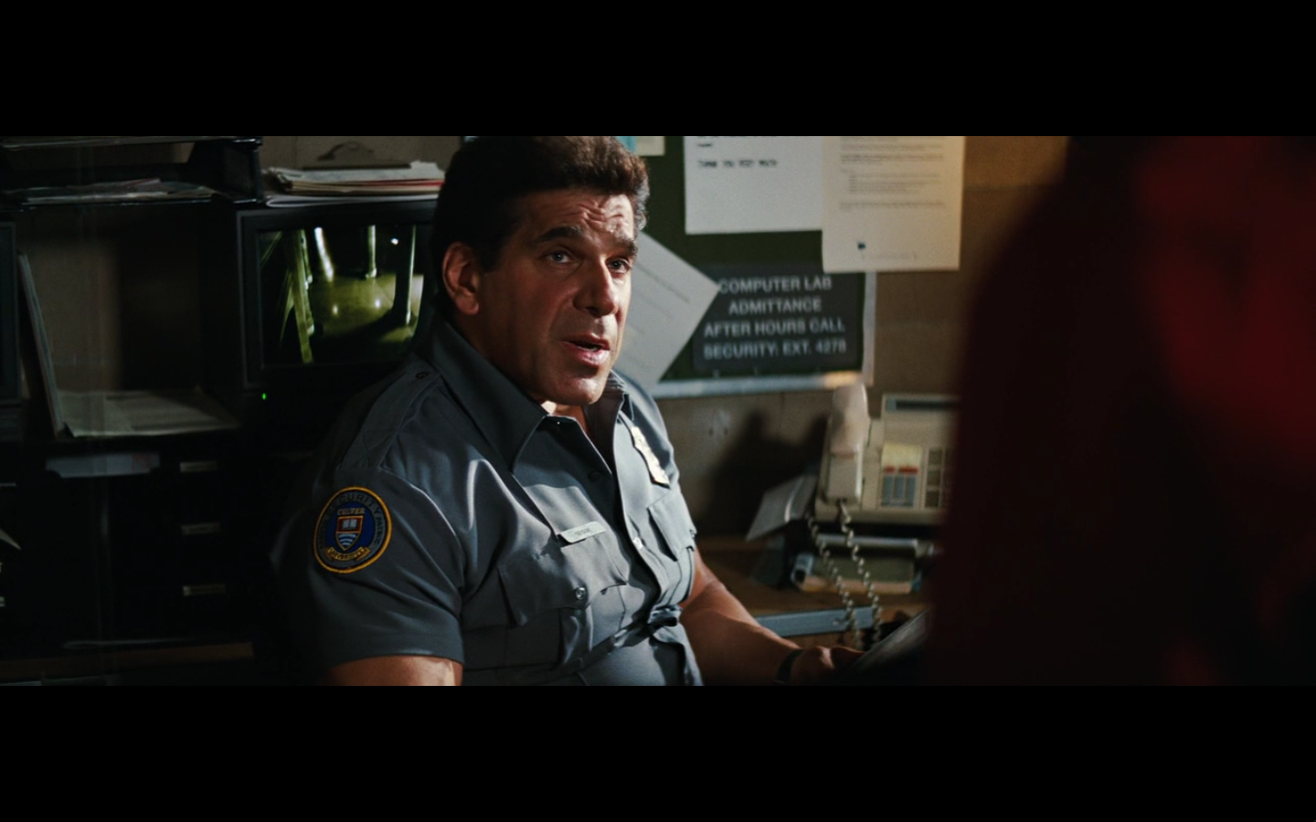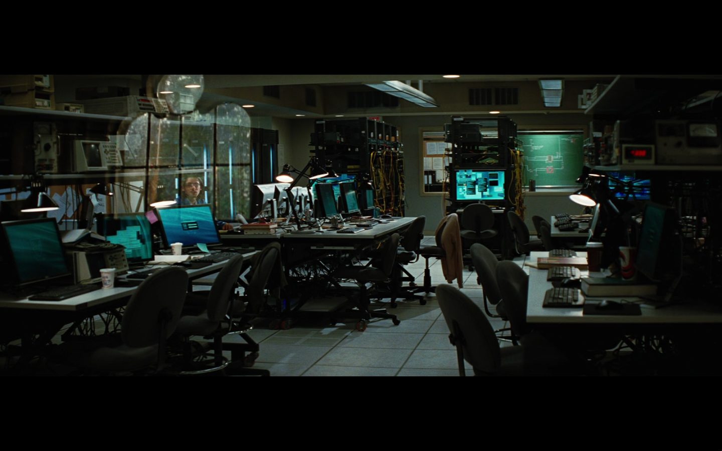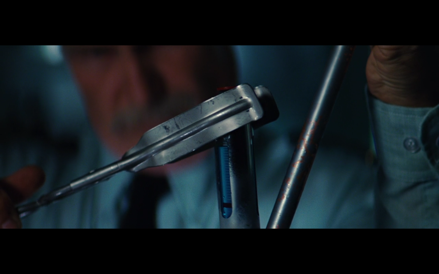 I’d also like to stop for a second to point out the shots. Where this is being done. They had to do this in this dimly-lit hangar, which is inexplicably green, with a helicopter. So we have military stuff, and GREEN. Cause…I dunno, Hulk? They really tried to go full comic book with this one, and it doesn’t work.