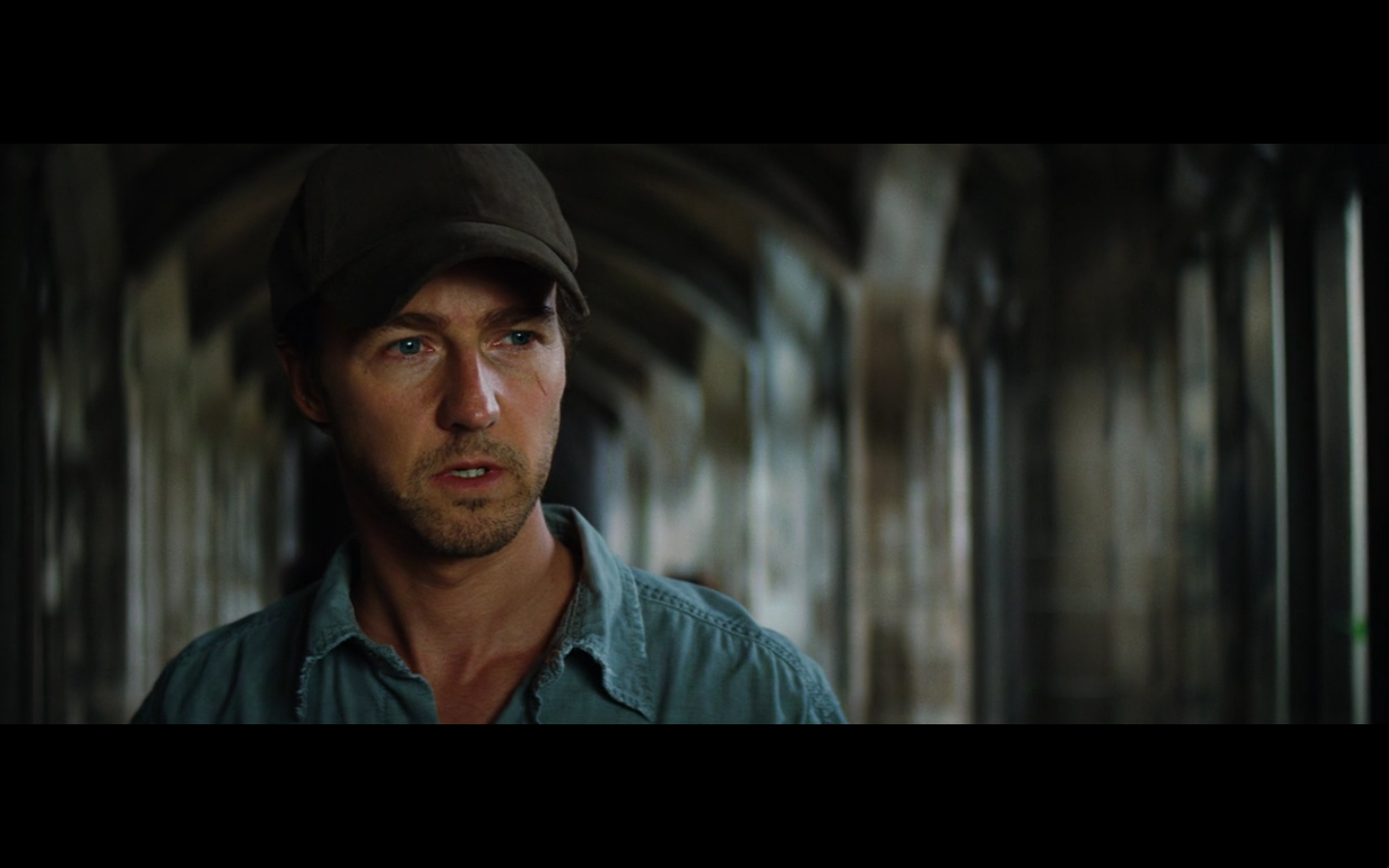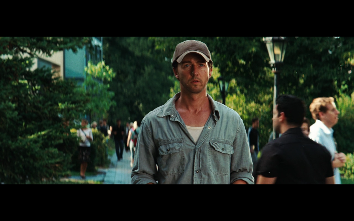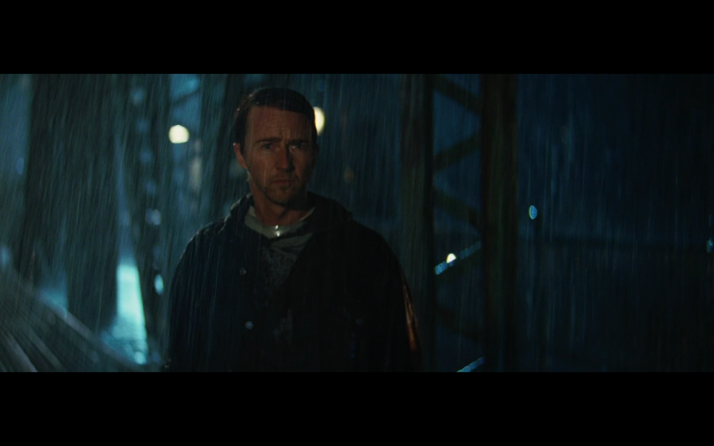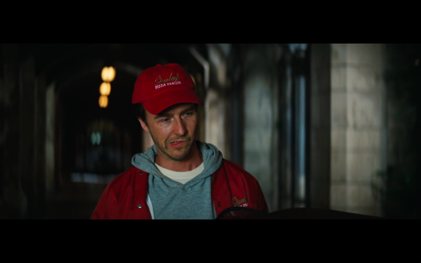 At one point, he’s staking out this neighborhood and passes out just like Norton is here, and a cop shows up, thinking he’s a homeless beggar or whatever. And Mifune stands up and shows him his detective’s ID, and it’s this perfect demonstration of how far he’s fallen in the pursuit of this gun. “Oh, you’re a cop too? Right, carry on, I guess.” Great movie, and put Mifune on the map.