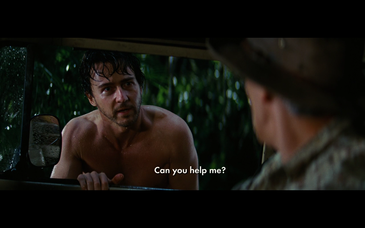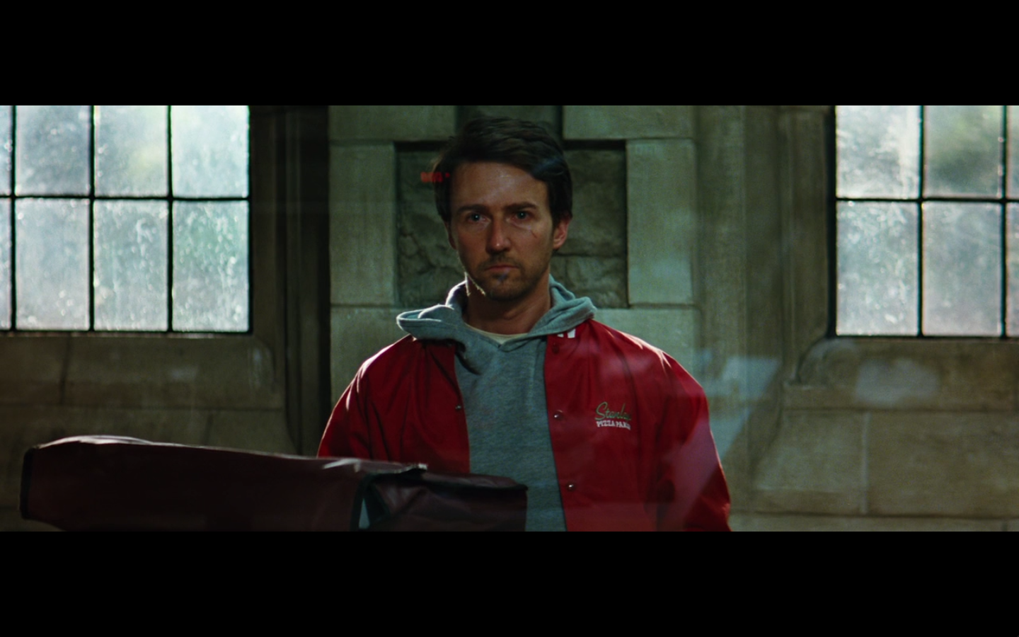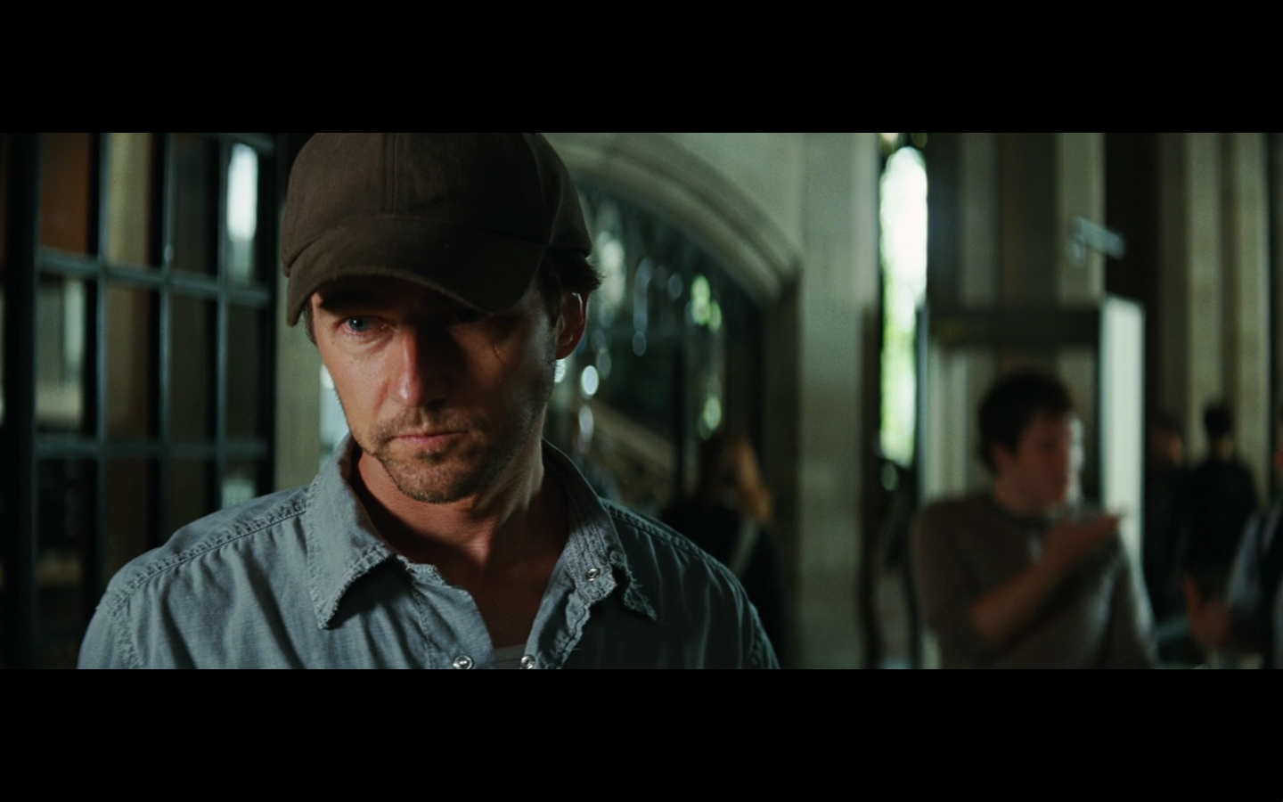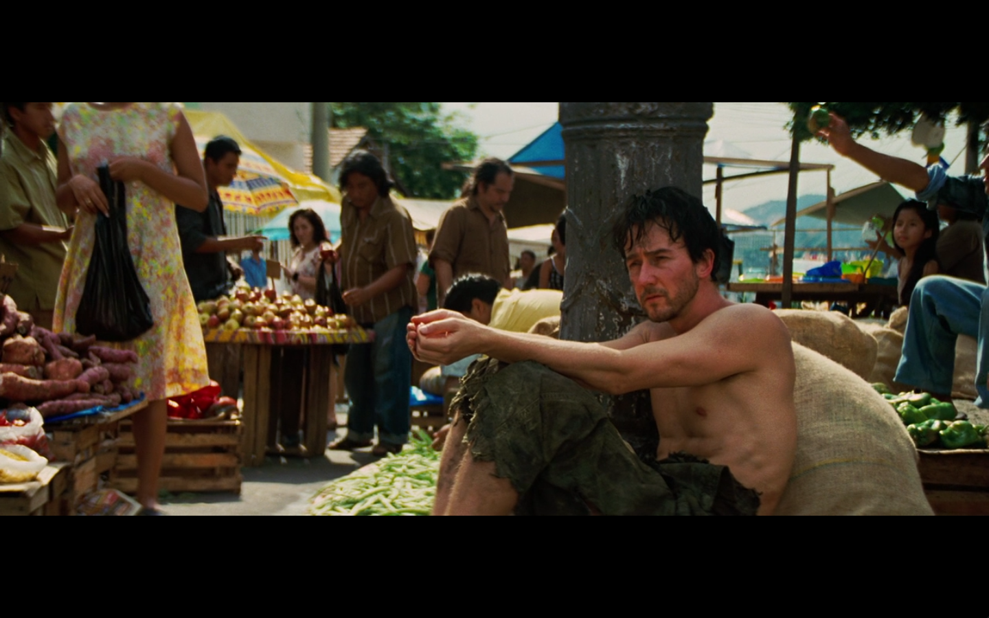 At one point, he’s staking out this neighborhood and passes out just like Norton is here, and a cop shows up, thinking he’s a homeless beggar or whatever. And Mifune stands up and shows him his detective’s ID, and it’s this perfect demonstration of how far he’s fallen in the pursuit of this gun. “Oh, you’re a cop too? Right, carry on, I guess.” Great movie, and put Mifune on the map.