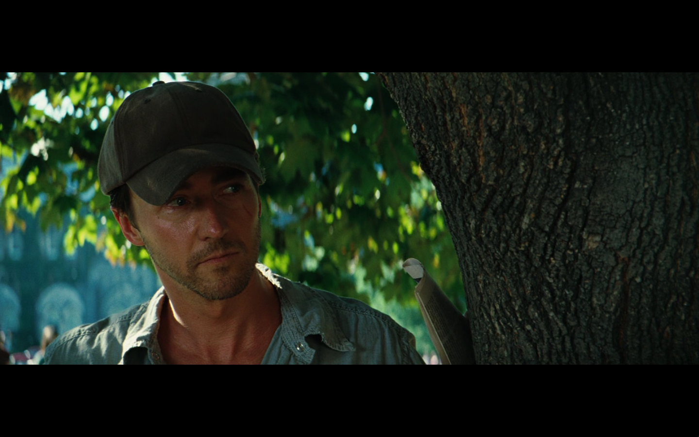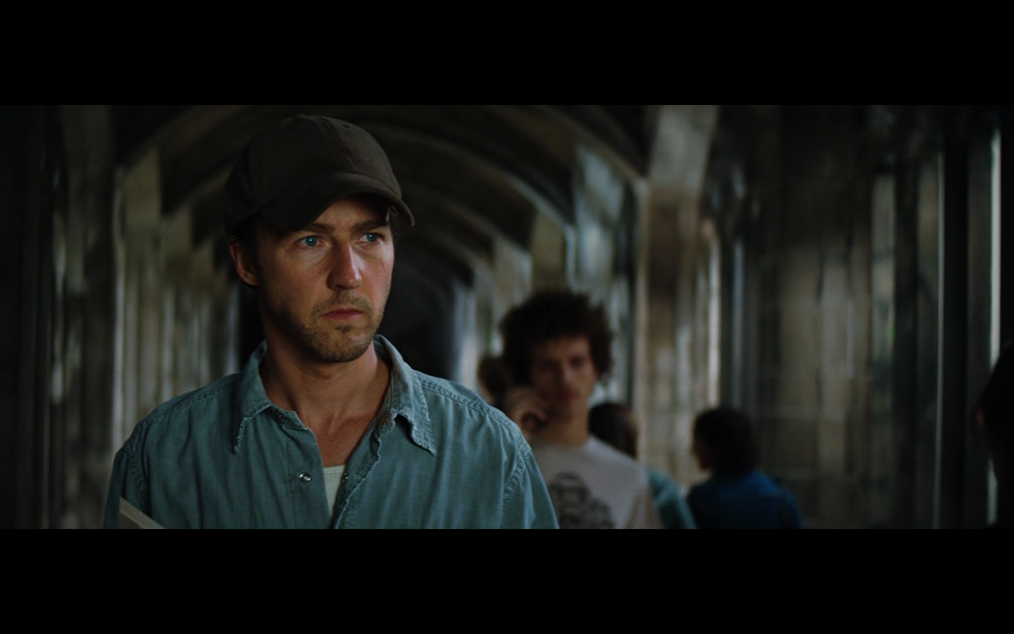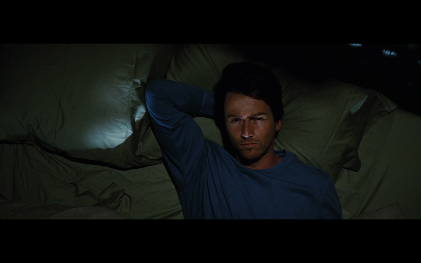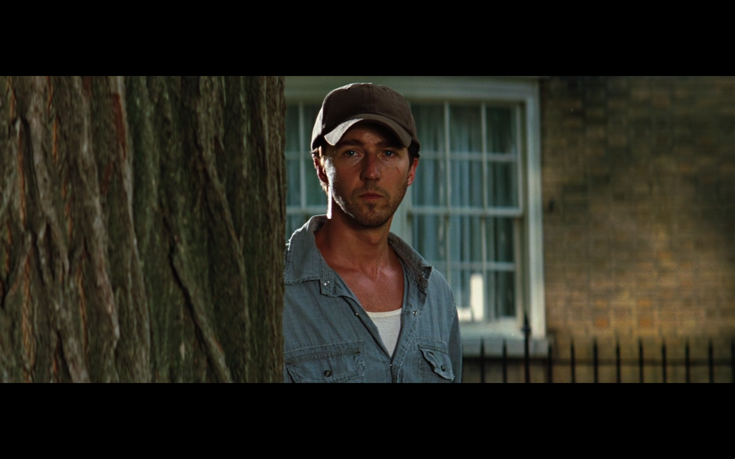 At one point, he’s staking out this neighborhood and passes out just like Norton is here, and a cop shows up, thinking he’s a homeless beggar or whatever. And Mifune stands up and shows him his detective’s ID, and it’s this perfect demonstration of how far he’s fallen in the pursuit of this gun. “Oh, you’re a cop too? Right, carry on, I guess.” Great movie, and put Mifune on the map.