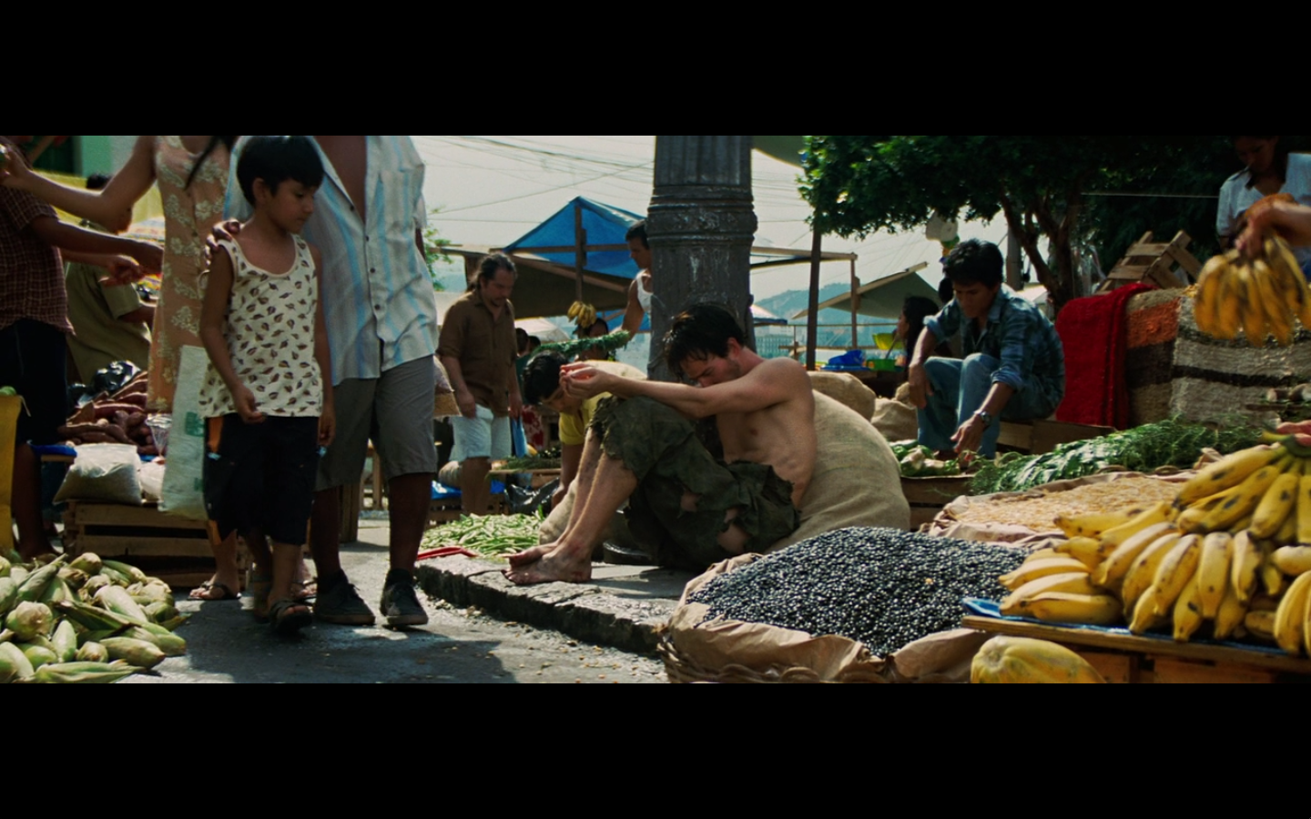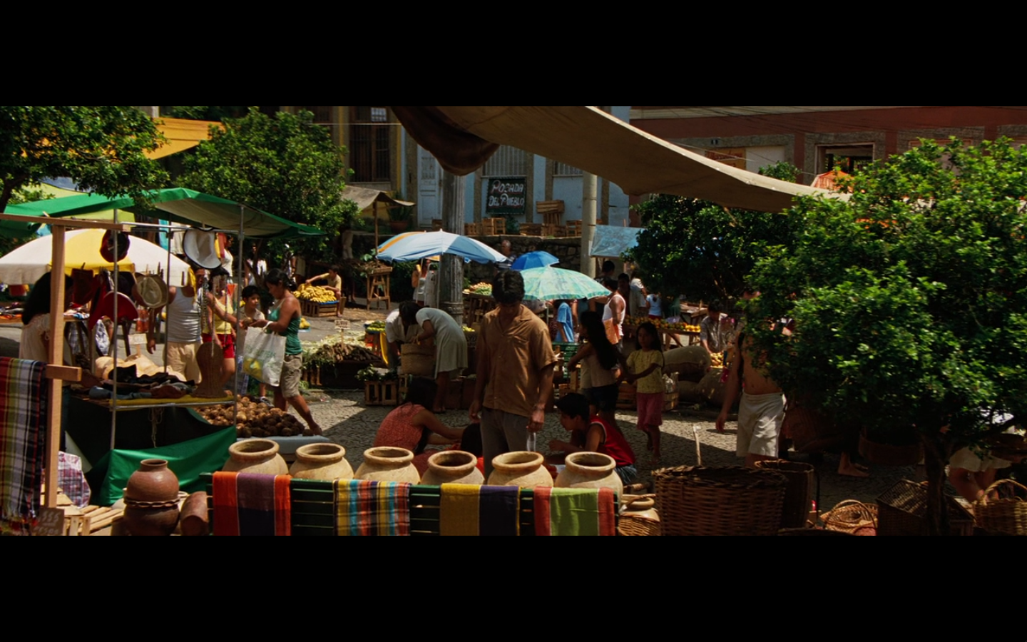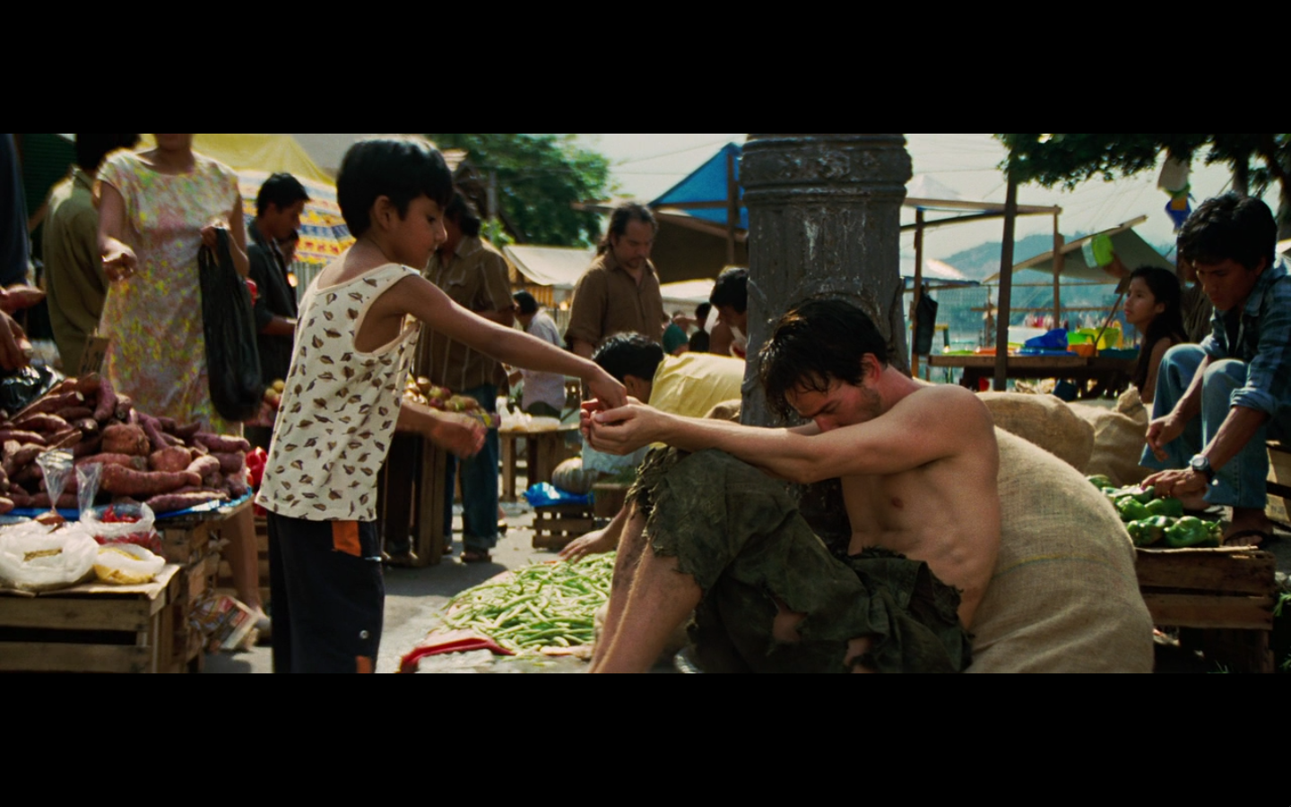 This is the kid who escaped from the Temple of Doom and is coming back to the favela to give Indiana Jones the cloth to get him there. But seriously, the shot is exactly the same.
