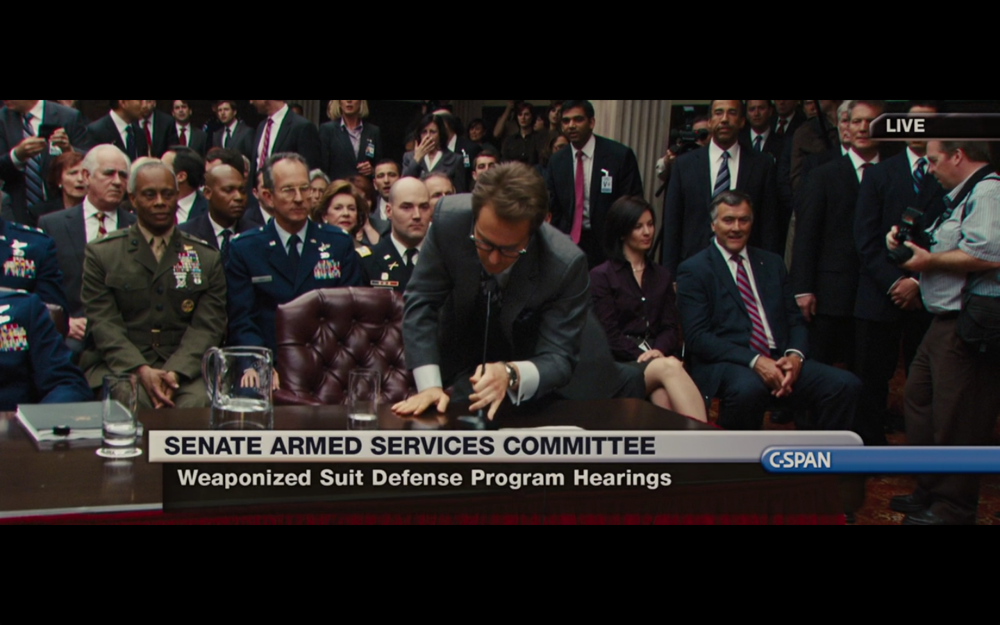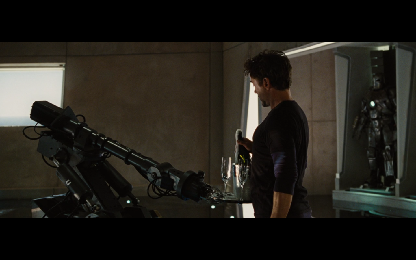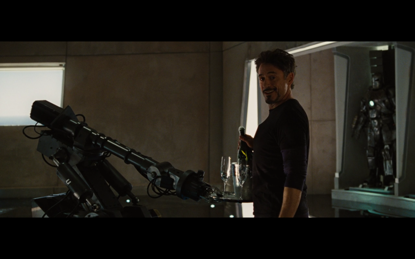 Every time a newspaper clipping appears on the screen, my opinion of this movie falls. Just cut to the TV on in the background with banner headlines or something. That would accomplish the task of showing Stark’s awesomeness against this asshole drinking in the dark without making zero sense.