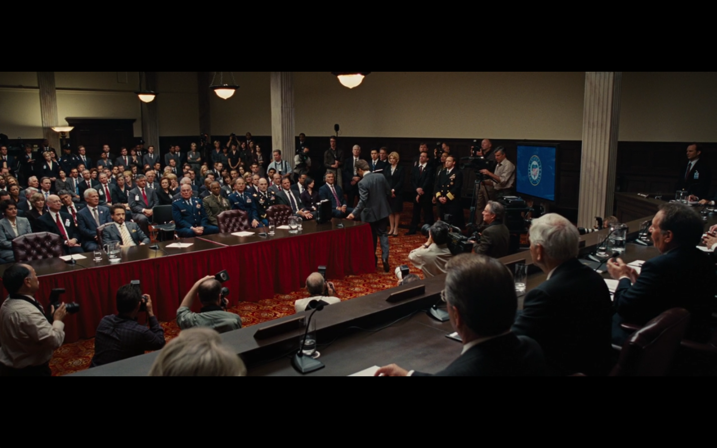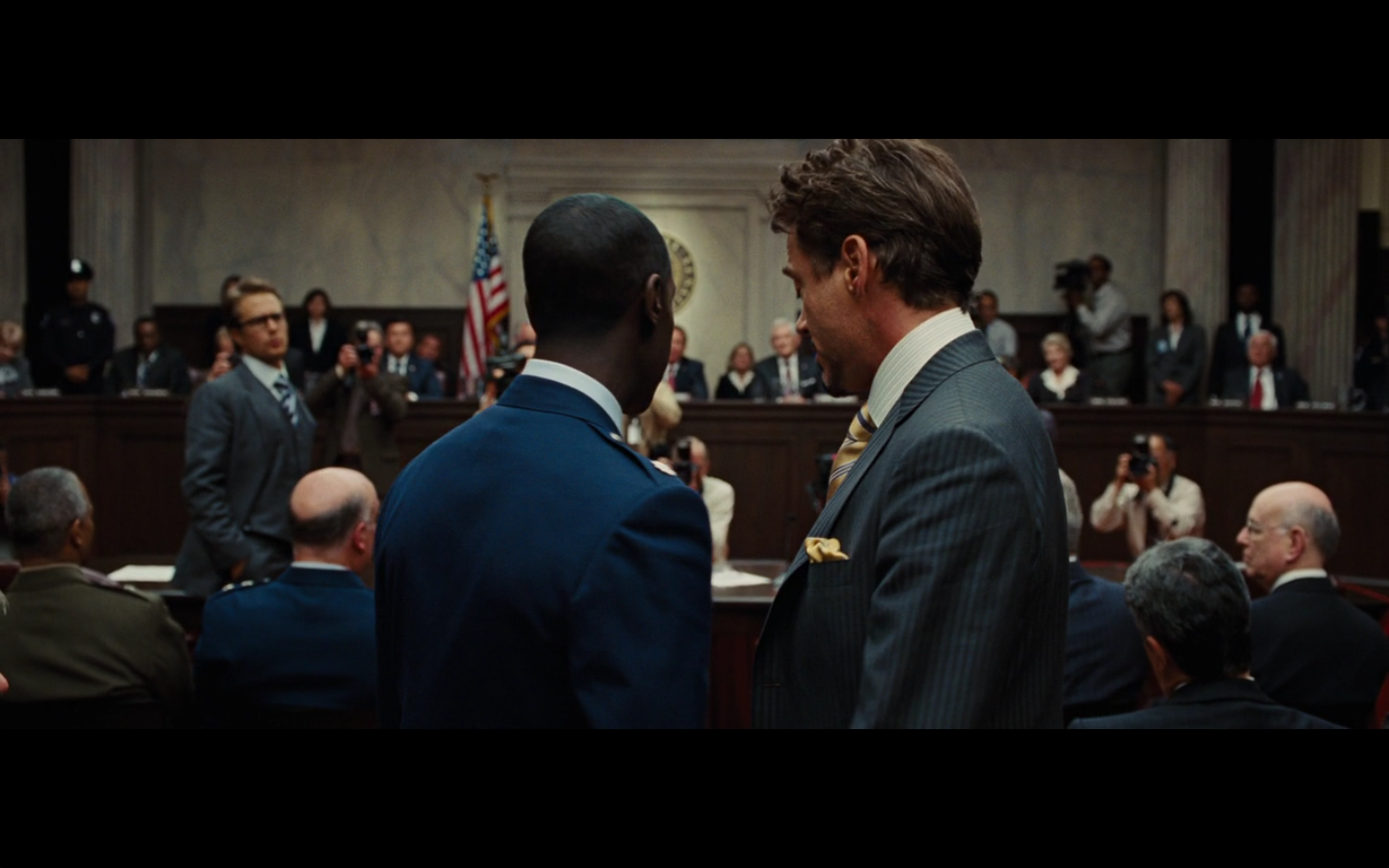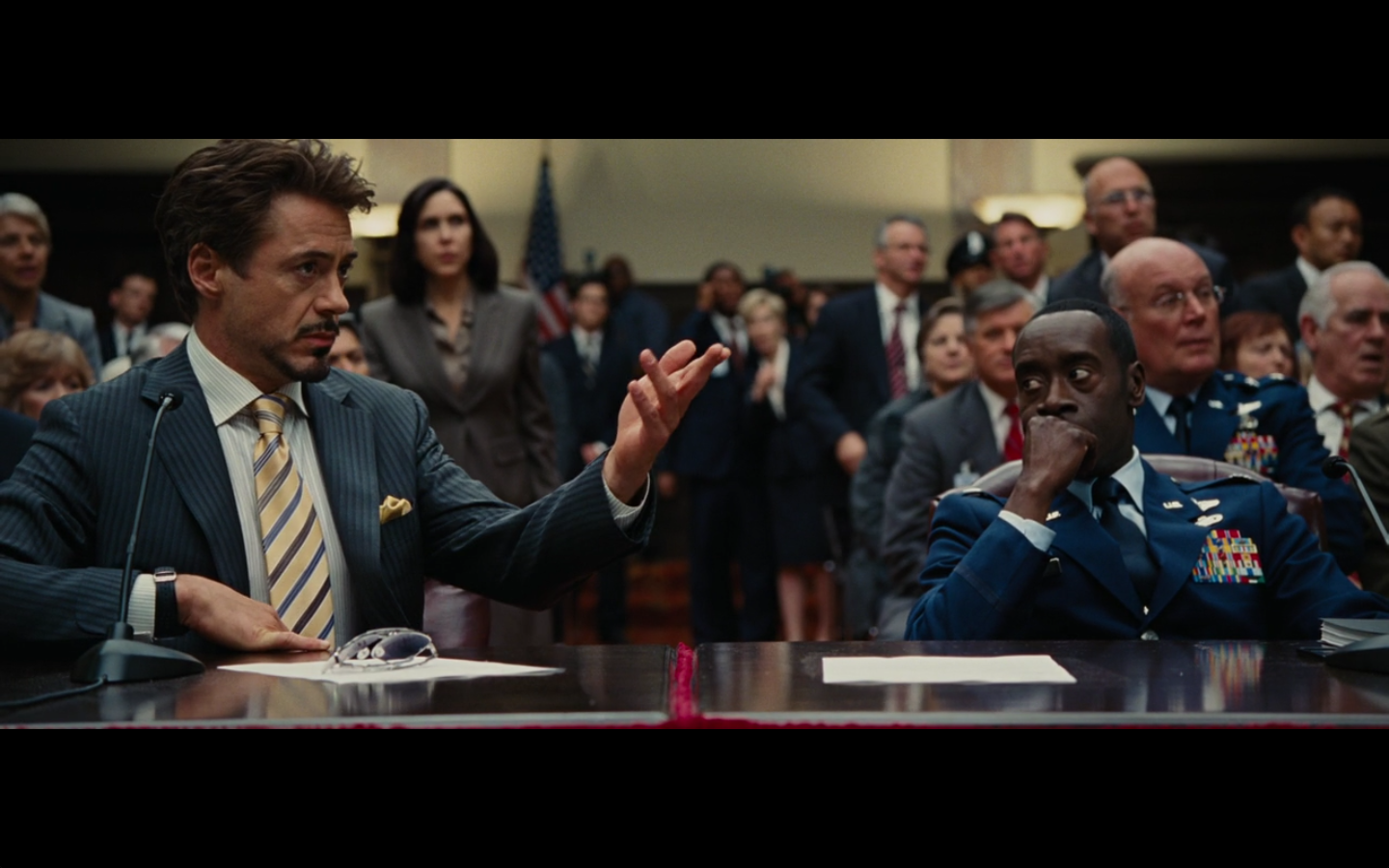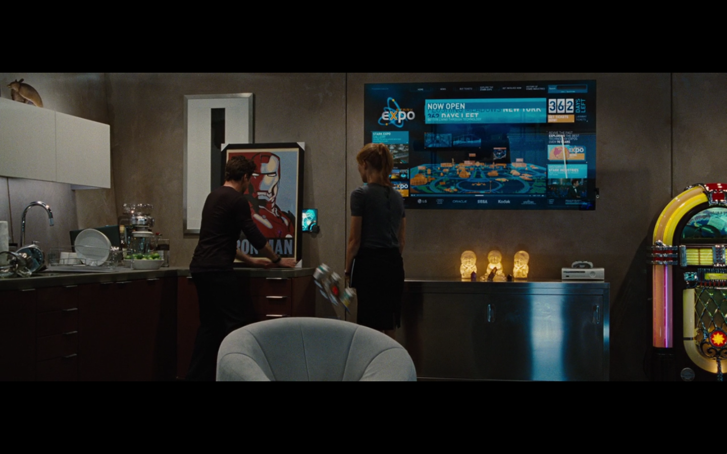Every time a newspaper clipping appears on the screen, my opinion of this movie falls. Just cut to the TV on in the background with banner headlines or something. That would accomplish the task of showing Stark’s awesomeness against this asshole drinking in the dark without making zero sense.