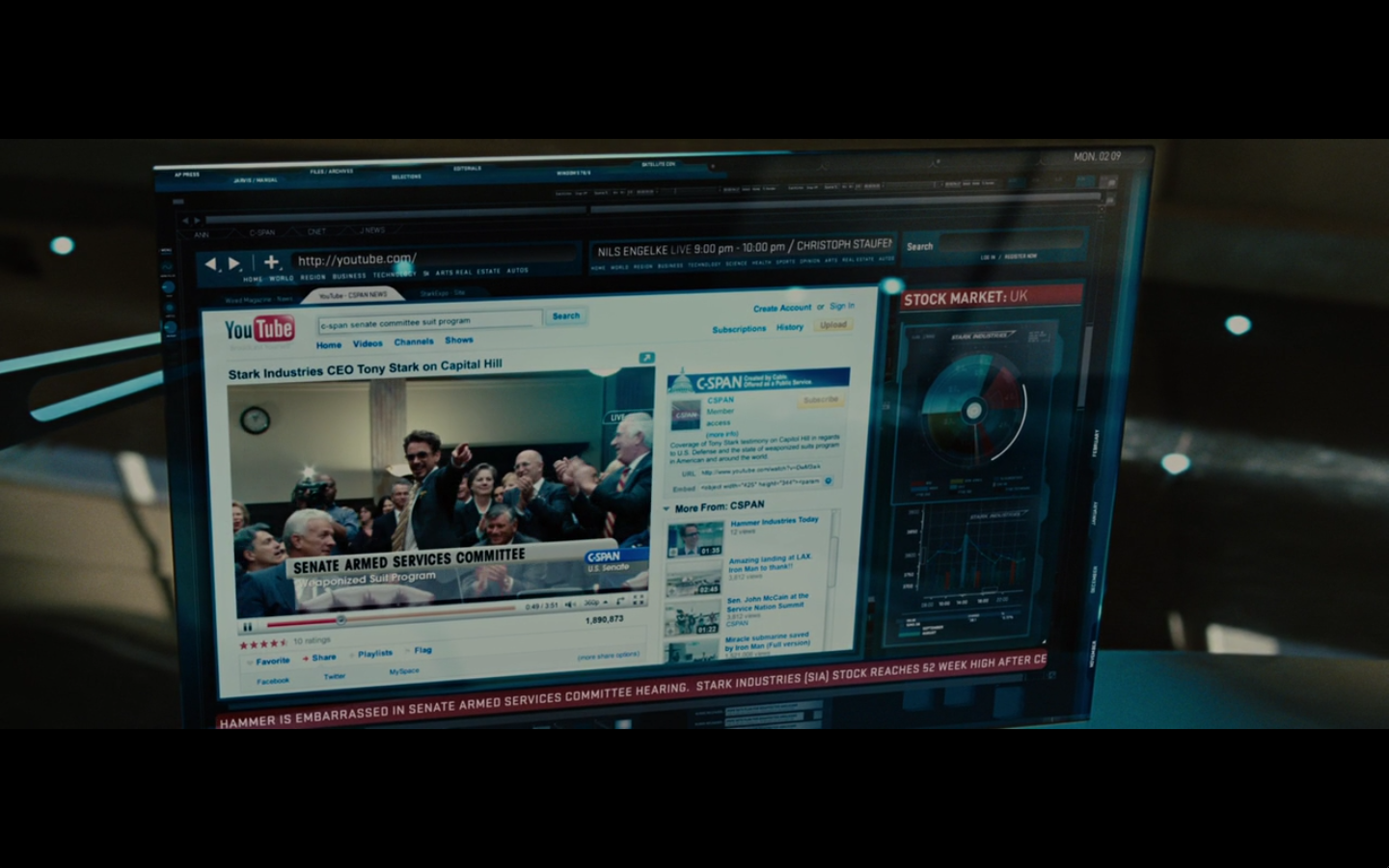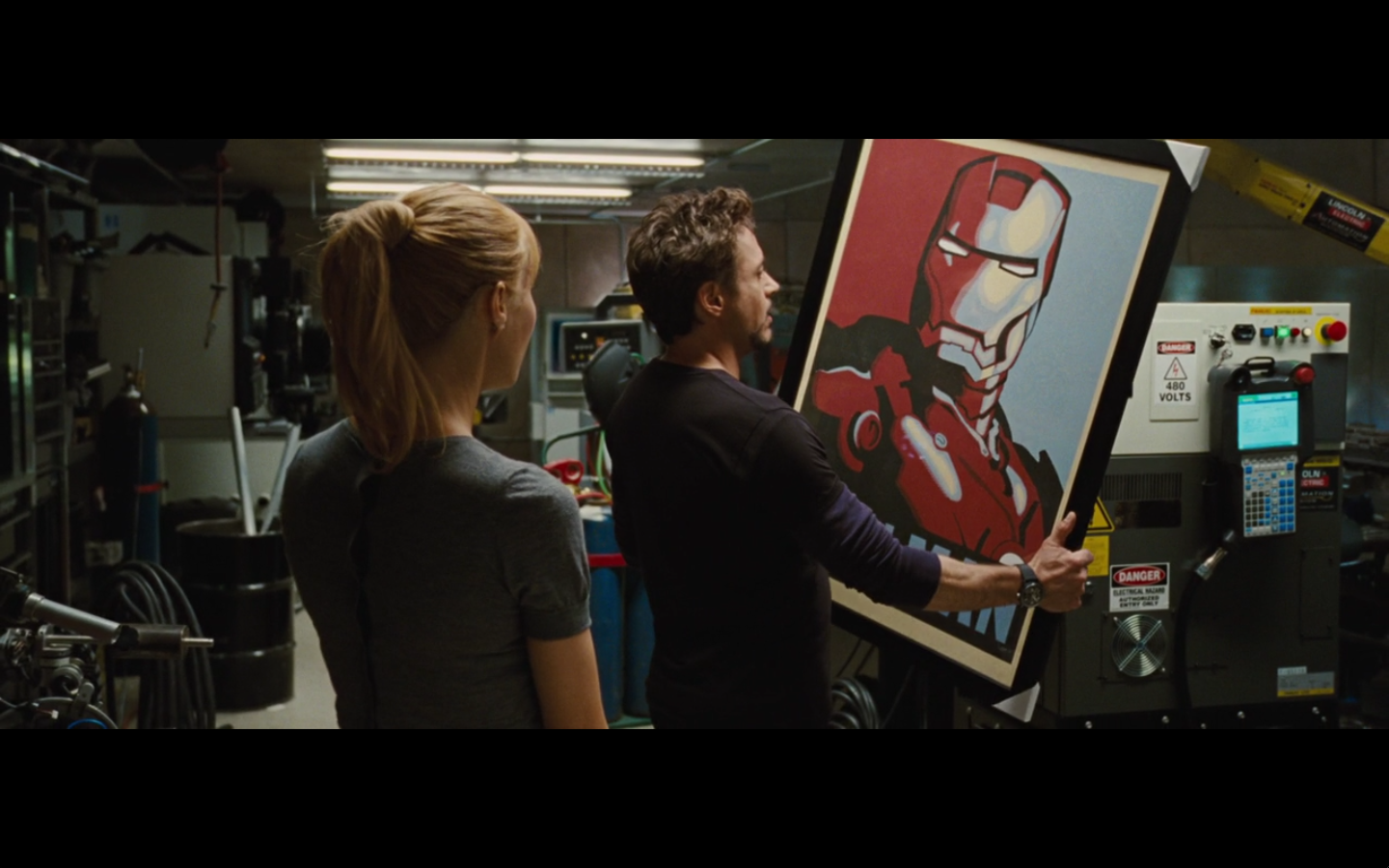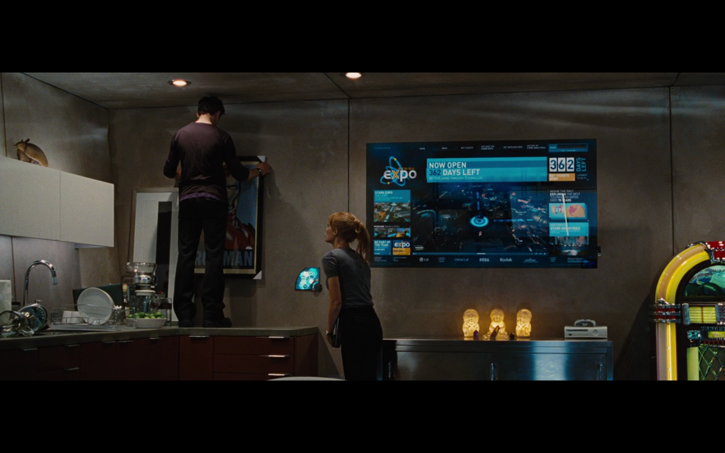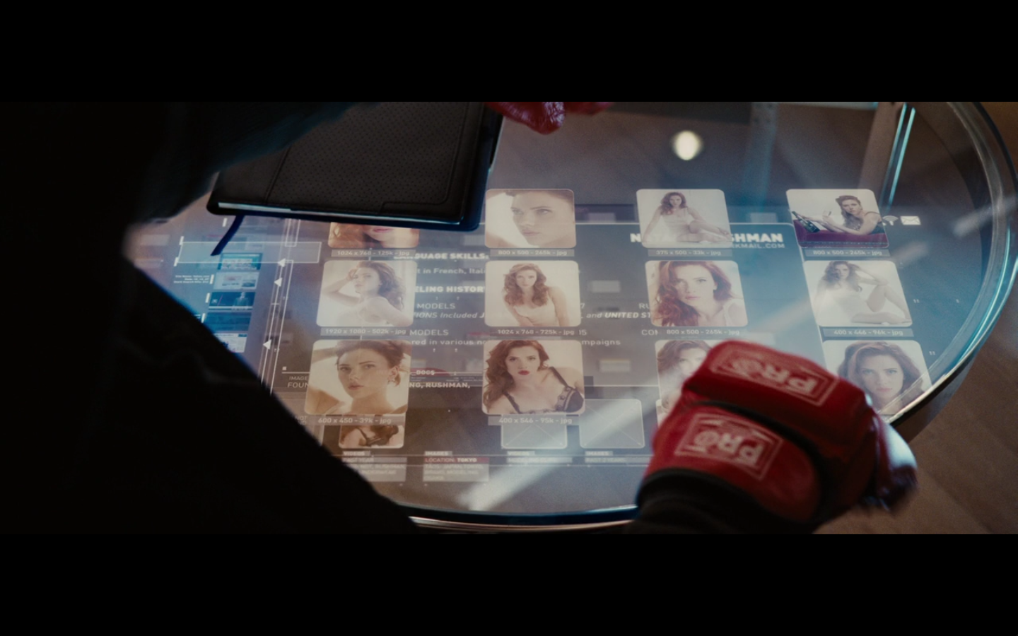 He’s going all John Nash with the pictures and push pins and all that. Did he buy an English copy of Forbes and one from Rolling Stone? Also, the one on the right is from after he became Iron Man, so are we to assume that somewhere in this montage of creating his own arc reactor, he went out and bought a newspaper so he could cut it out and put it up on the bulletin board and look at it? I never understood stuff like this. It’s all intentional, cause you know they have to make all these clippings specially for the film.