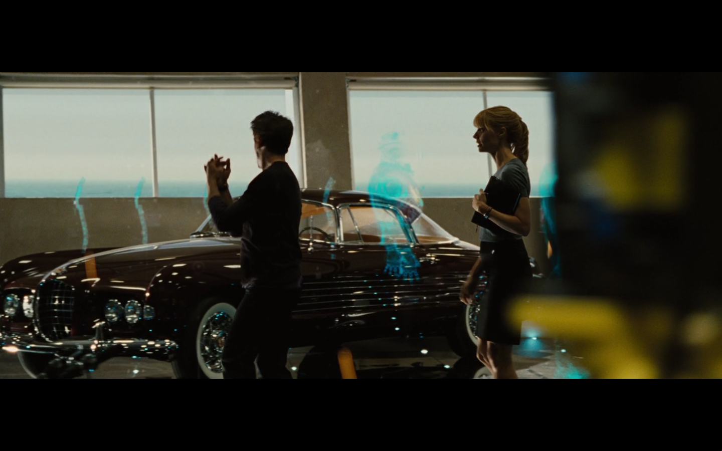 WHOA WHOA WHOA stop the presses. That car in the background is – and I’m confirming – a Ghia Cadillac, of which I think 2 were made. And the only customer car belonged to Rita Hayworth and BELONGS IN A MUSEUM which is where I’m assuming they borrowed this from. But yeah, early 50s Cadillac styled by Ghia, so probably on the top ten list of classiest American cars ever. What a fucking choice. They had better ideas after ditching the Saleen and the Cobra.