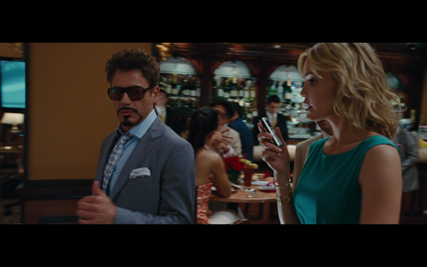 I wonder how many individual sound clips there are in Hollywood of ice clinking around in crystal glasses. And, Asian chick wants him, and douche white guy wants to be him.