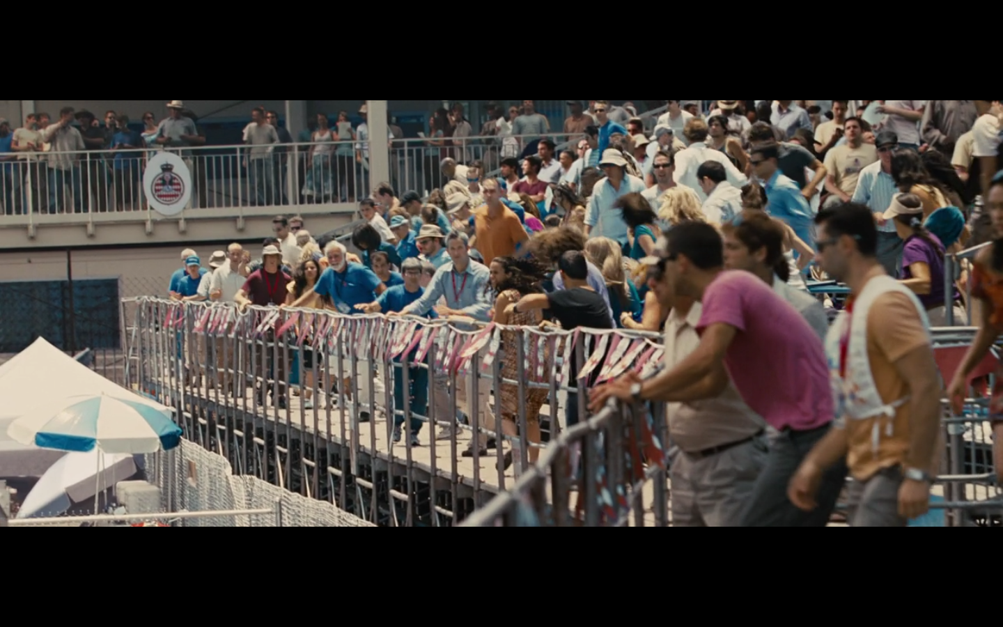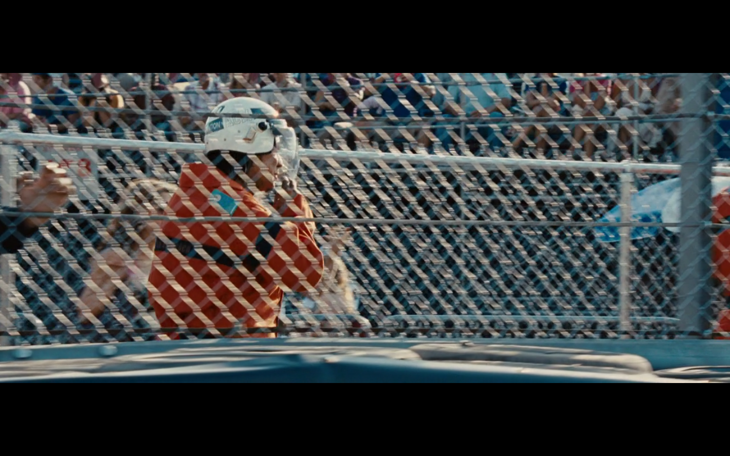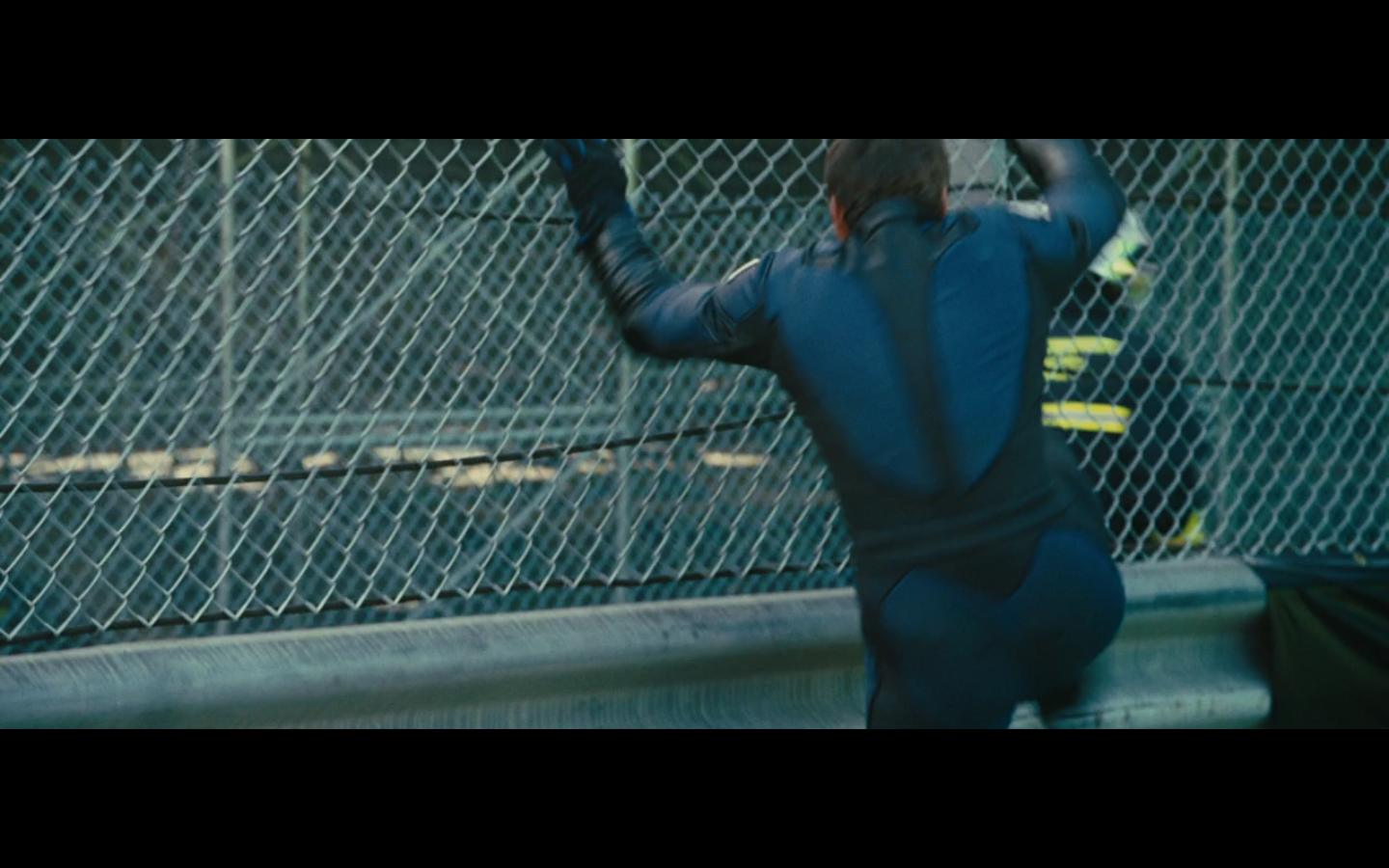 Technically, he’s dressed as a marshal, which means he’s the one who’s supposed to be monitoring the track. Kinda like Javier Bardem dressing as a cop and waltzing through London without being noticed.