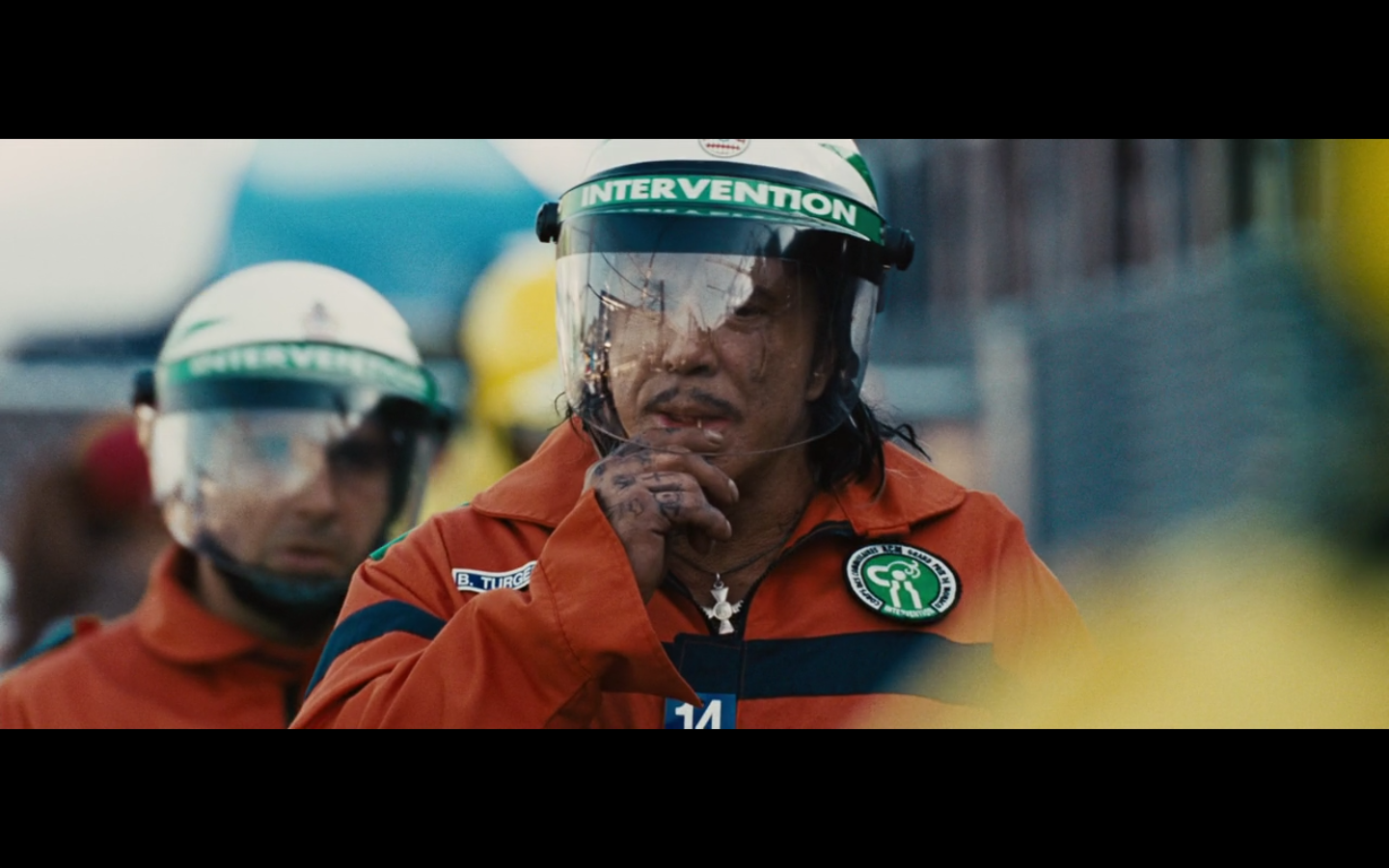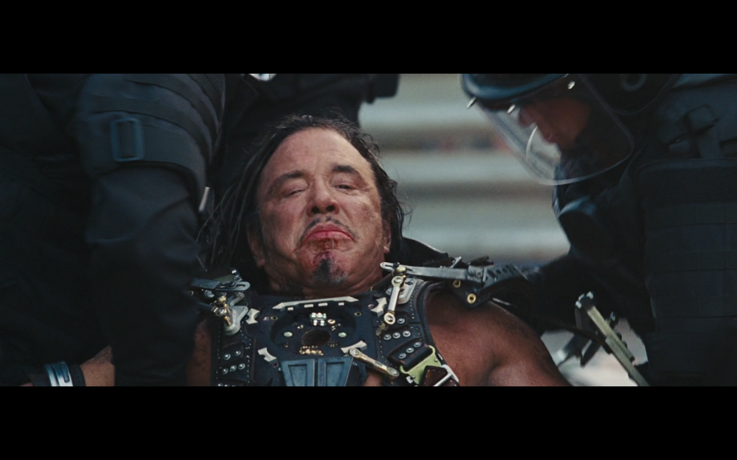 Has Mickey Rourke spoken a word yet? I don’t think he has.
