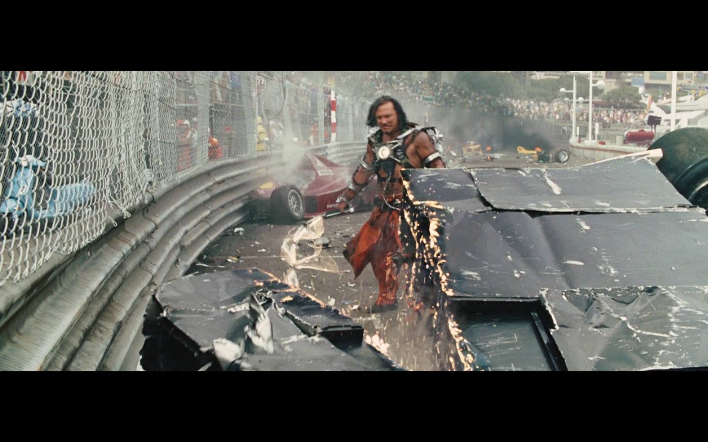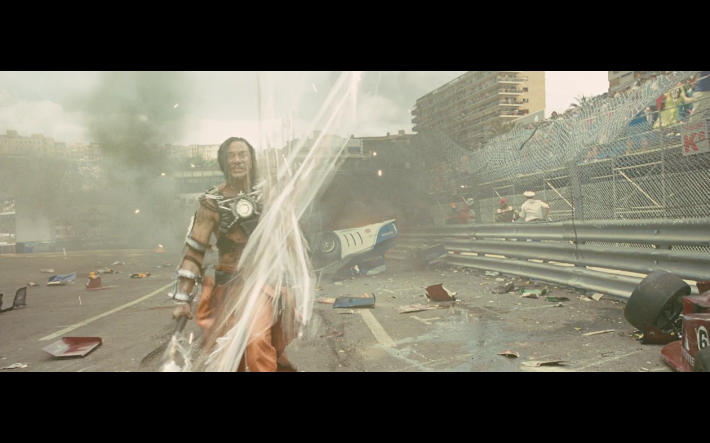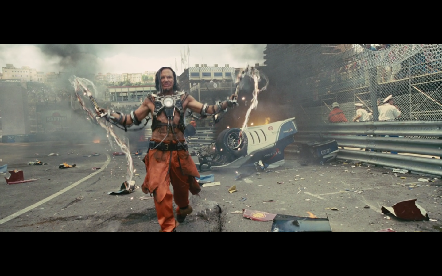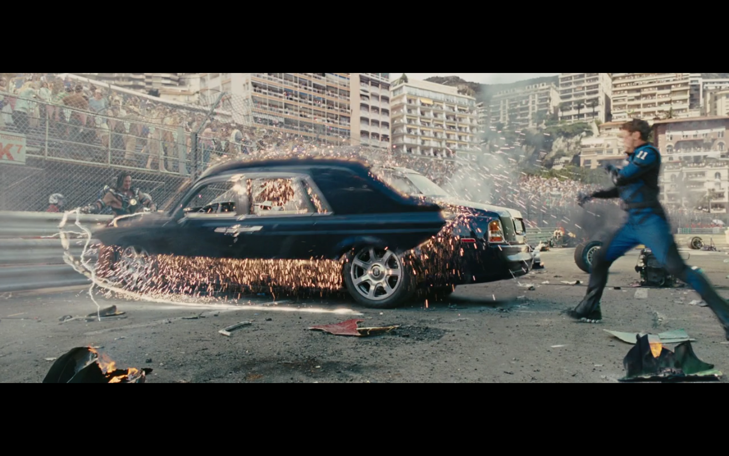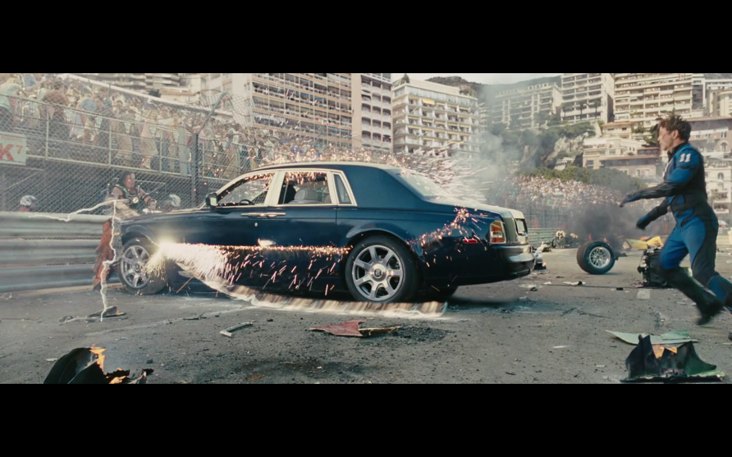I like how he’s chopping up the Rolls. That’s impressive in terms of effects. You know Rolls had to make this for them so they could cut it up in the right way.