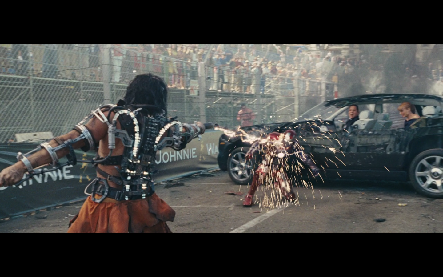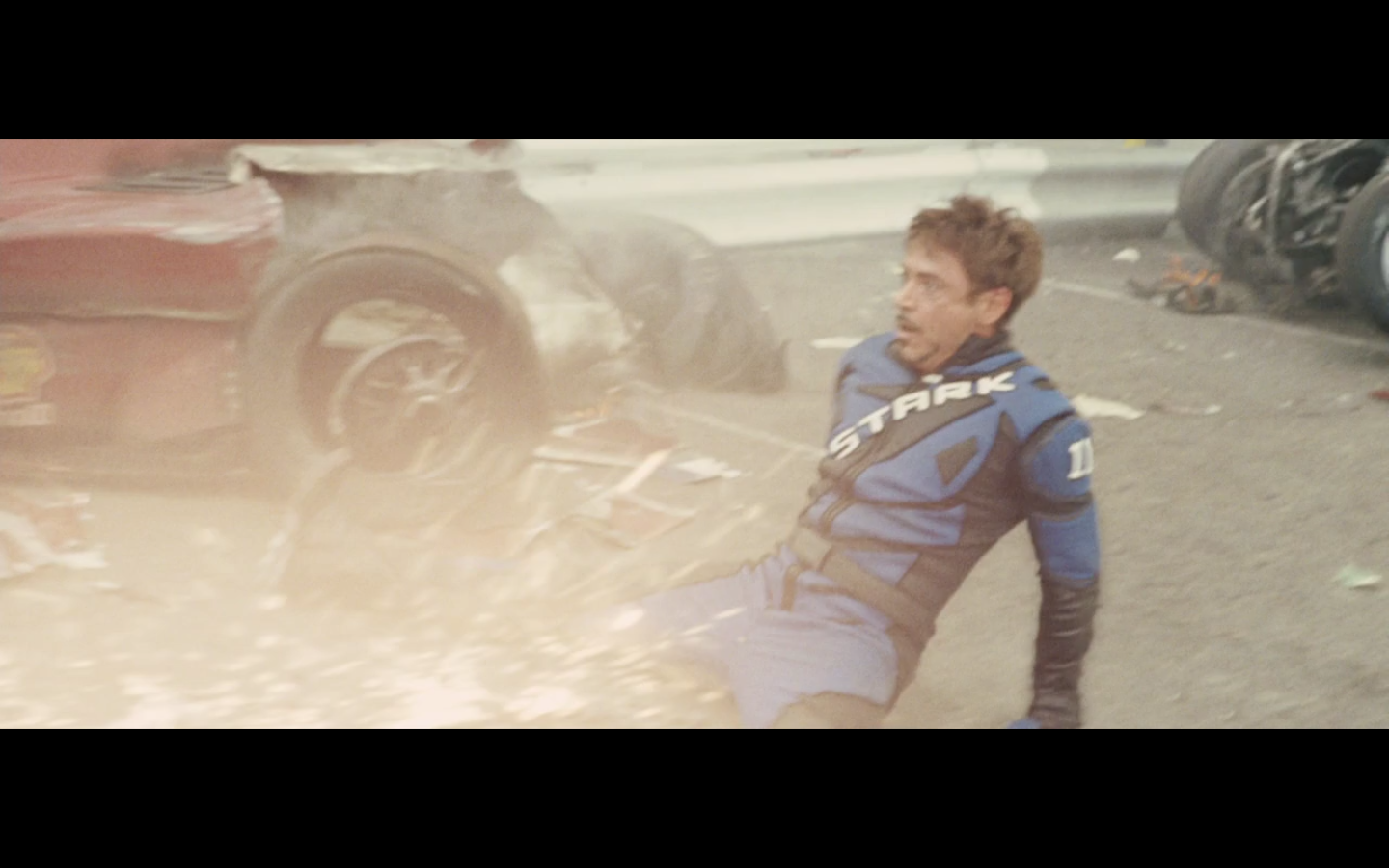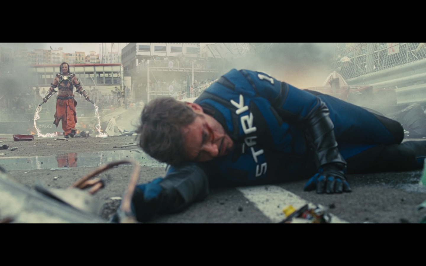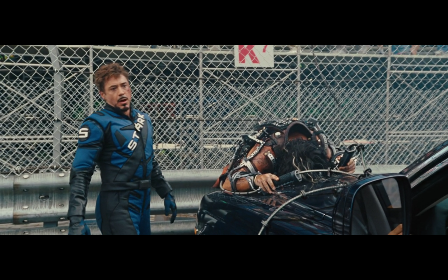 He doesn’t expect Tony to be racing, right? His plan can’t have anticipated Tony deciding to hop in this car last minute. But again, Hammer isn’t helping him. That would have been better if they’d done it that way because at least Hammer would have looked into the past for enemies of the Stark family and found someone instead of having it dropped in his lap like it is.