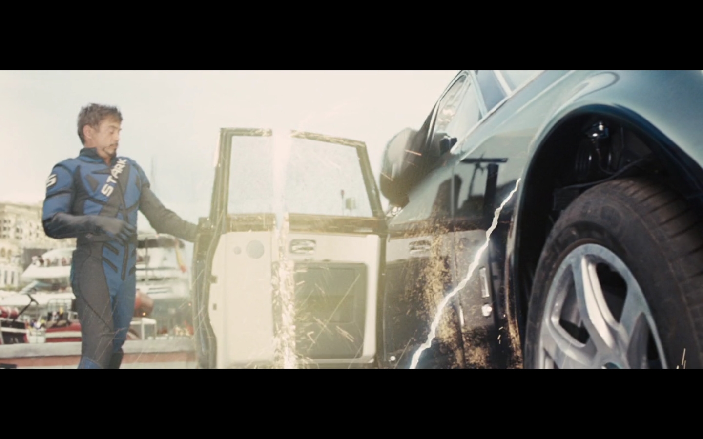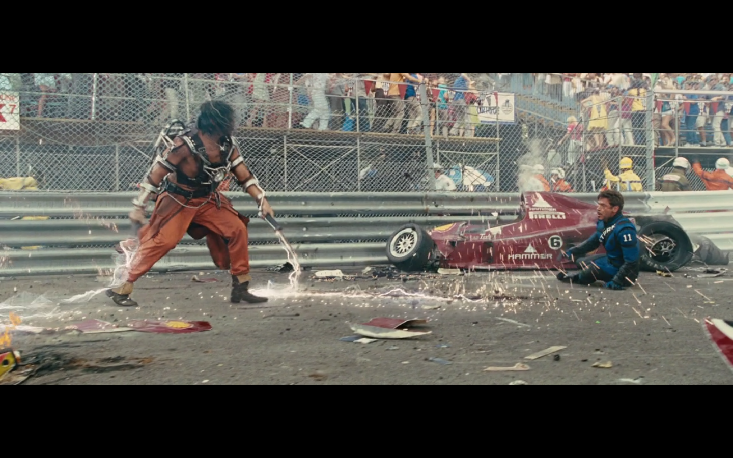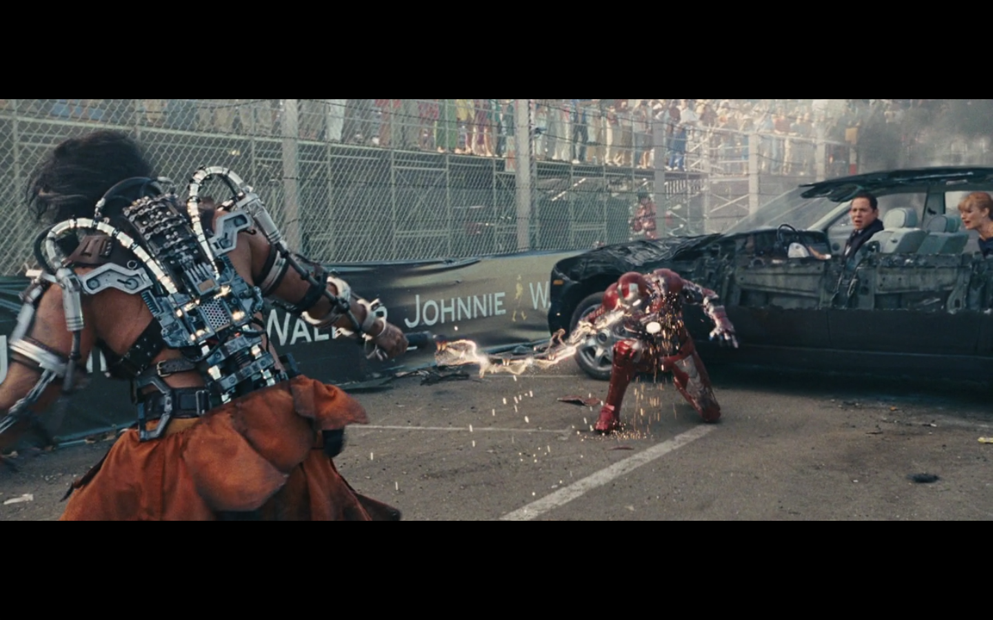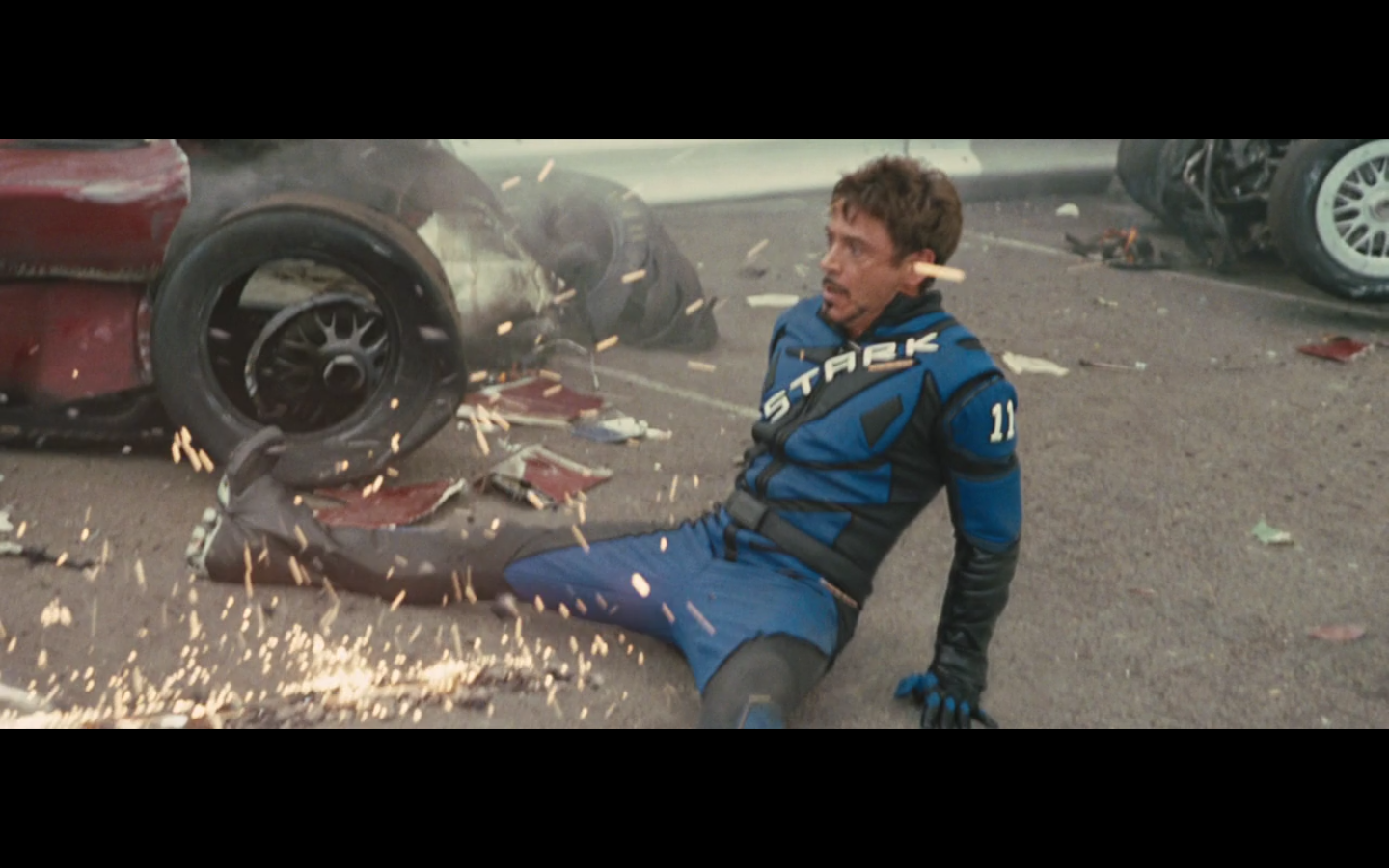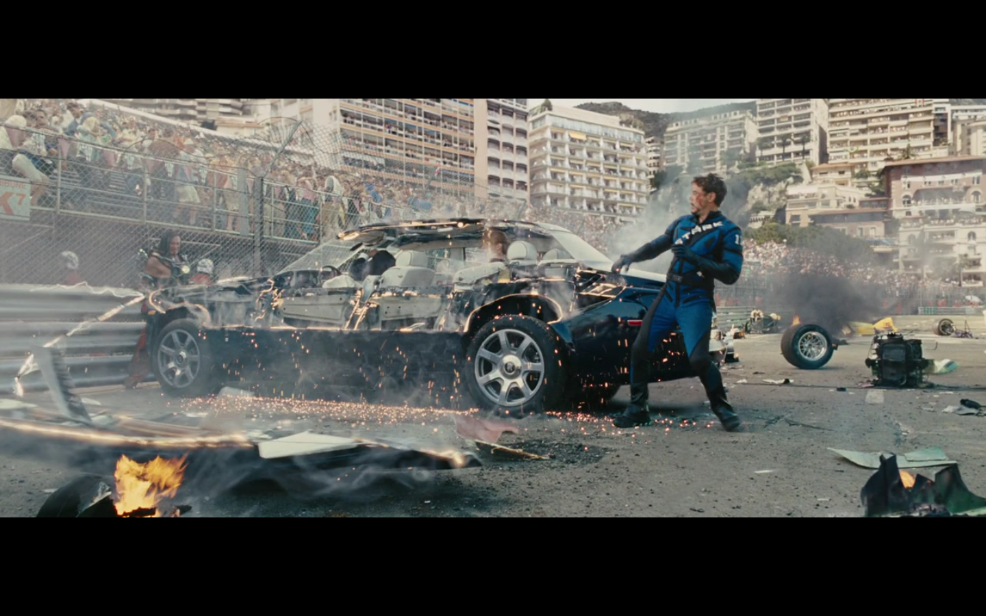 He doesn’t expect Tony to be racing, right? His plan can’t have anticipated Tony deciding to hop in this car last minute. But again, Hammer isn’t helping him. That would have been better if they’d done it that way because at least Hammer would have looked into the past for enemies of the Stark family and found someone instead of having it dropped in his lap like it is.
