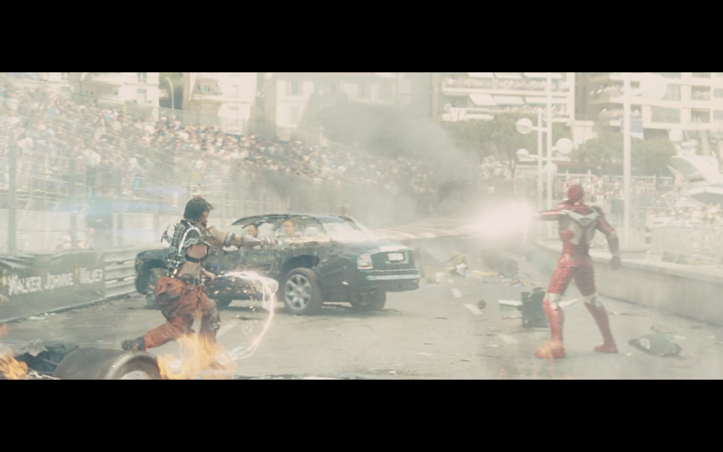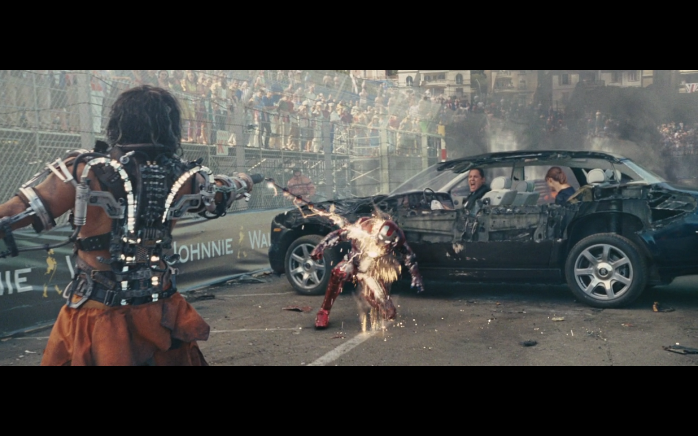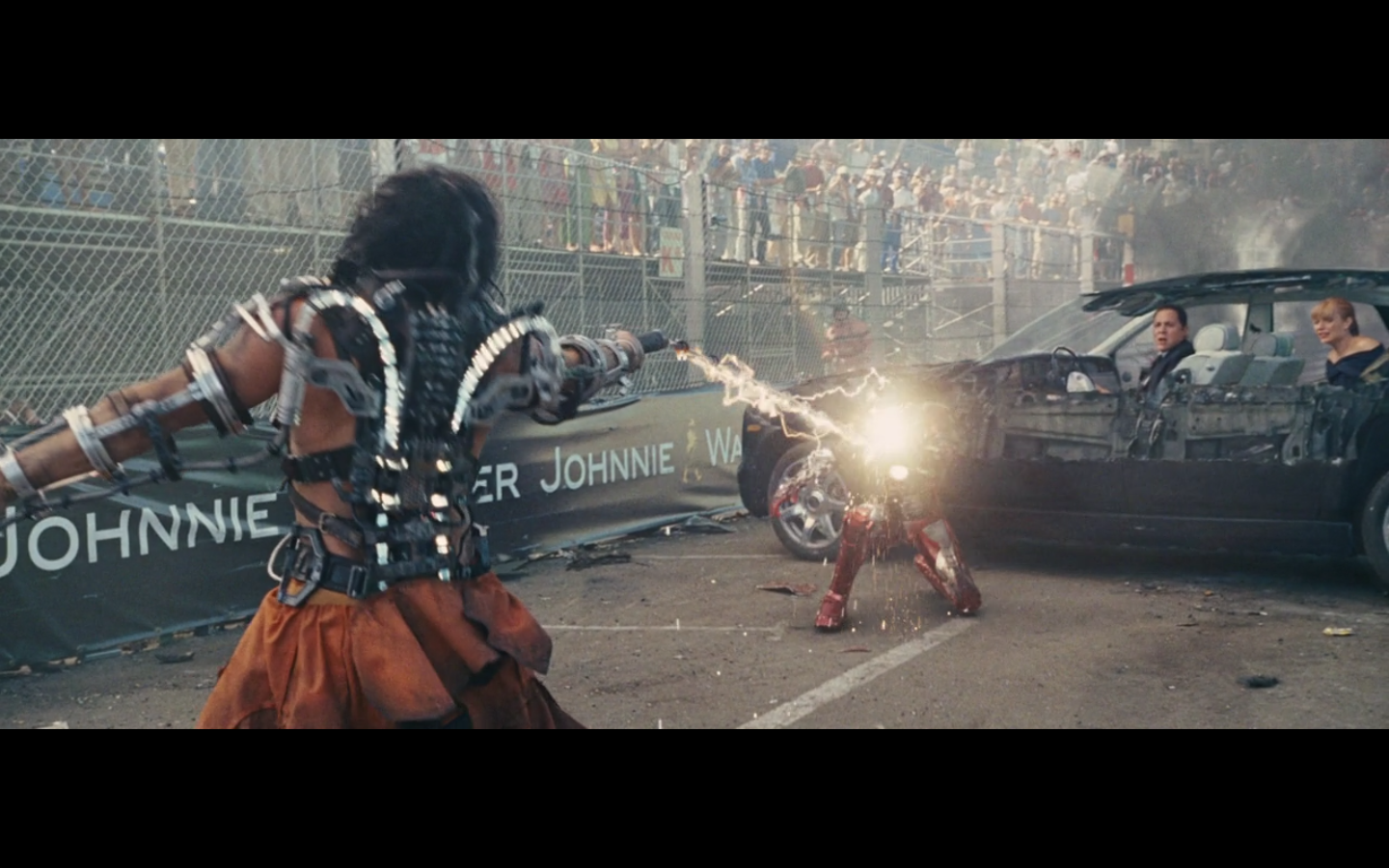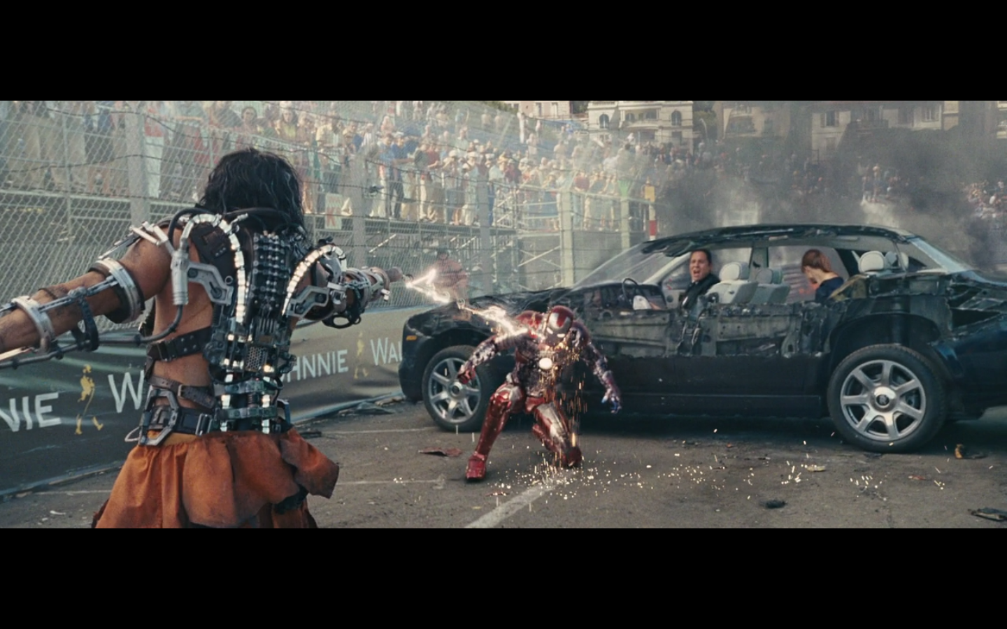 He doesn’t expect Tony to be racing, right? His plan can’t have anticipated Tony deciding to hop in this car last minute. But again, Hammer isn’t helping him. That would have been better if they’d done it that way because at least Hammer would have looked into the past for enemies of the Stark family and found someone instead of having it dropped in his lap like it is.