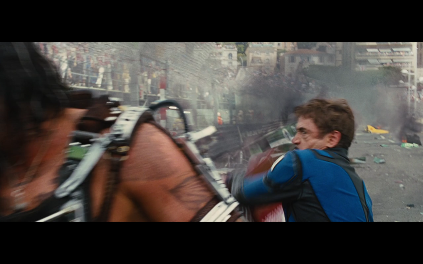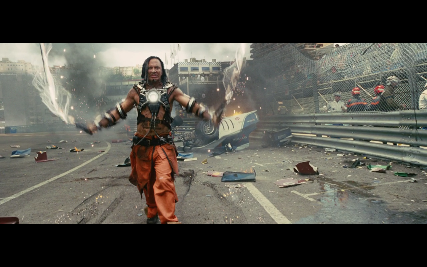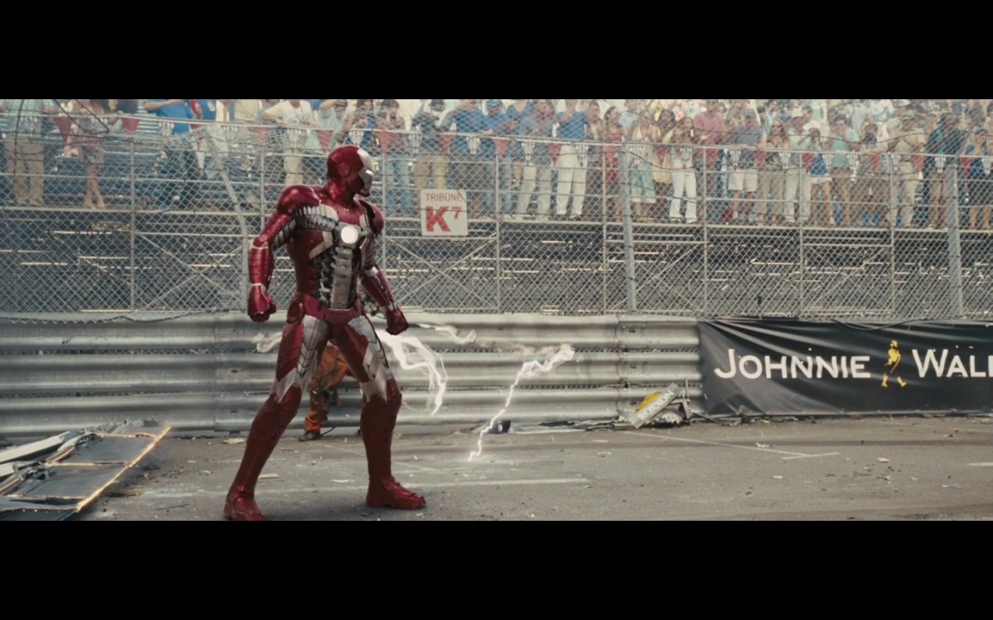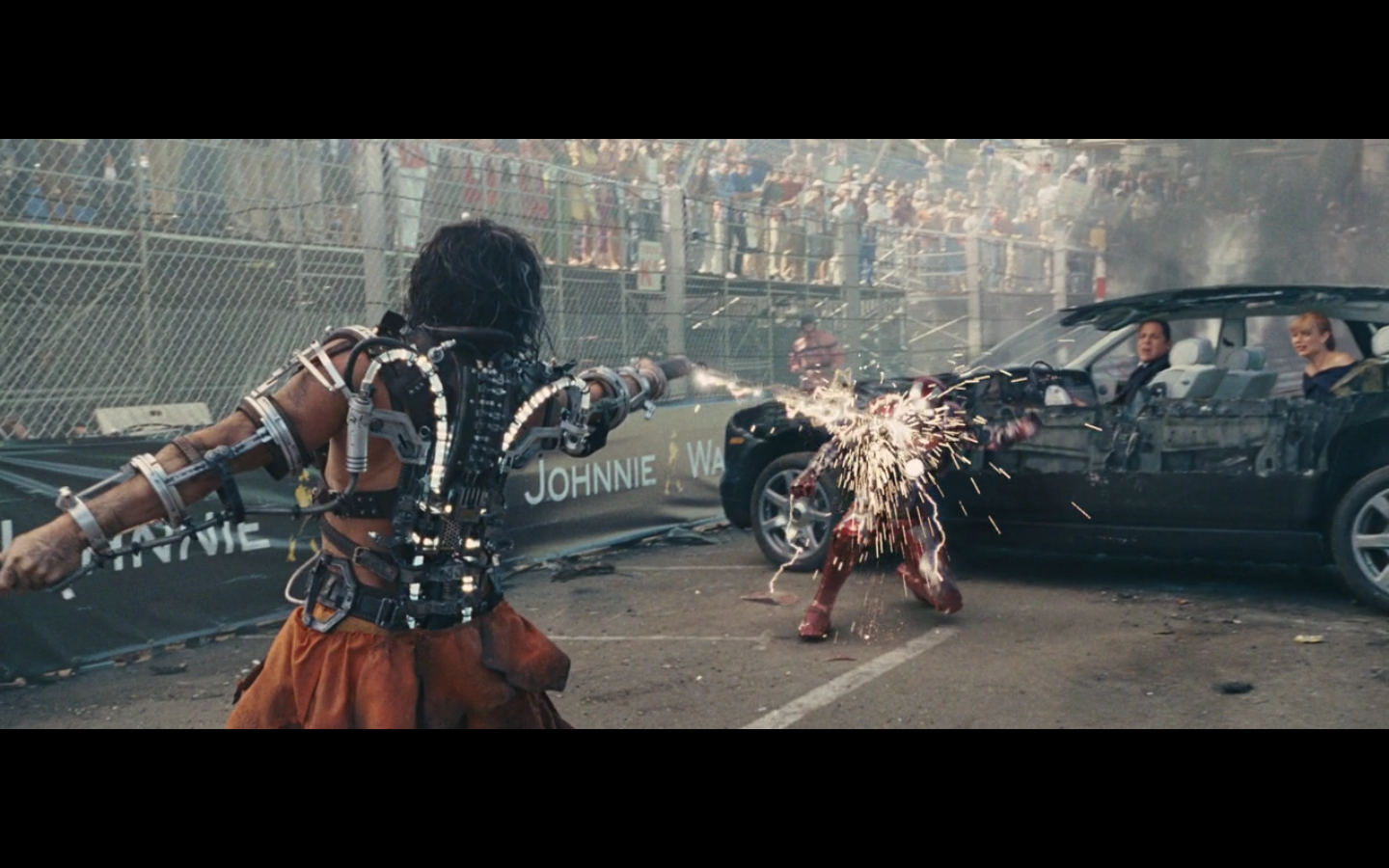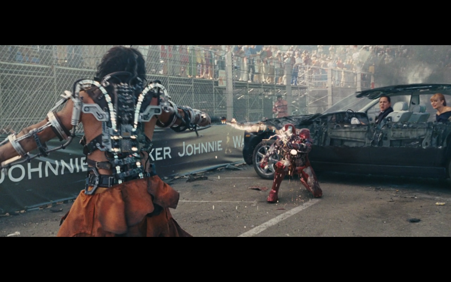 He doesn’t expect Tony to be racing, right? His plan can’t have anticipated Tony deciding to hop in this car last minute. But again, Hammer isn’t helping him. That would have been better if they’d done it that way because at least Hammer would have looked into the past for enemies of the Stark family and found someone instead of having it dropped in his lap like it is.