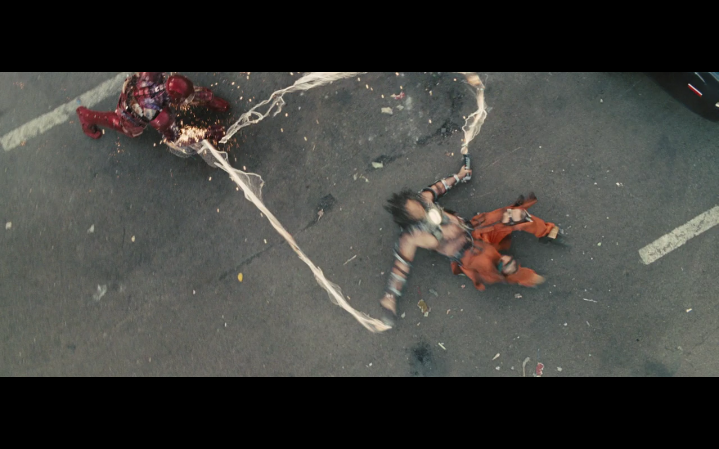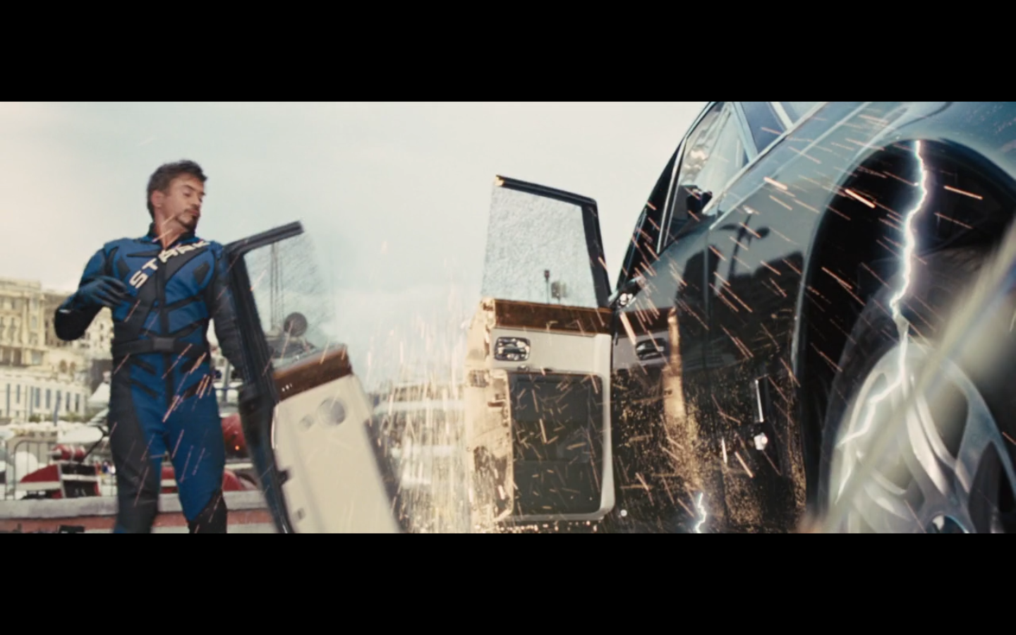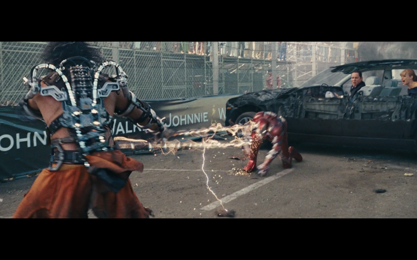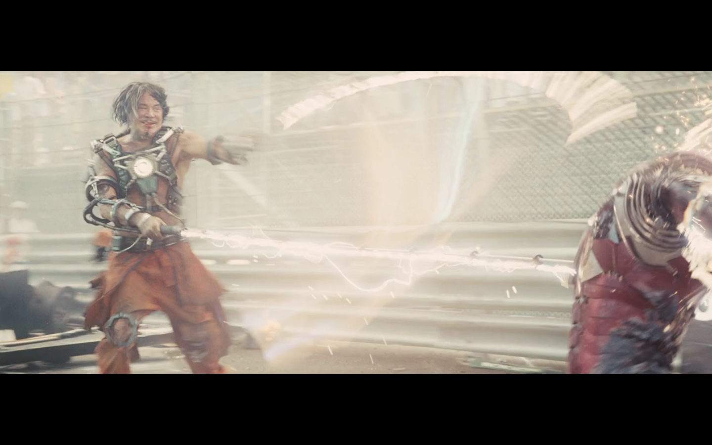 This is not hurting him? It doesn’t cut this metal? You can cut through a Rolls Royce Death Star but not the little thing that Gwyneth Paltrow was able to throw?