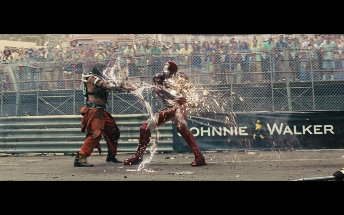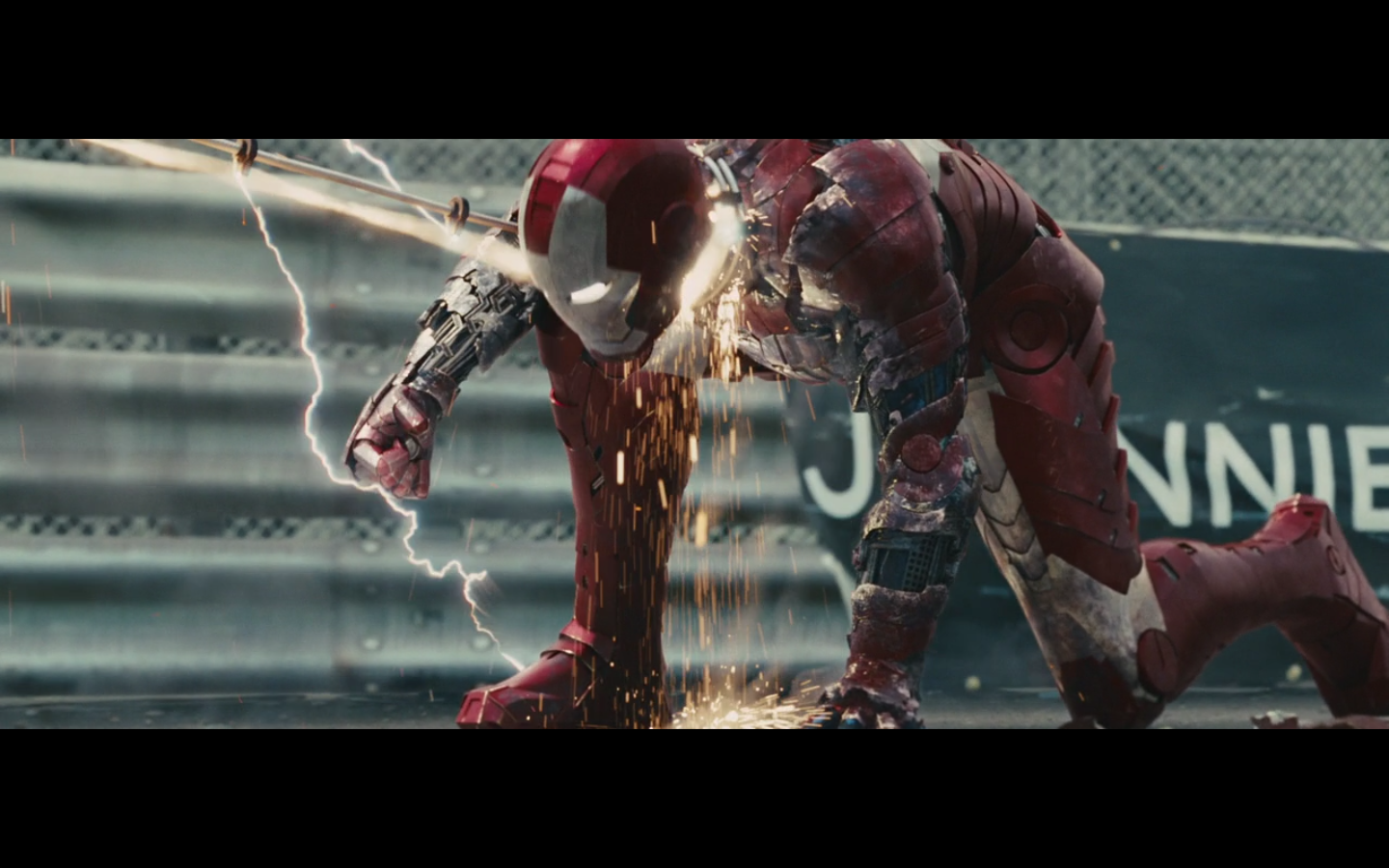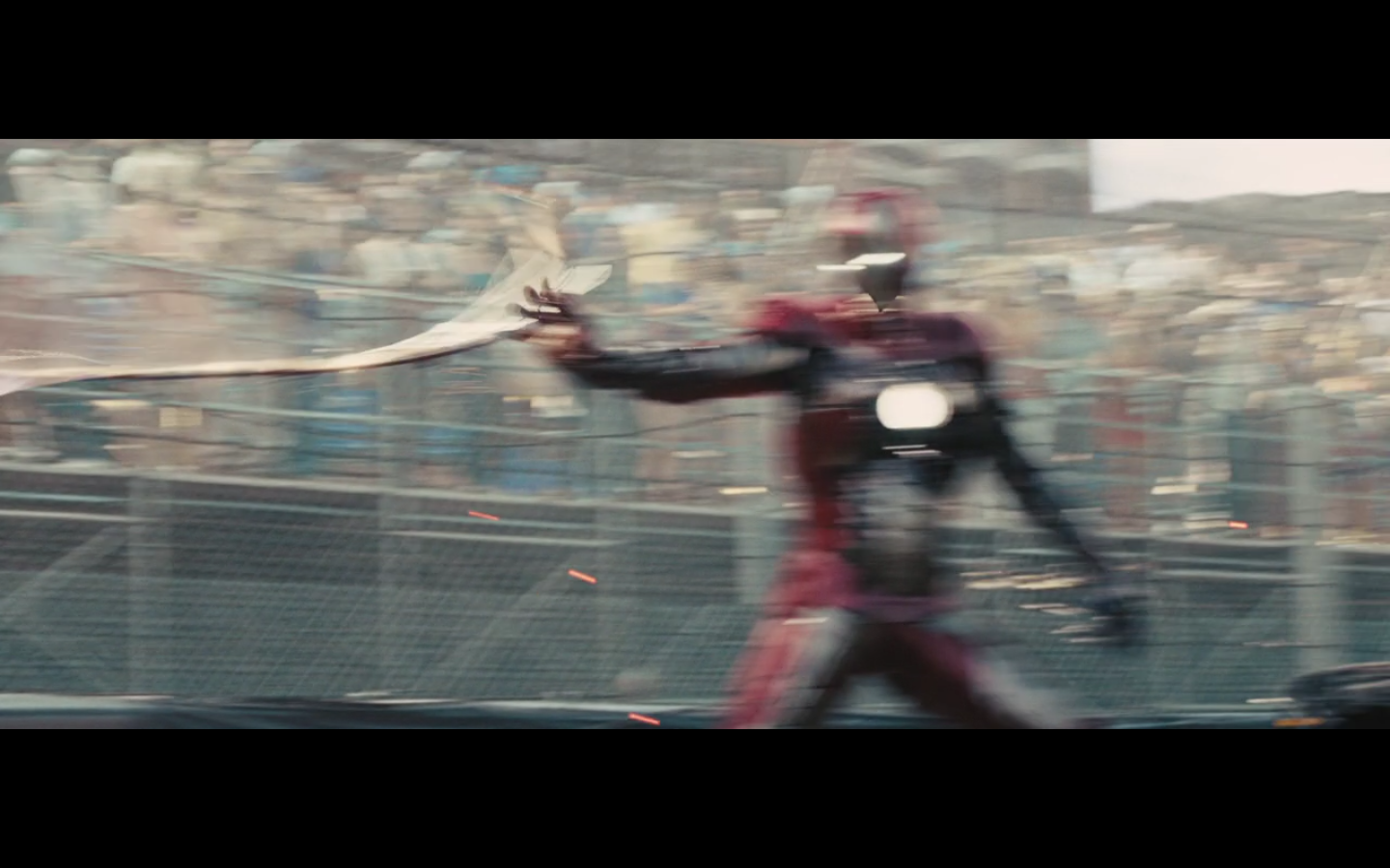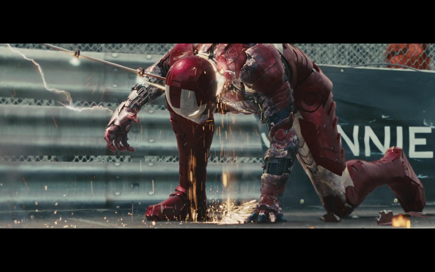 This is not hurting him? It doesn’t cut this metal? You can cut through a Rolls Royce Death Star but not the little thing that Gwyneth Paltrow was able to throw?