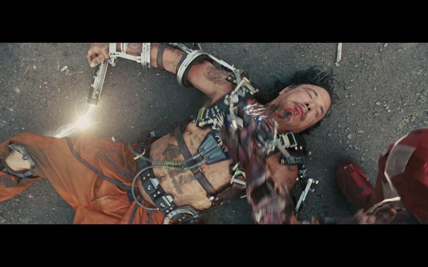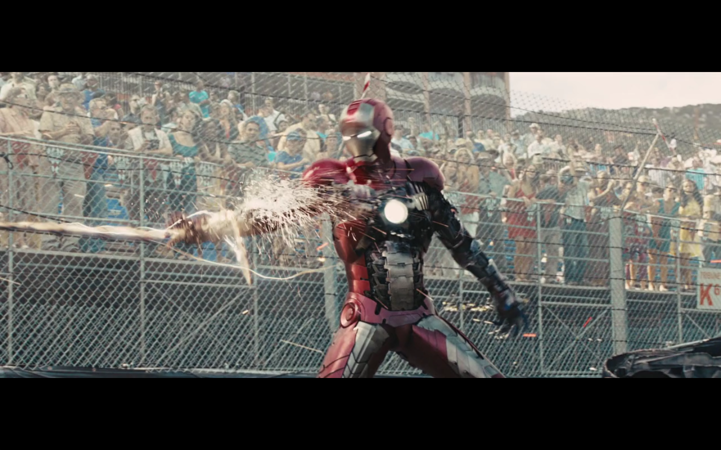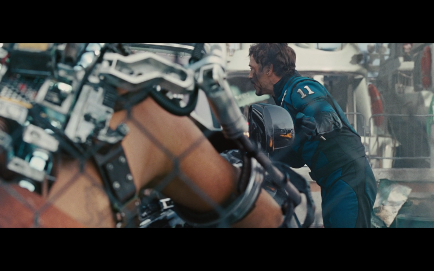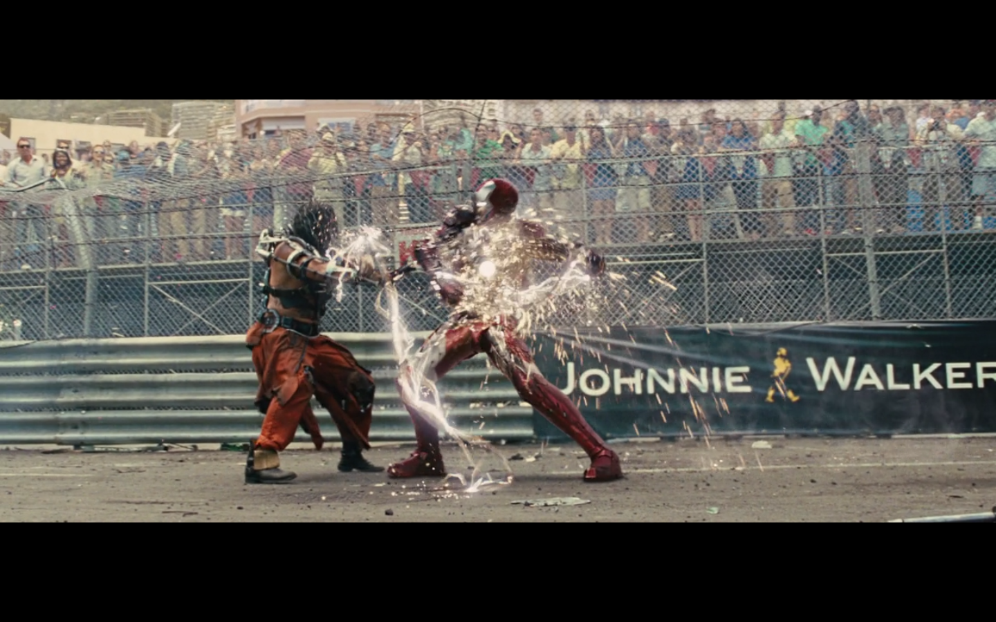 This is not hurting him? It doesn’t cut this metal? You can cut through a Rolls Royce Death Star but not the little thing that Gwyneth Paltrow was able to throw?