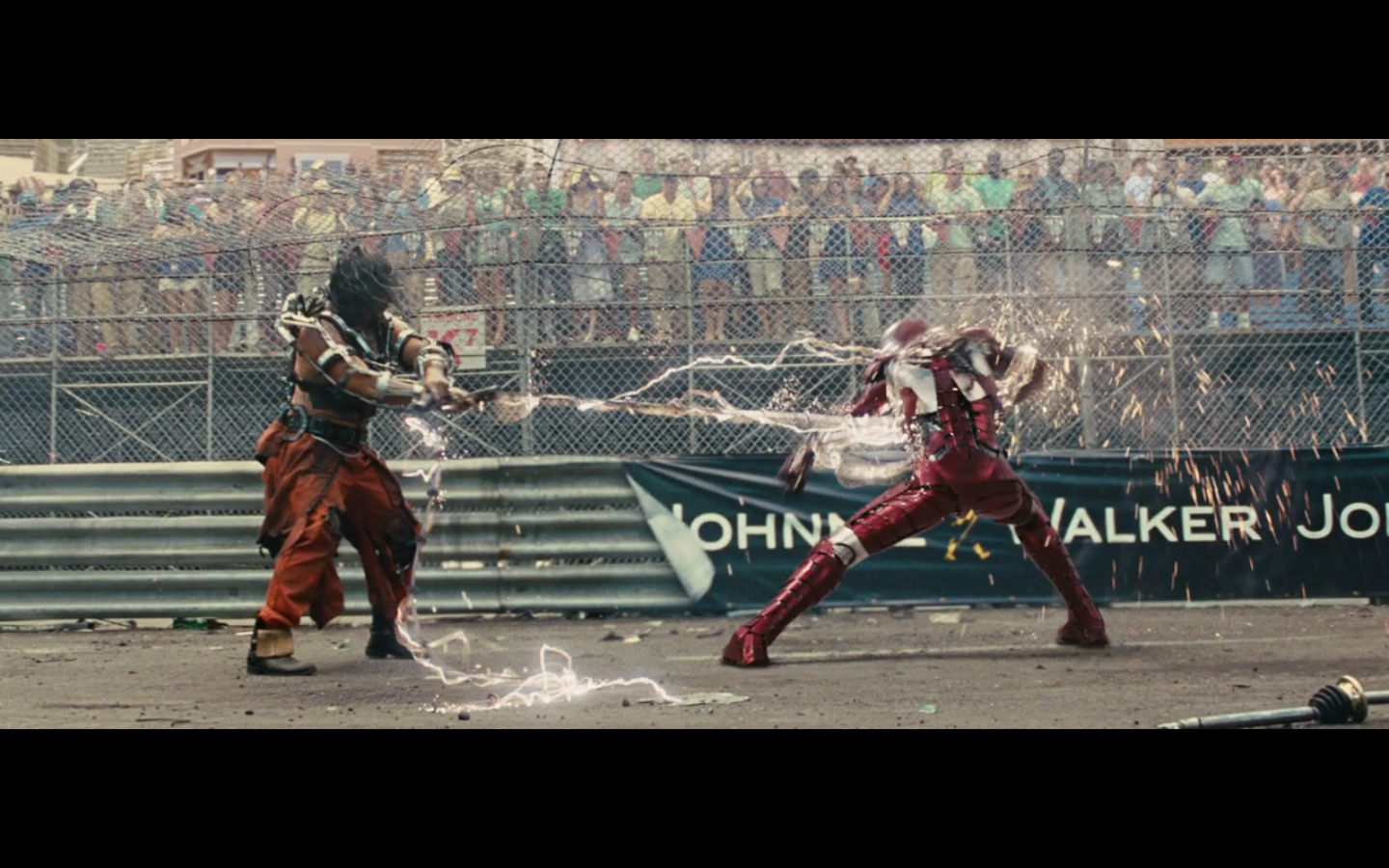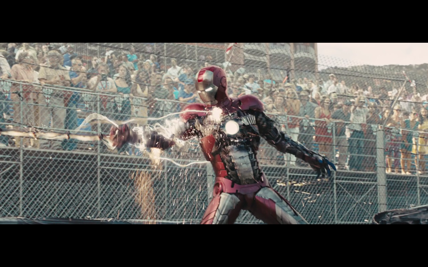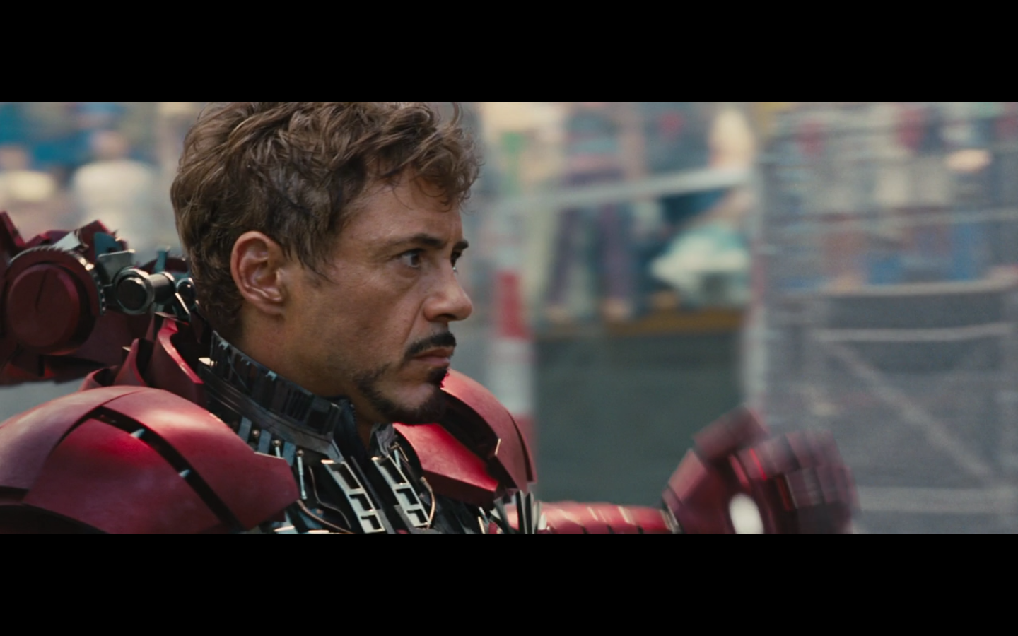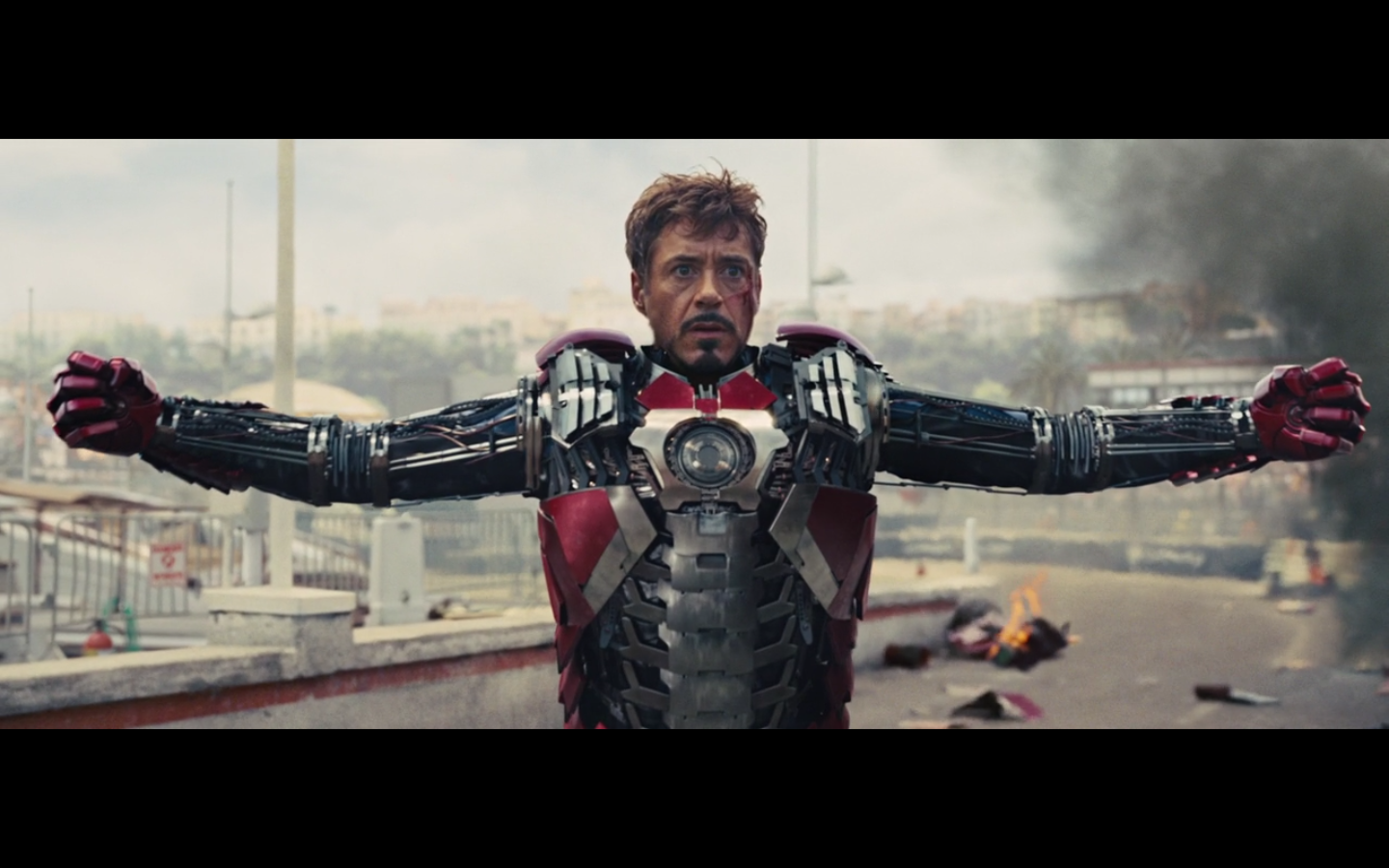 This is not hurting him? It doesn’t cut this metal? You can cut through a Rolls Royce Death Star but not the little thing that Gwyneth Paltrow was able to throw?