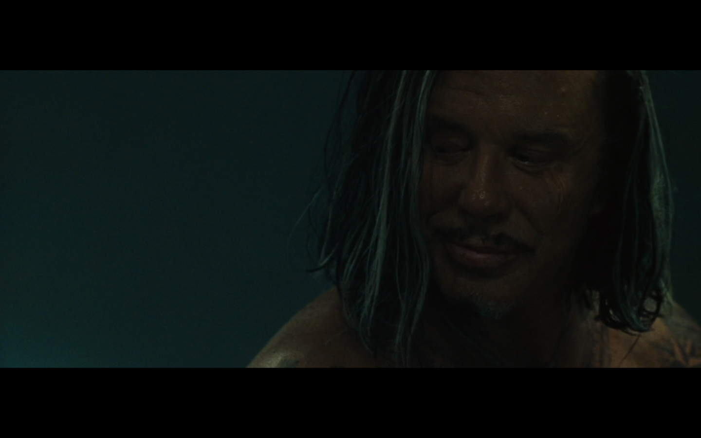 Mickey Rourke, laughing like a crazy person. Not much of a stretch.