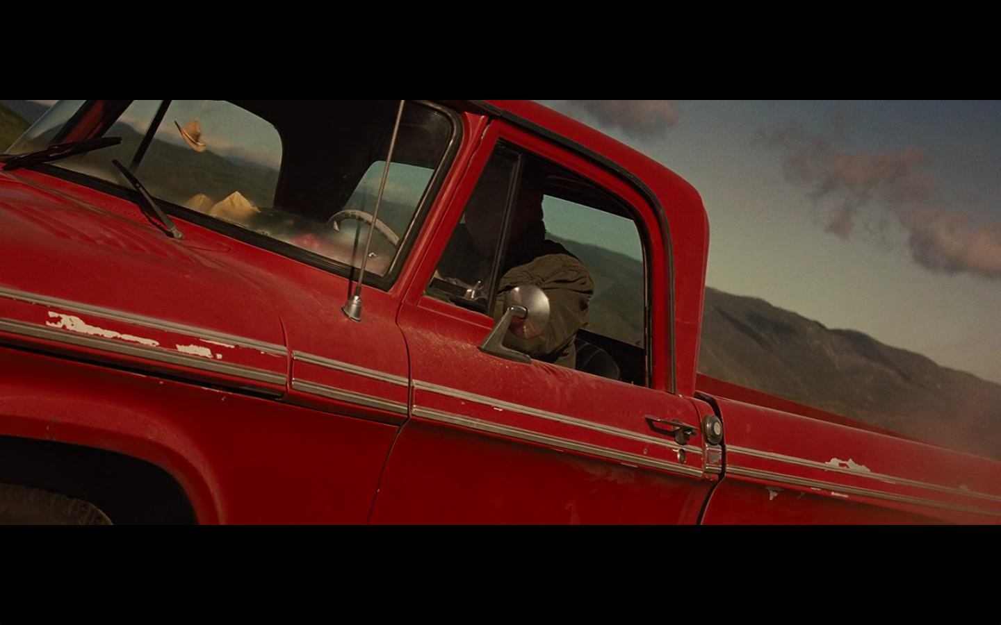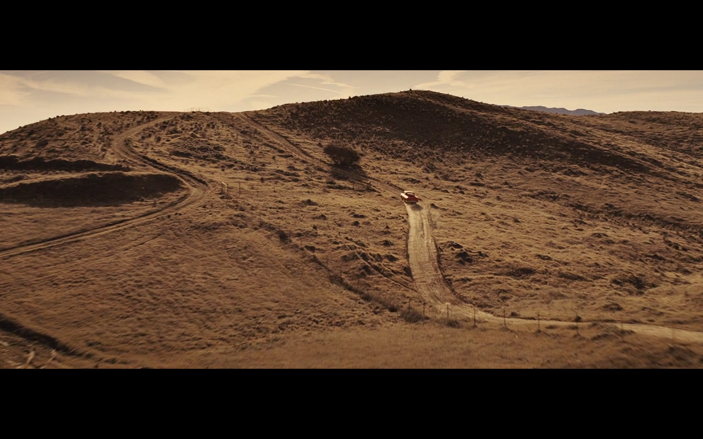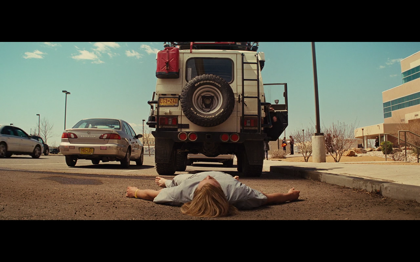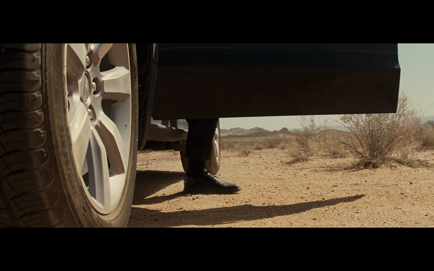 Did they hose down the road for this scene? Was that on purpose? Why is the pavement wet? It didn’t rain the night before. It’s the desert, but the road is wet.