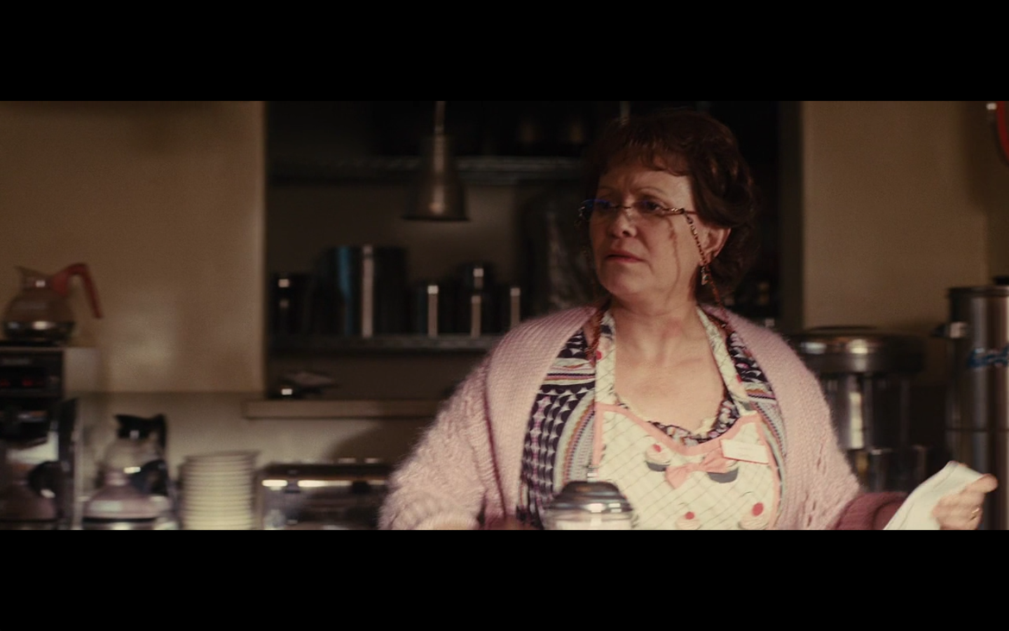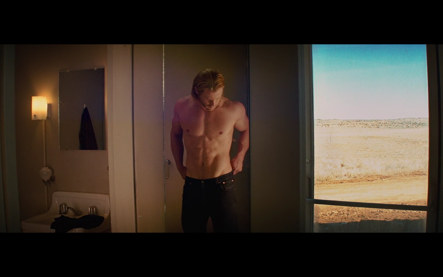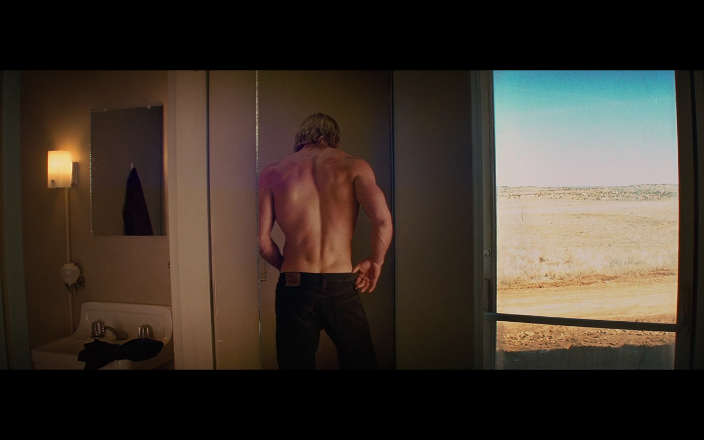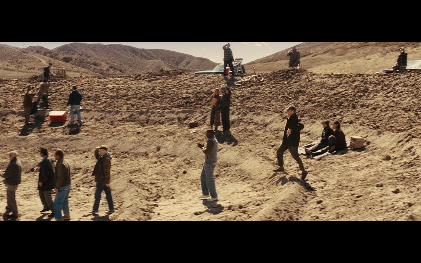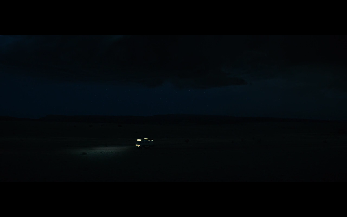 Did they hose down the road for this scene? Was that on purpose? Why is the pavement wet? It didn’t rain the night before. It’s the desert, but the road is wet.