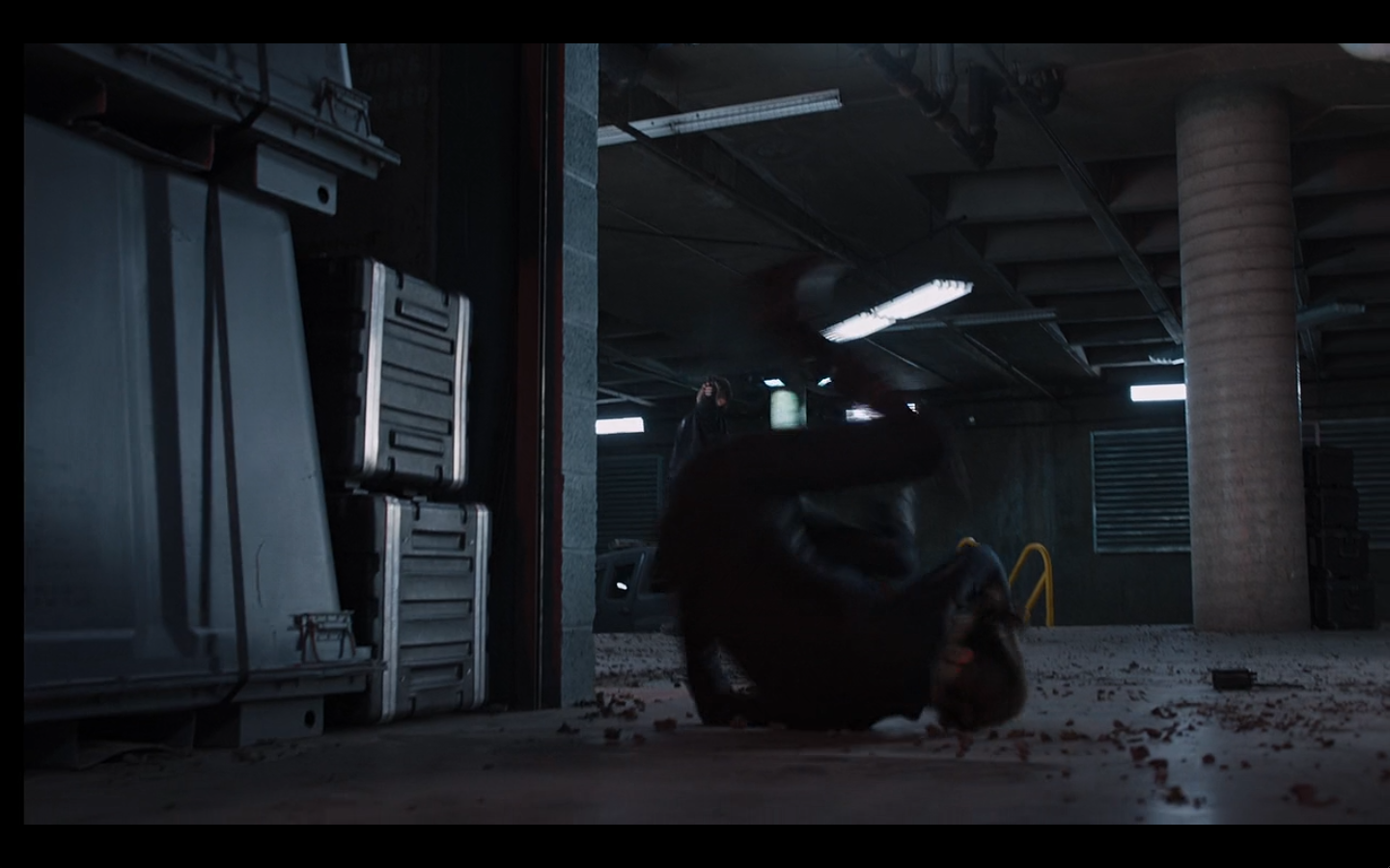 This should be where Jarvis drops paint cans from ropes tied to the ceiling and puts race cars all along the floor for him to trip on.