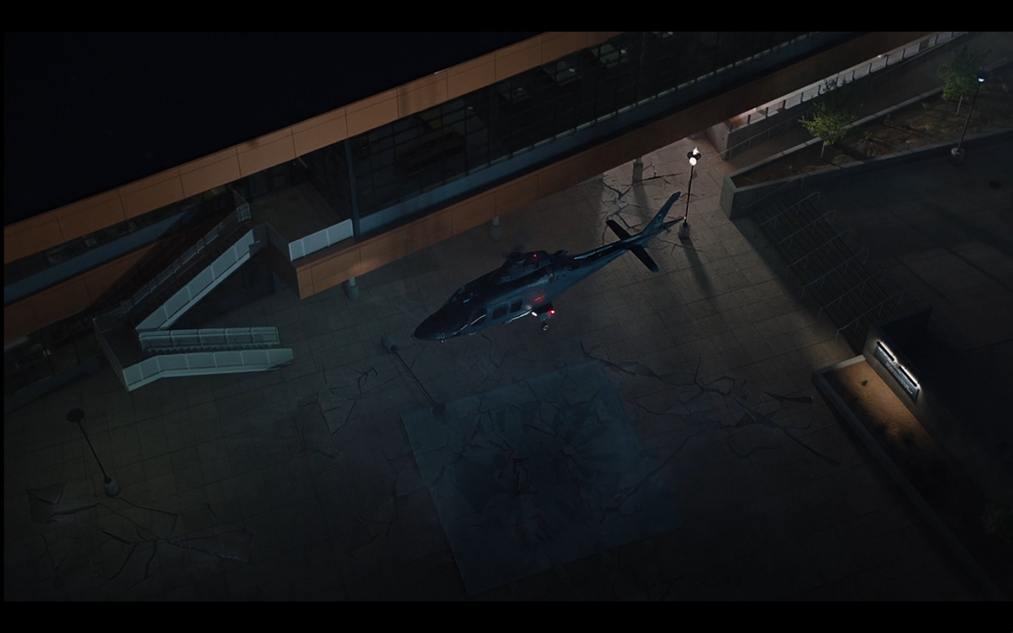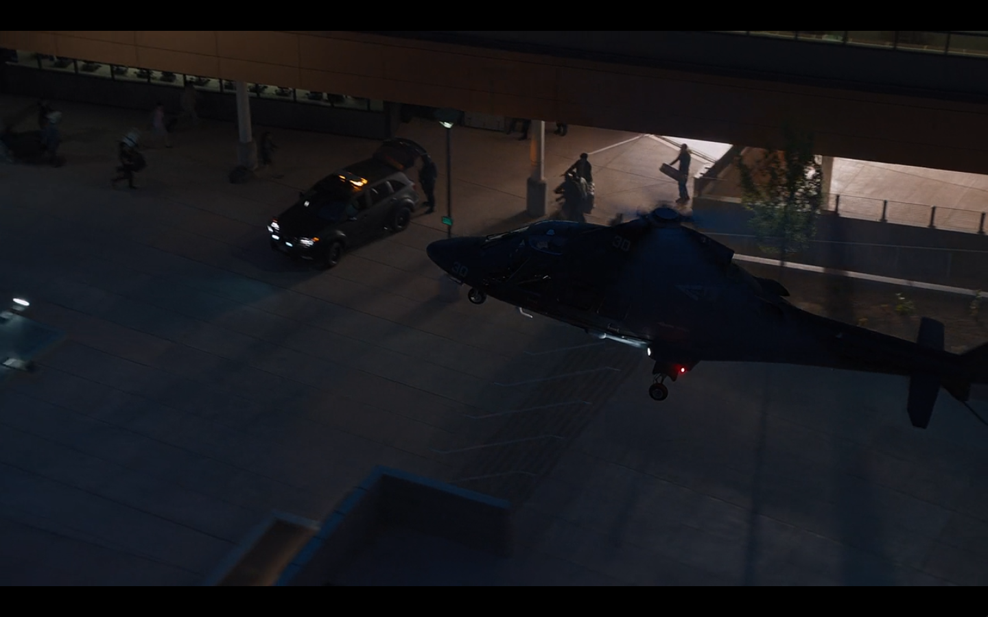 It took them one minute to have a guy wearing sunglasses at night as a helicopter lands amidst chaos. These movies.