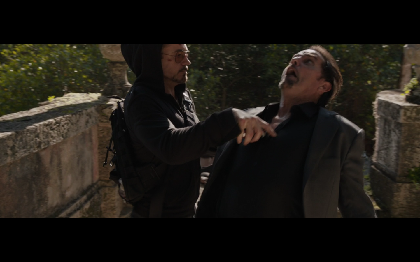 He finds out the suit isn’t charging well and he has another panic attack? The whole middle portion of this movie is just a mound of shit. Steaming.