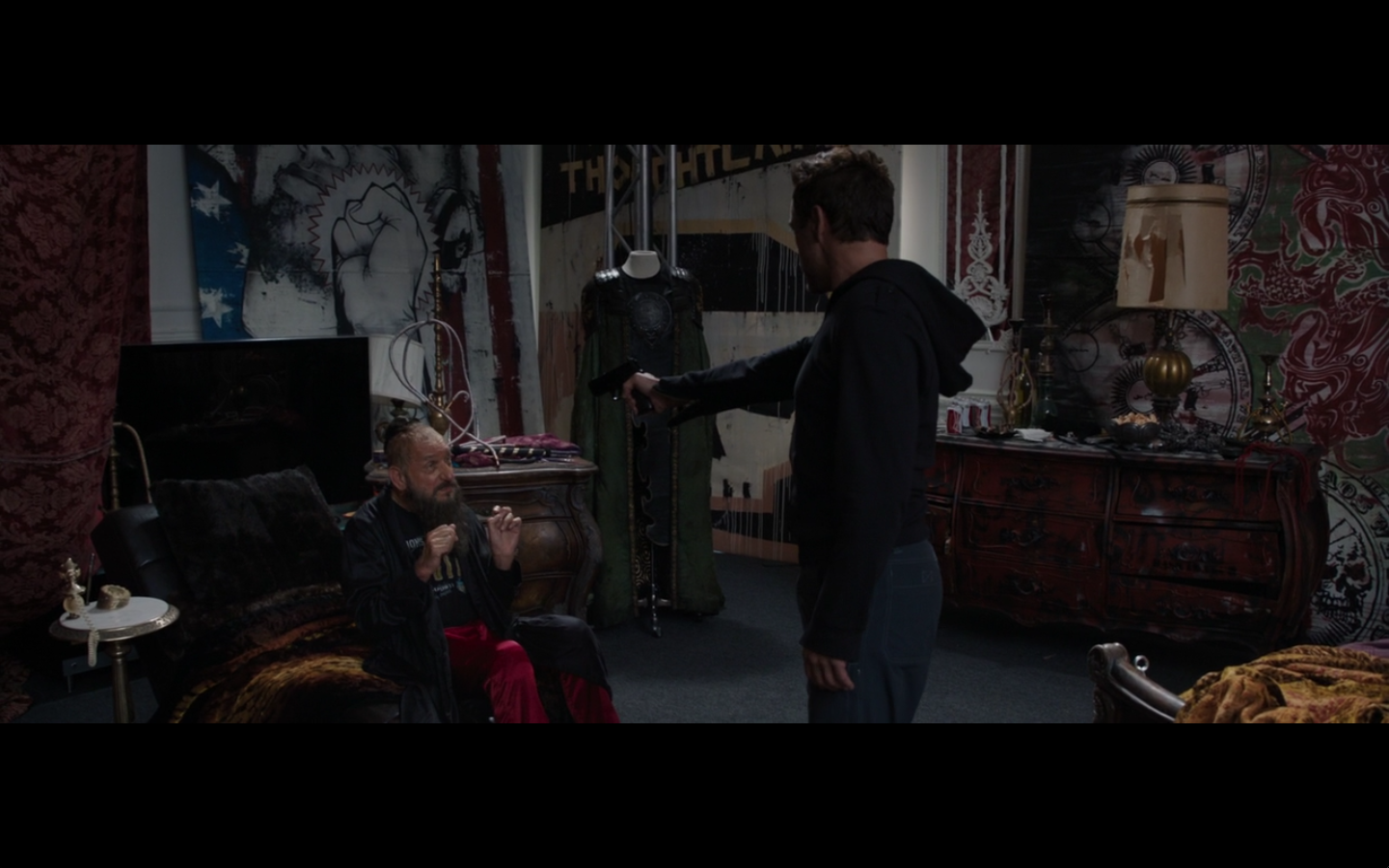 This should be a sign for everyone. He’s about to find the Mandarin, yet he’s in the bedroom about to throw off some sheets. Clearly not the Mandarin as people are expecting.