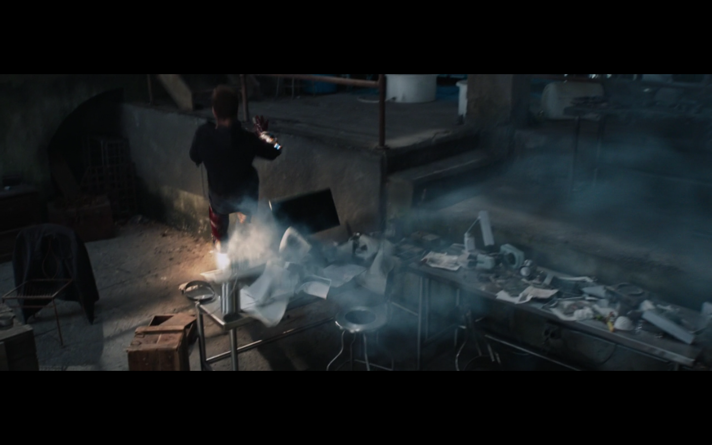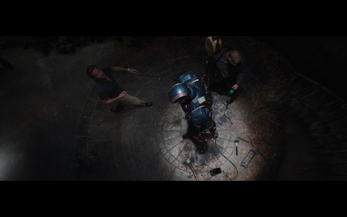 I guess the suit just started charging again on its own? Or was the kid fucking with him? Do we even care? Because he calls the suit later and it comes. And also, I guess it’s running on electricity now and not the arc reactor.