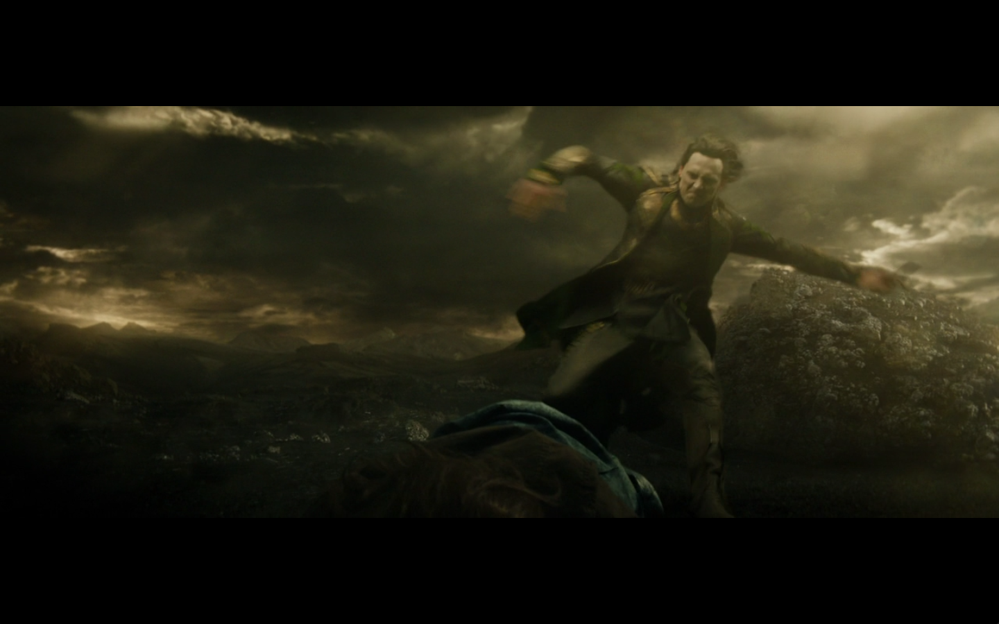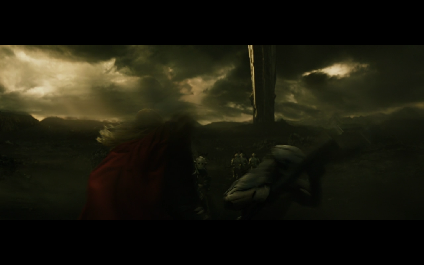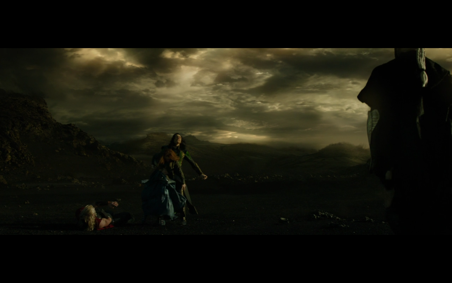 Or, actually… even better. Ready for this? He doesn’t even take the Aether. He takes the key to where it’s buried. It should have been a secret to all, but they kept the answer with them, and Odin should have destroyed it but didn’t. So now, the only way they can find where the Aether is and stop Malekith is the one person who can either decipher or figure out the answer and get to secret places — Loki. And the entire second act is your road trip between the brothers. Dealing with all of this. More scenes like this, just them, character development, more of what we want to see with these movies. Then you can cut to whatever the fuck you want on Earth and I’m okay with it. Keep the warriors on Asgard. You can even put a small side plot with them if you want. Only if you focus mostly on Sif, since she’s the only one who matters. But then, Thor and Loki are on this trip, figuring shit out, processing grief, and you never know if Loki is gonna turn on him or not — and then you can run the rest of this movie from here on out as it is, and it’s way better.