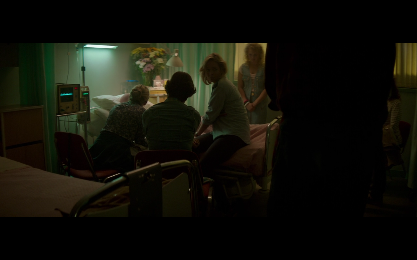Look at this random 80s lady in the back. Someone had to cast a woman to be a sad 80s woman in the hospital. Can you imagine explaining that motivation? “So you’re really bummed about your friend dying, because she’s been really close to you and you’ve been there for her while she does the whole single mom thing, and on top of all this, Bon Jovi’s album New Jersey was just released, and you’re really relating to the lyrics of Blood on Blood right now.”