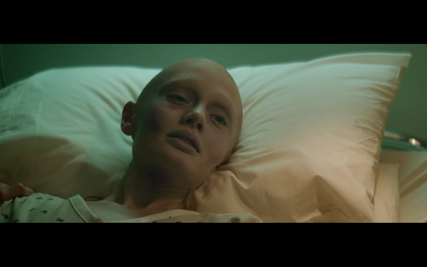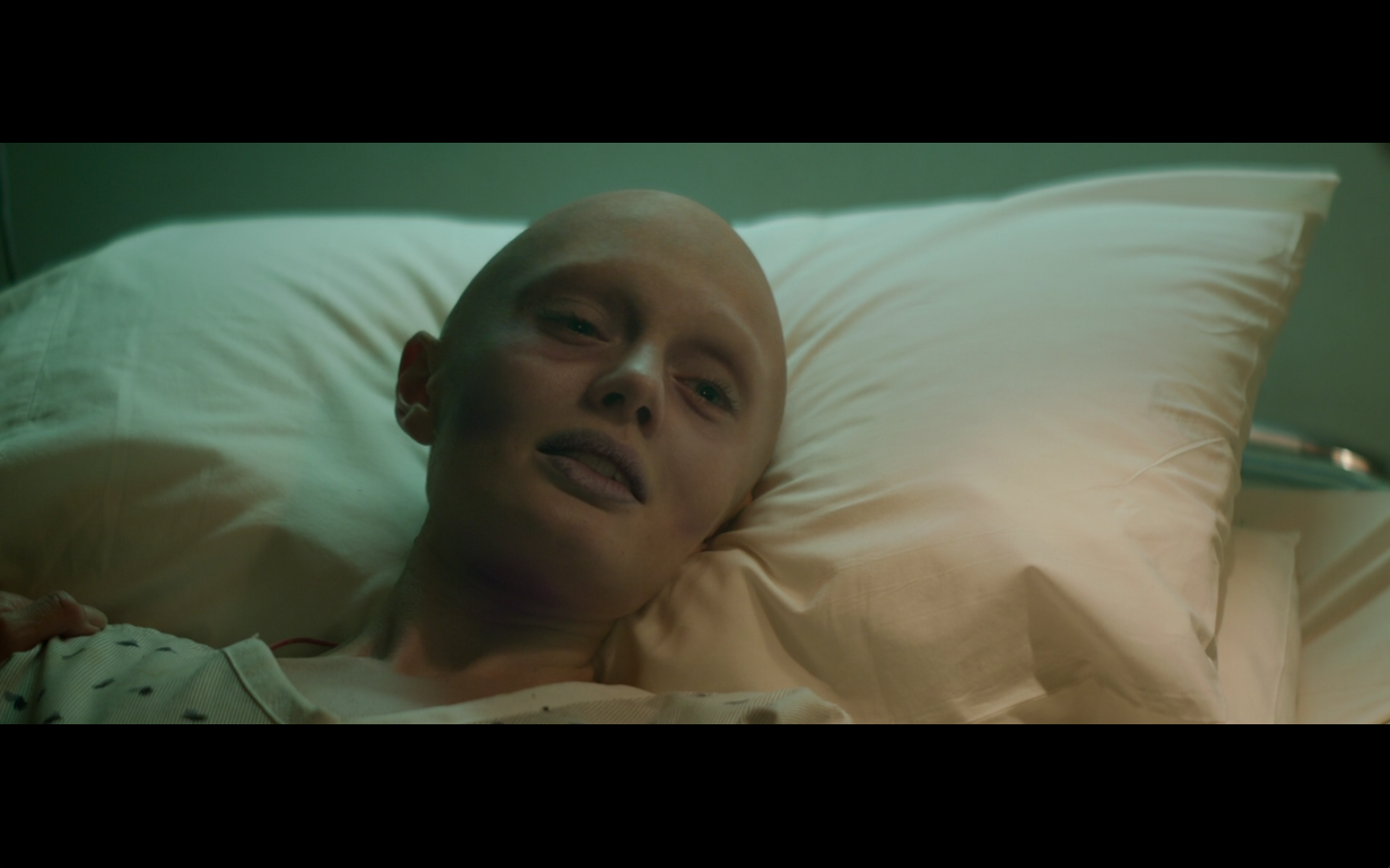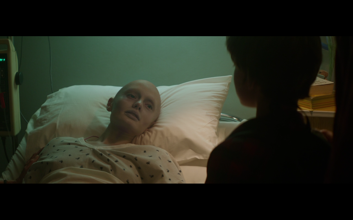 Seriously, though, what’s with the hair? Her head is freshly shaved. Usually they do that at the start of all the chemo. There’s no way she’s dying that quickly after having her head shaved. They wouldn’t even bother with the treatment if that was the case.