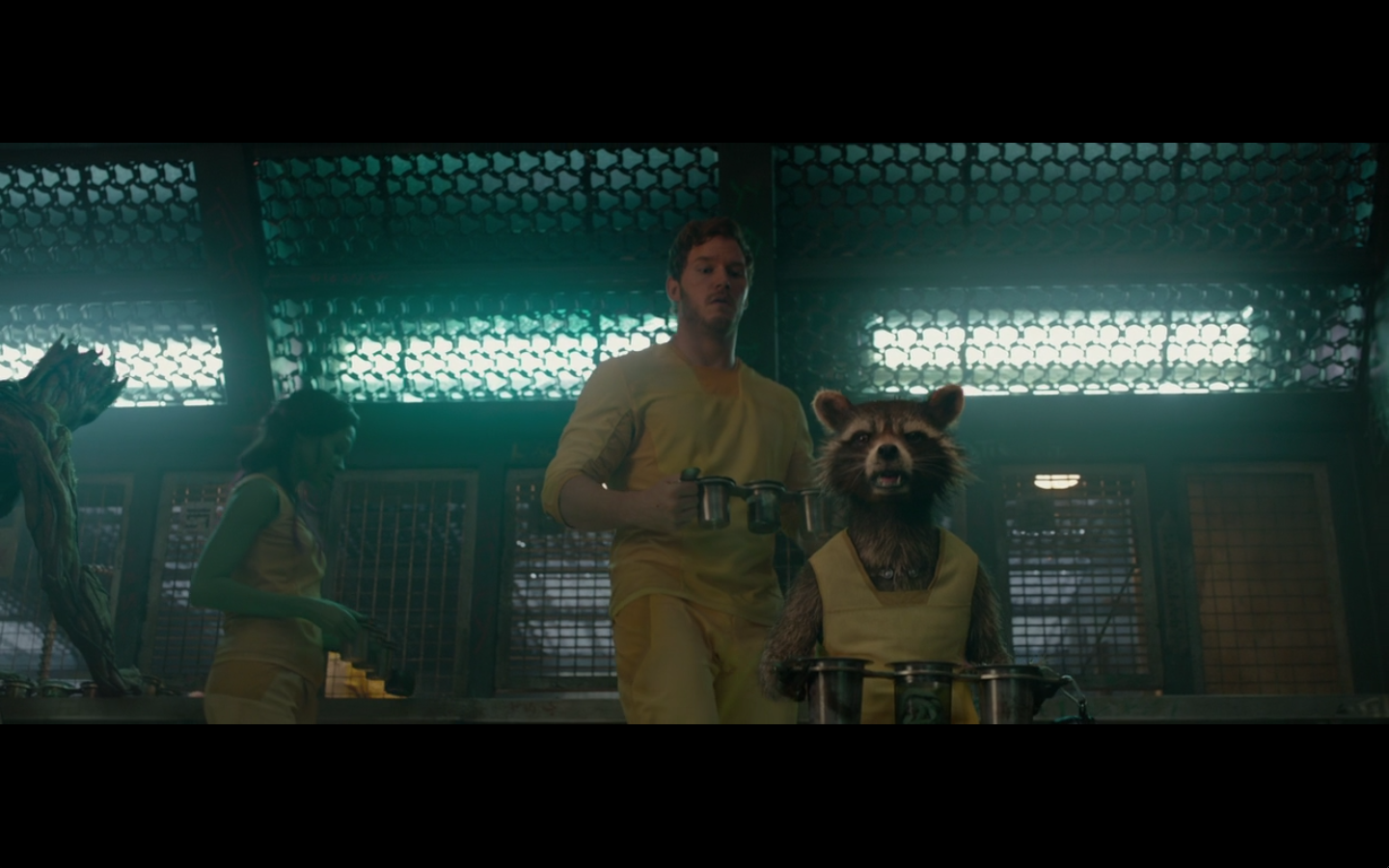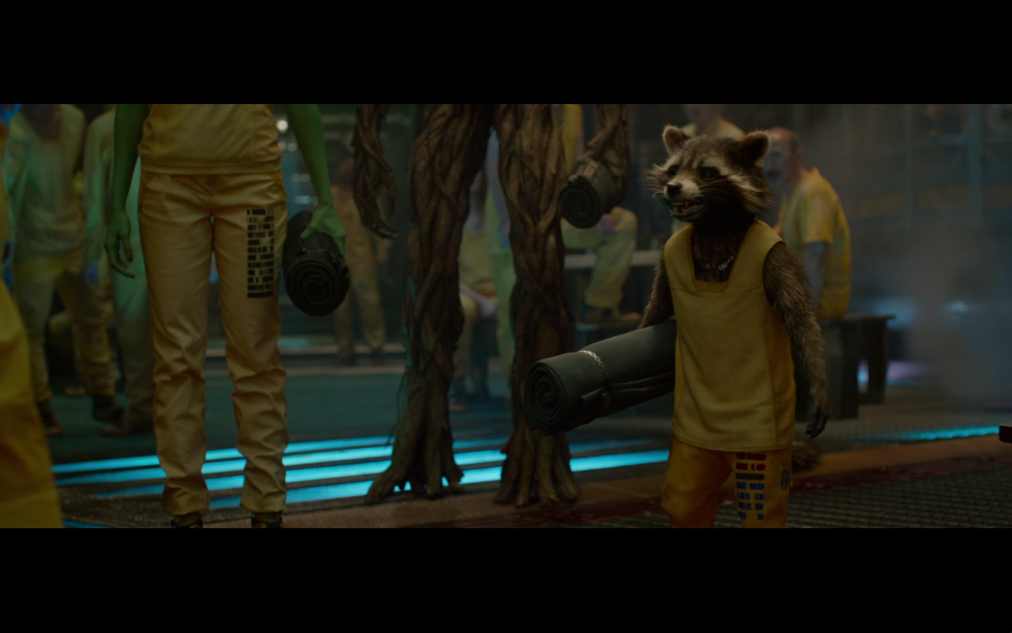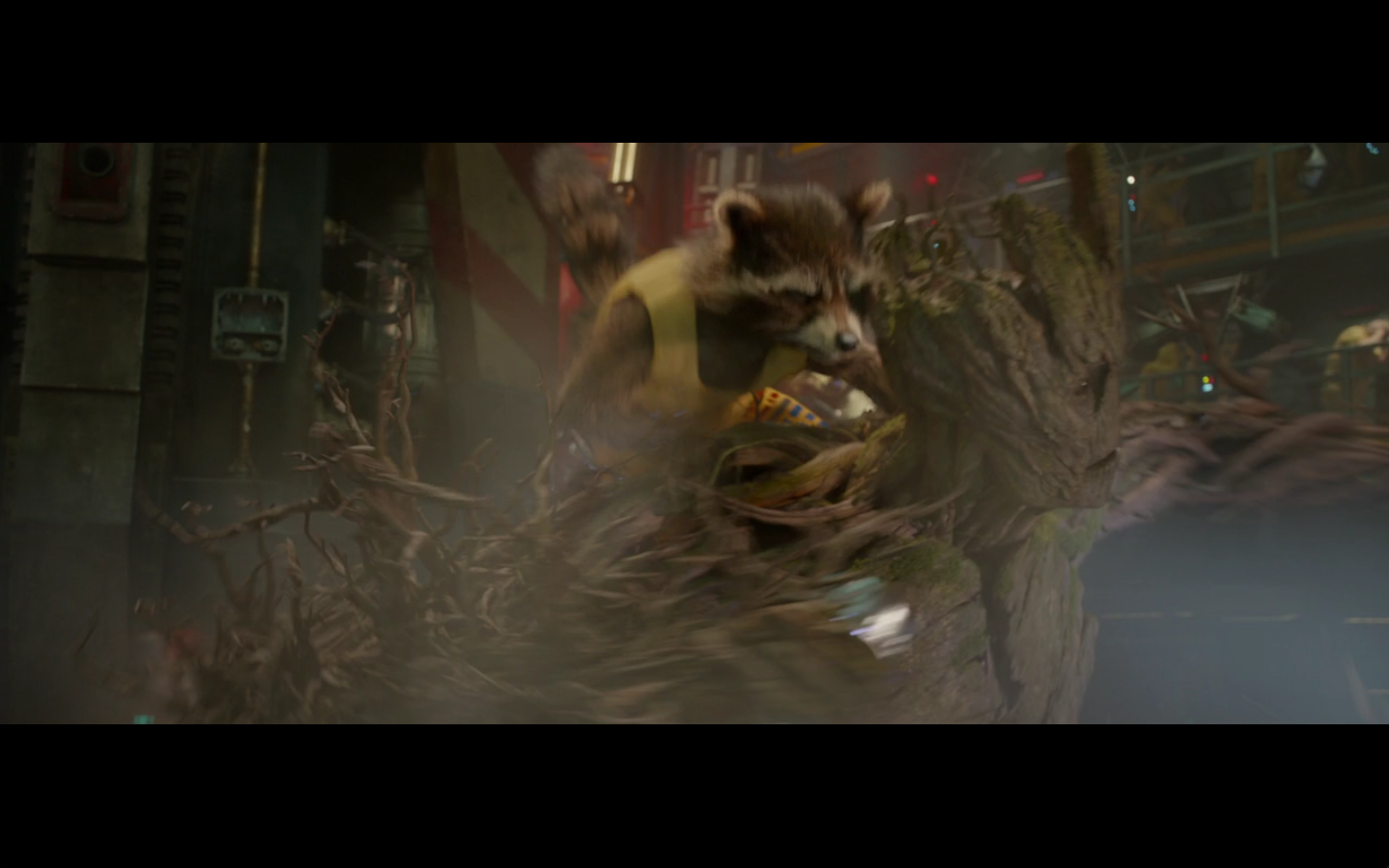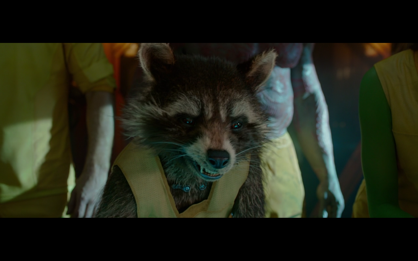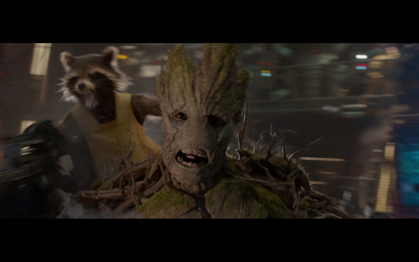 Let’s do a quick rundown of the tropes. Lovable, handsome oaf who leads the gang, enigmatic green chick, overly literal MMA fighter, computer-hacking-bounty-hunting raccoon, tree.