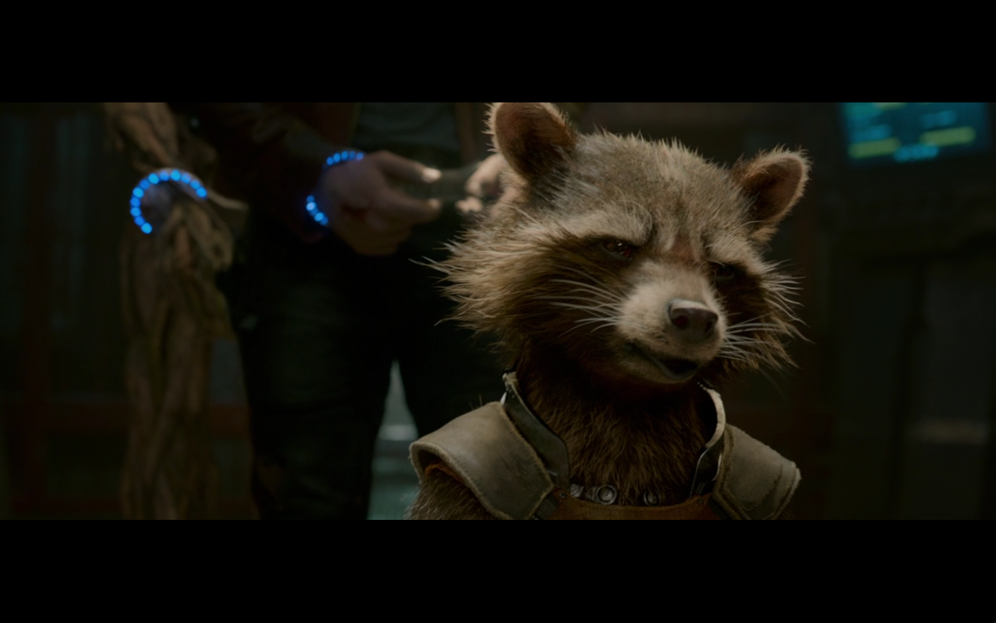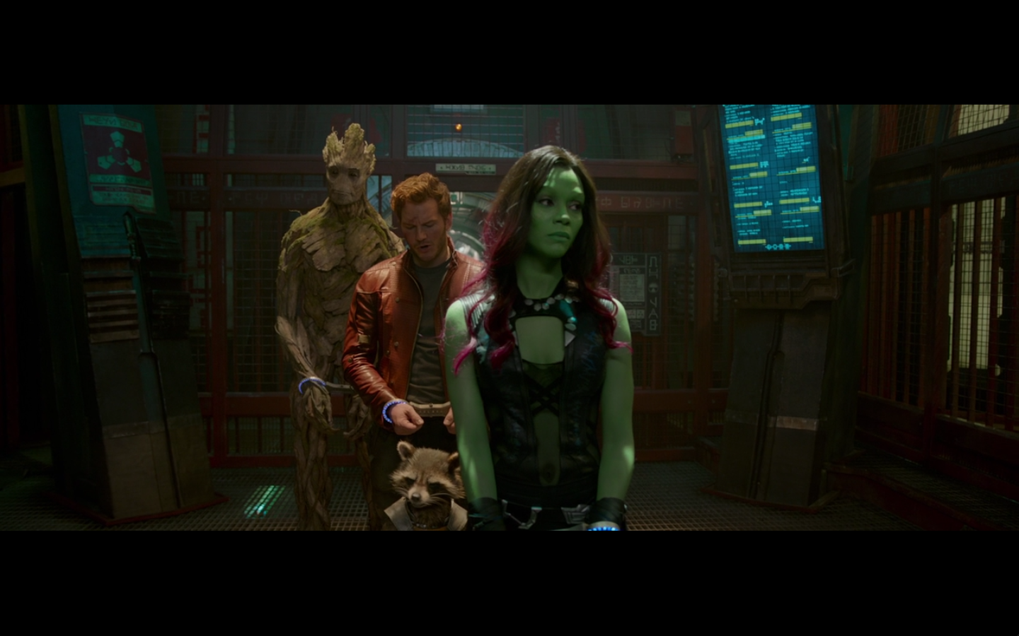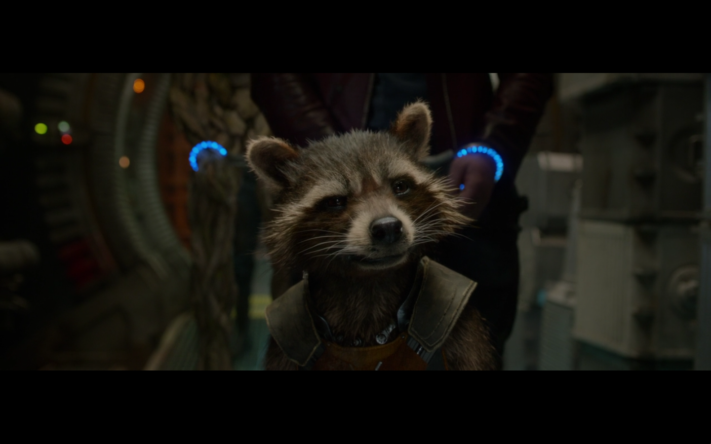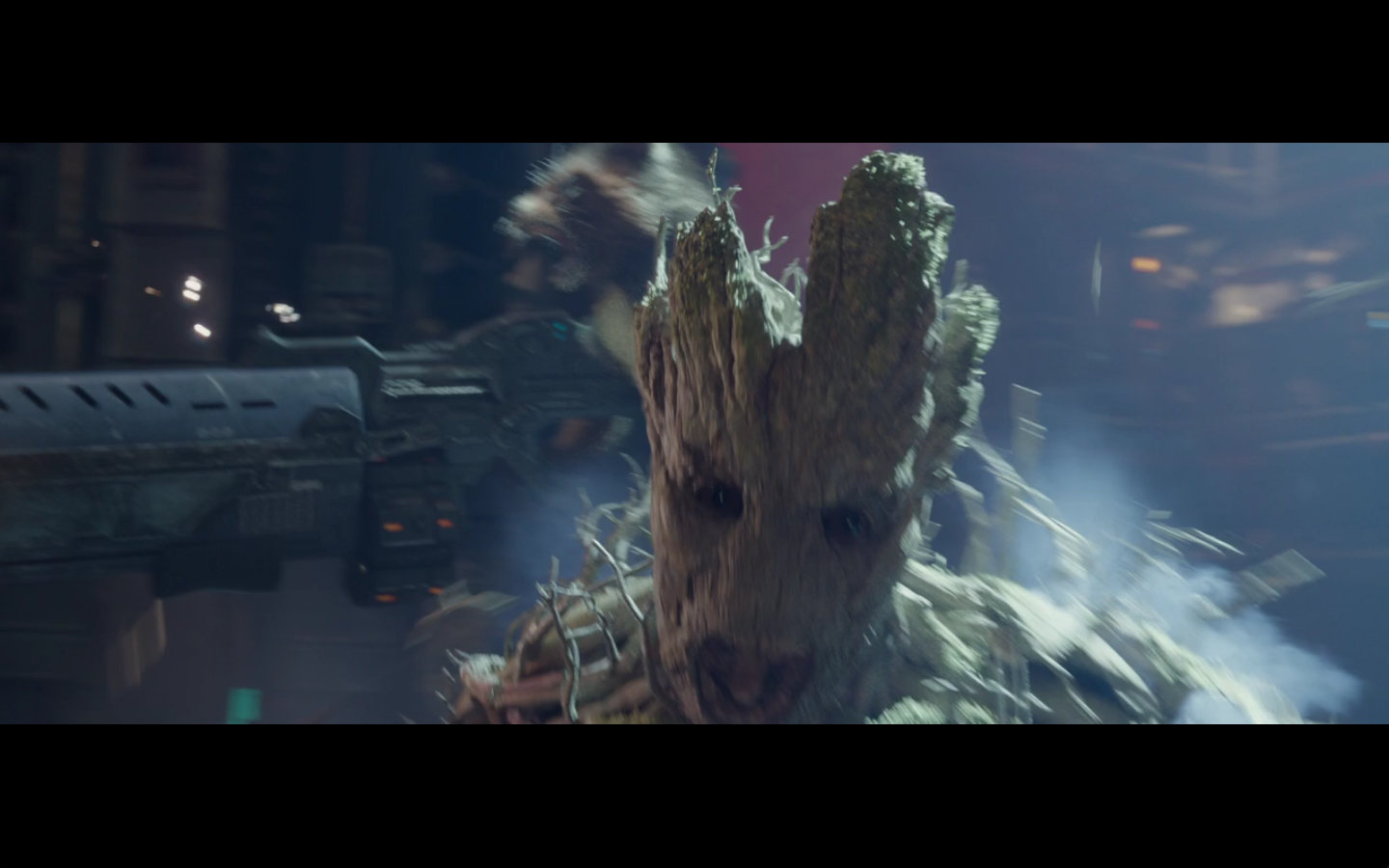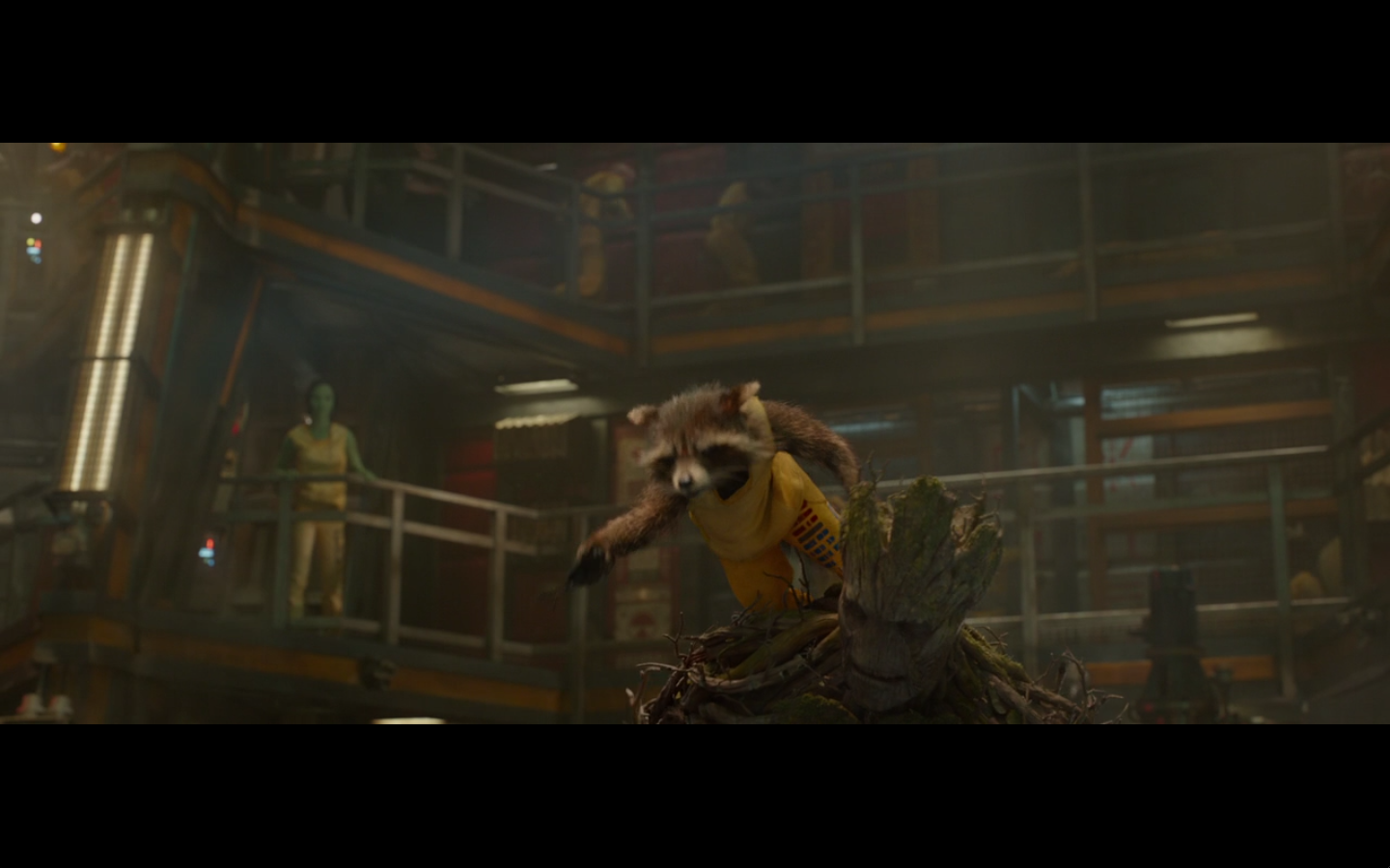 Let’s do a quick rundown of the tropes. Lovable, handsome oaf who leads the gang, enigmatic green chick, overly literal MMA fighter, computer-hacking-bounty-hunting raccoon, tree.