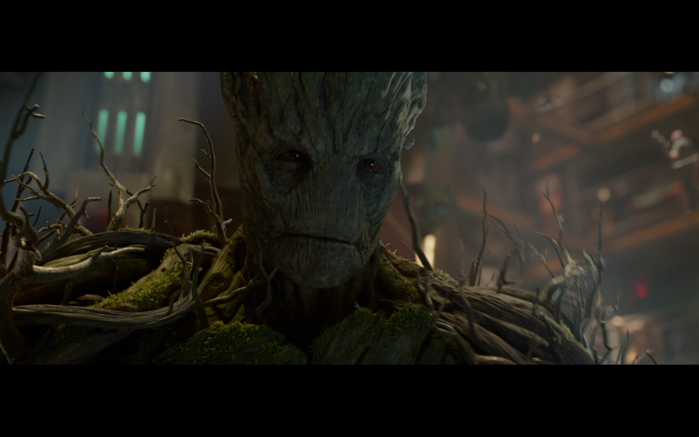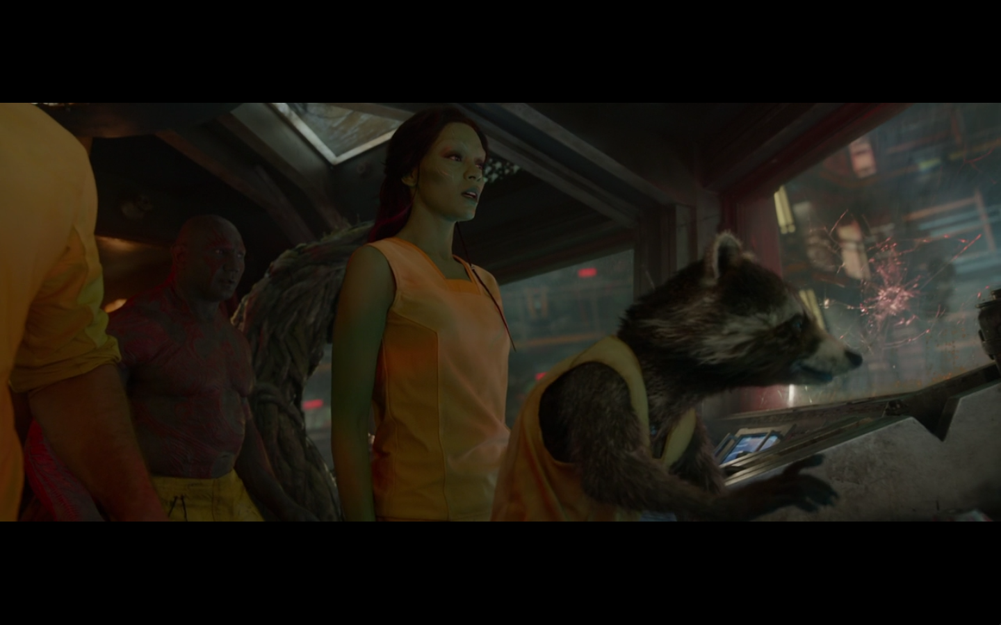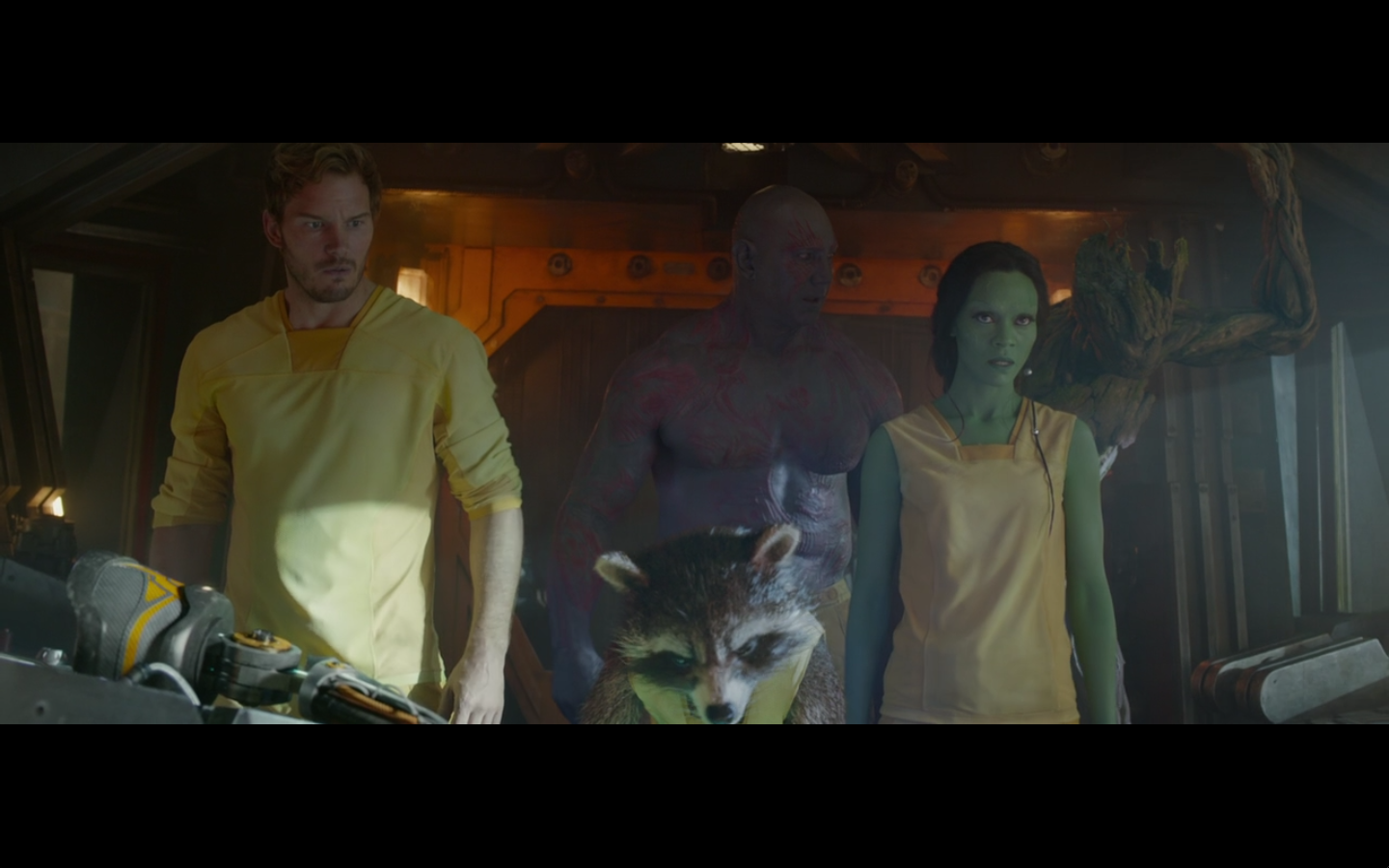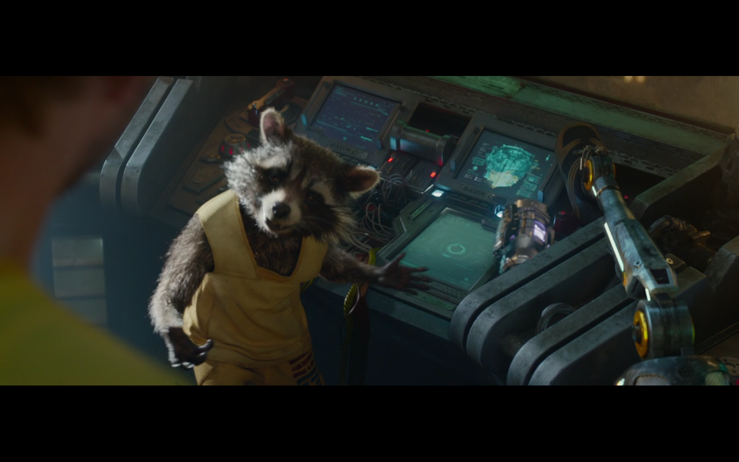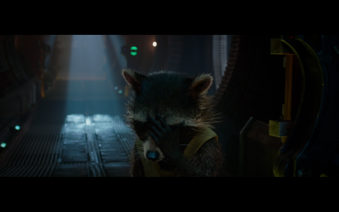Let’s do a quick rundown of the tropes. Lovable, handsome oaf who leads the gang, enigmatic green chick, overly literal MMA fighter, computer-hacking-bounty-hunting raccoon, tree.