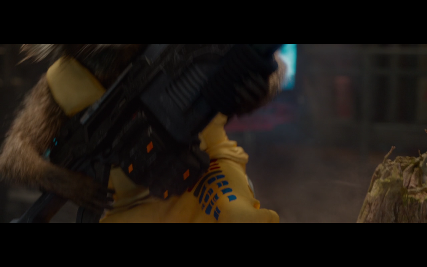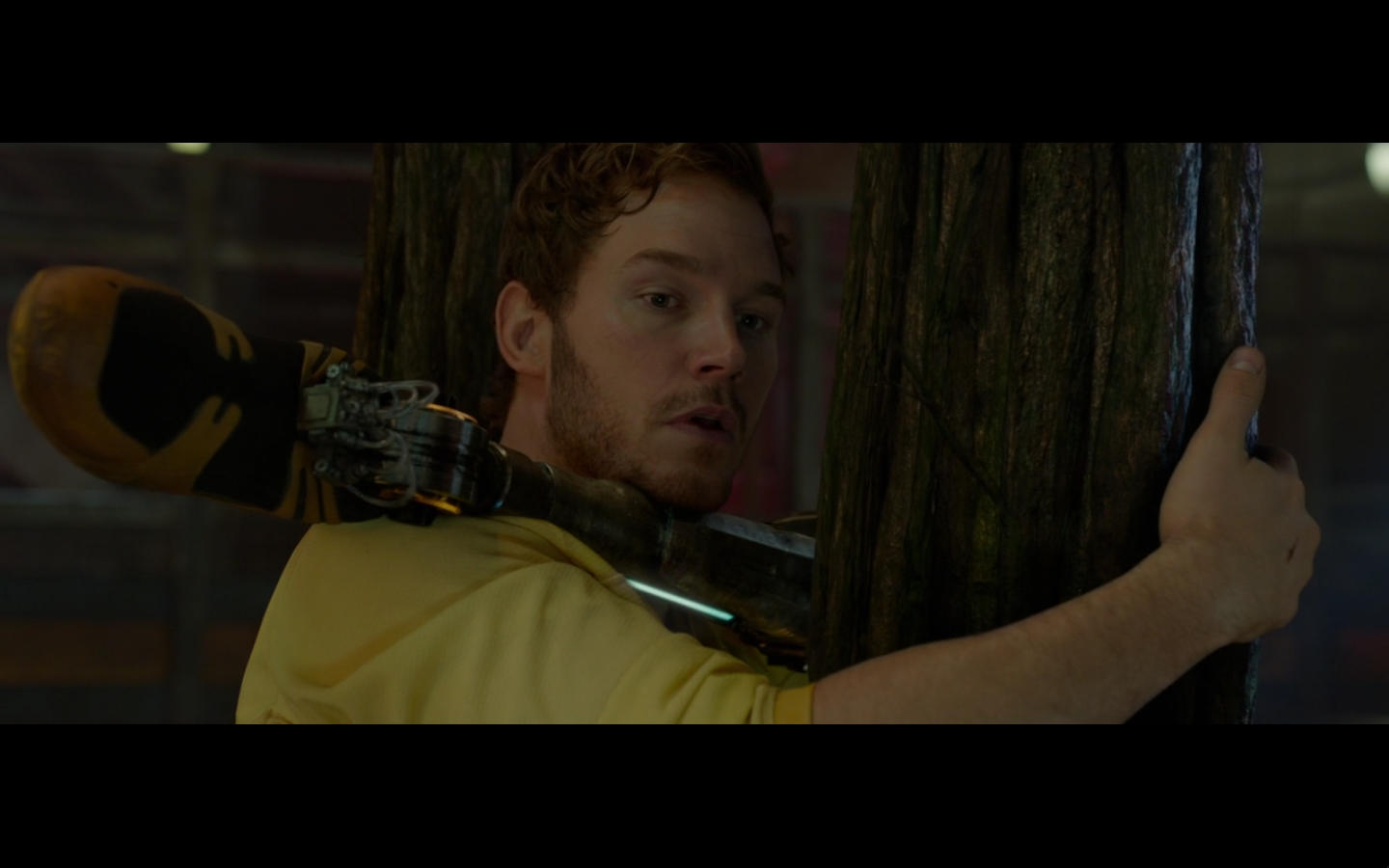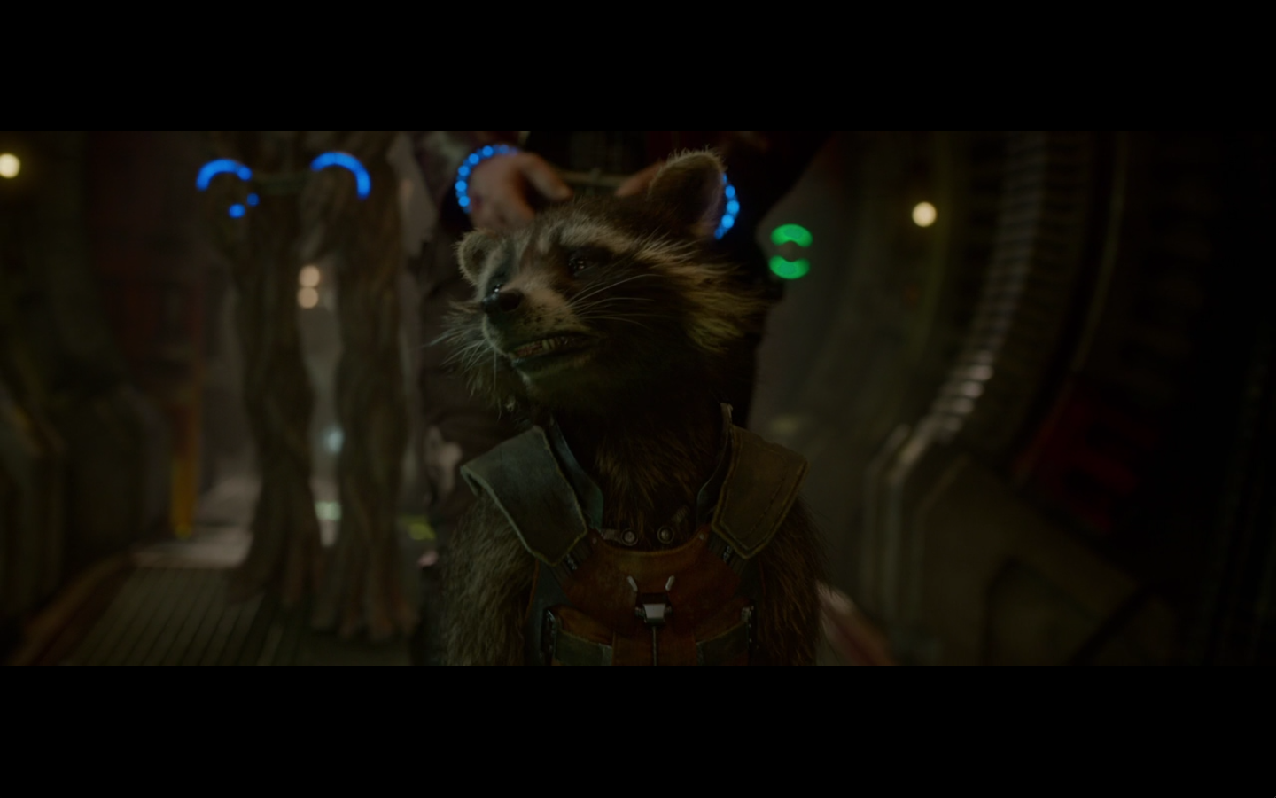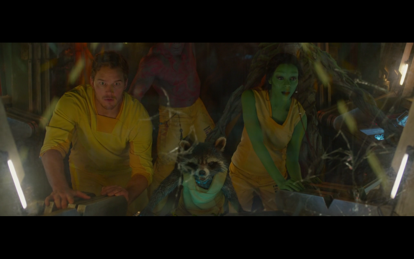 Let’s do a quick rundown of the tropes. Lovable, handsome oaf who leads the gang, enigmatic green chick, overly literal MMA fighter, computer-hacking-bounty-hunting raccoon, tree.