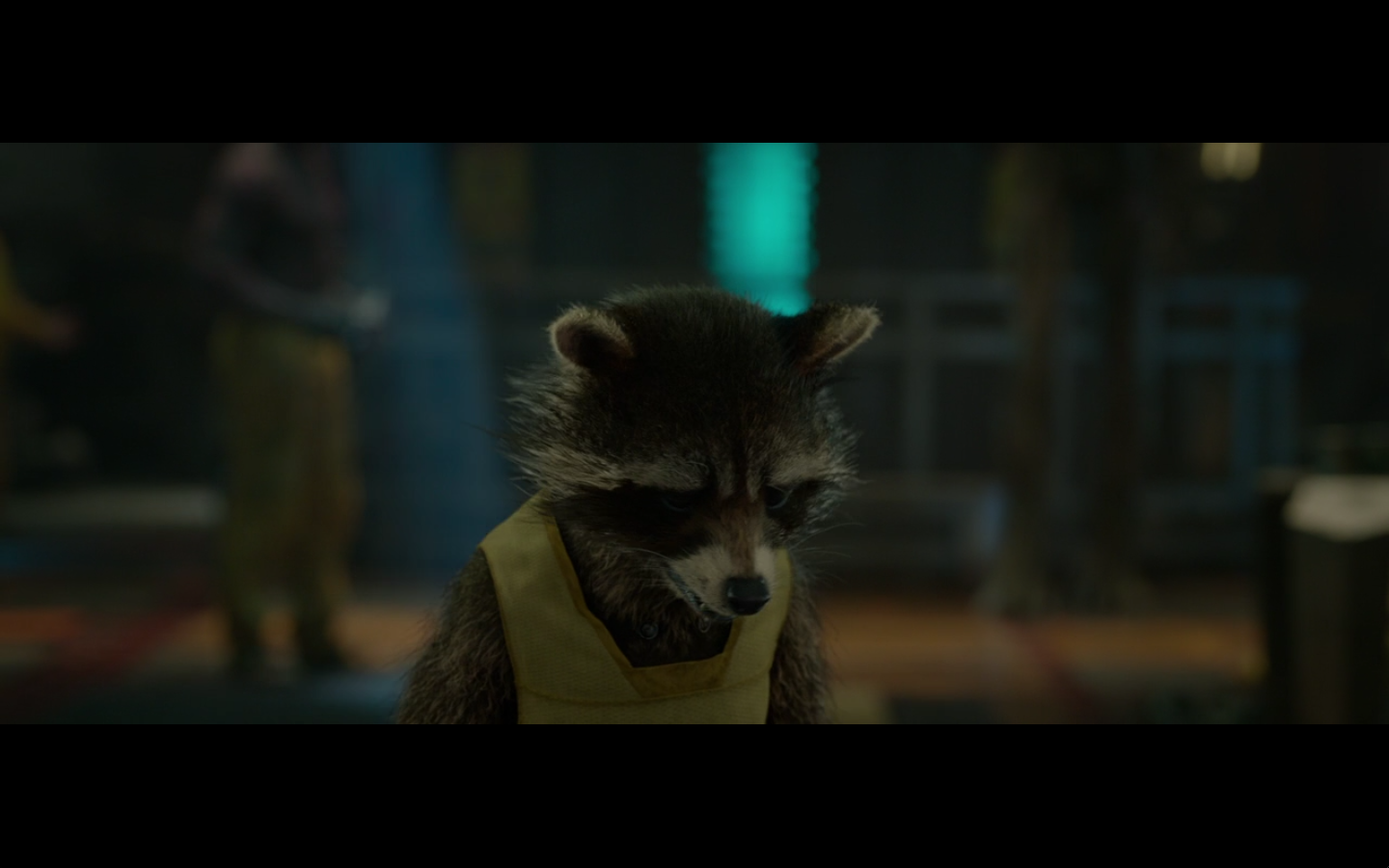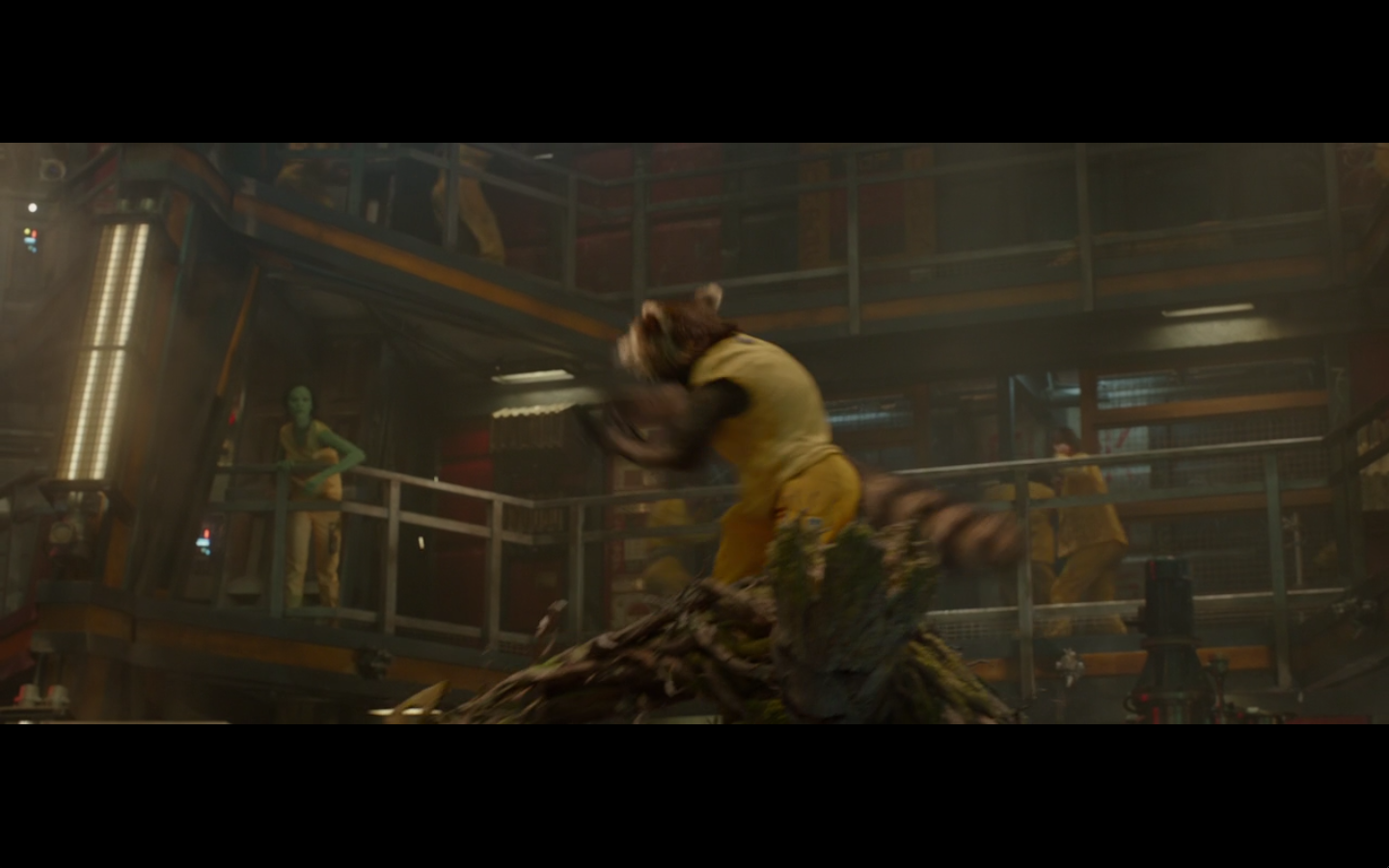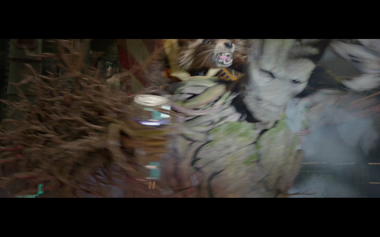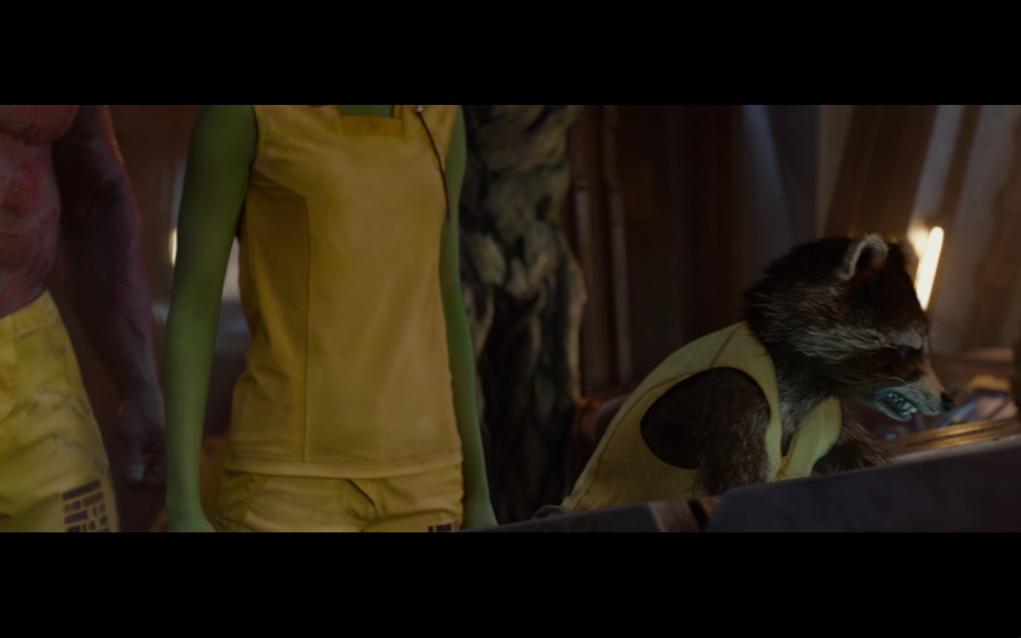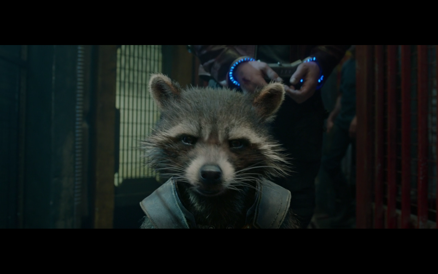 Let’s do a quick rundown of the tropes. Lovable, handsome oaf who leads the gang, enigmatic green chick, overly literal MMA fighter, computer-hacking-bounty-hunting raccoon, tree.