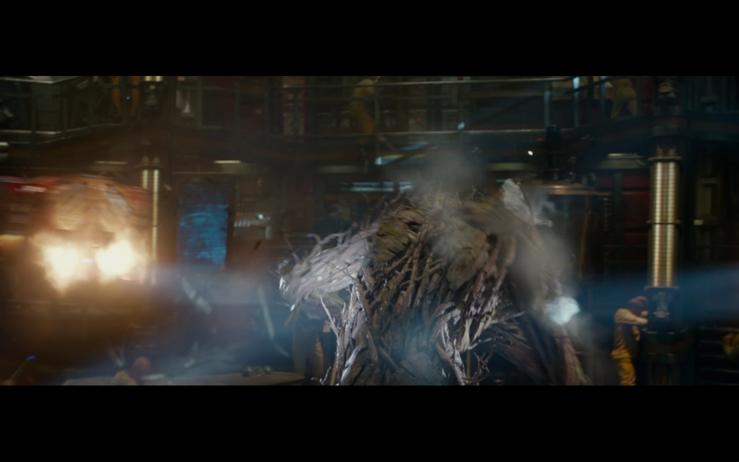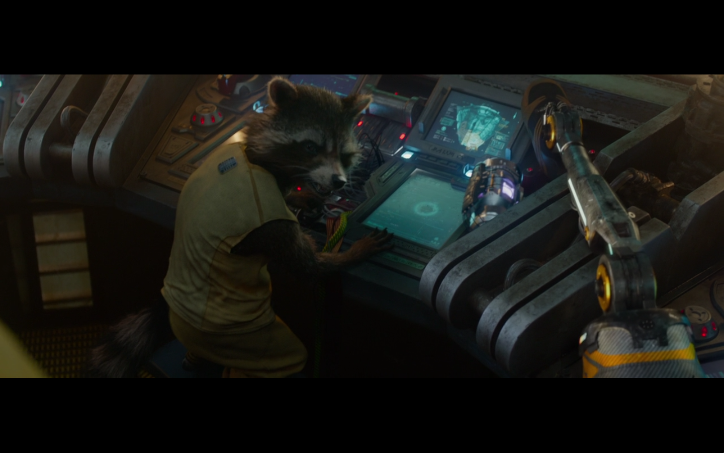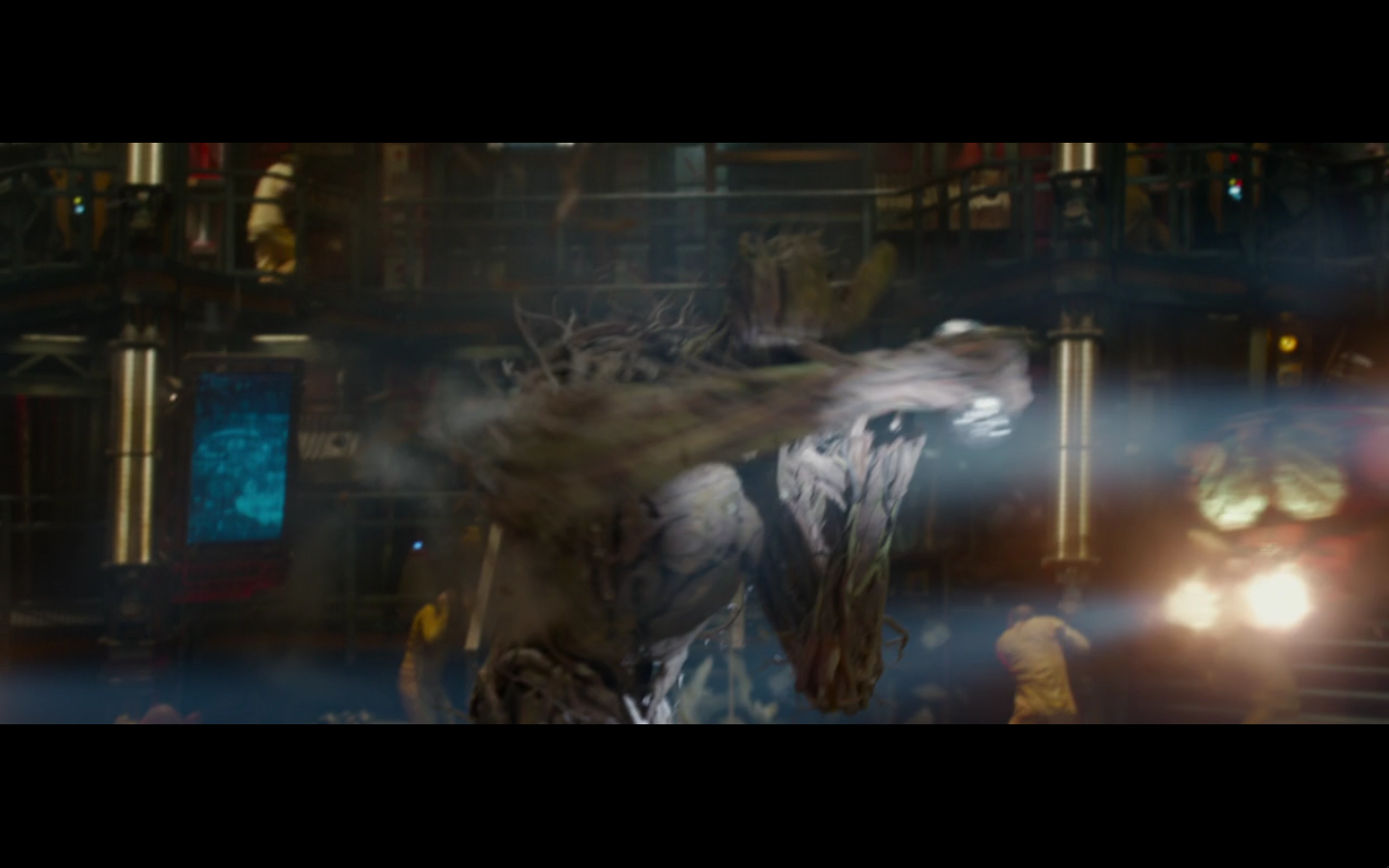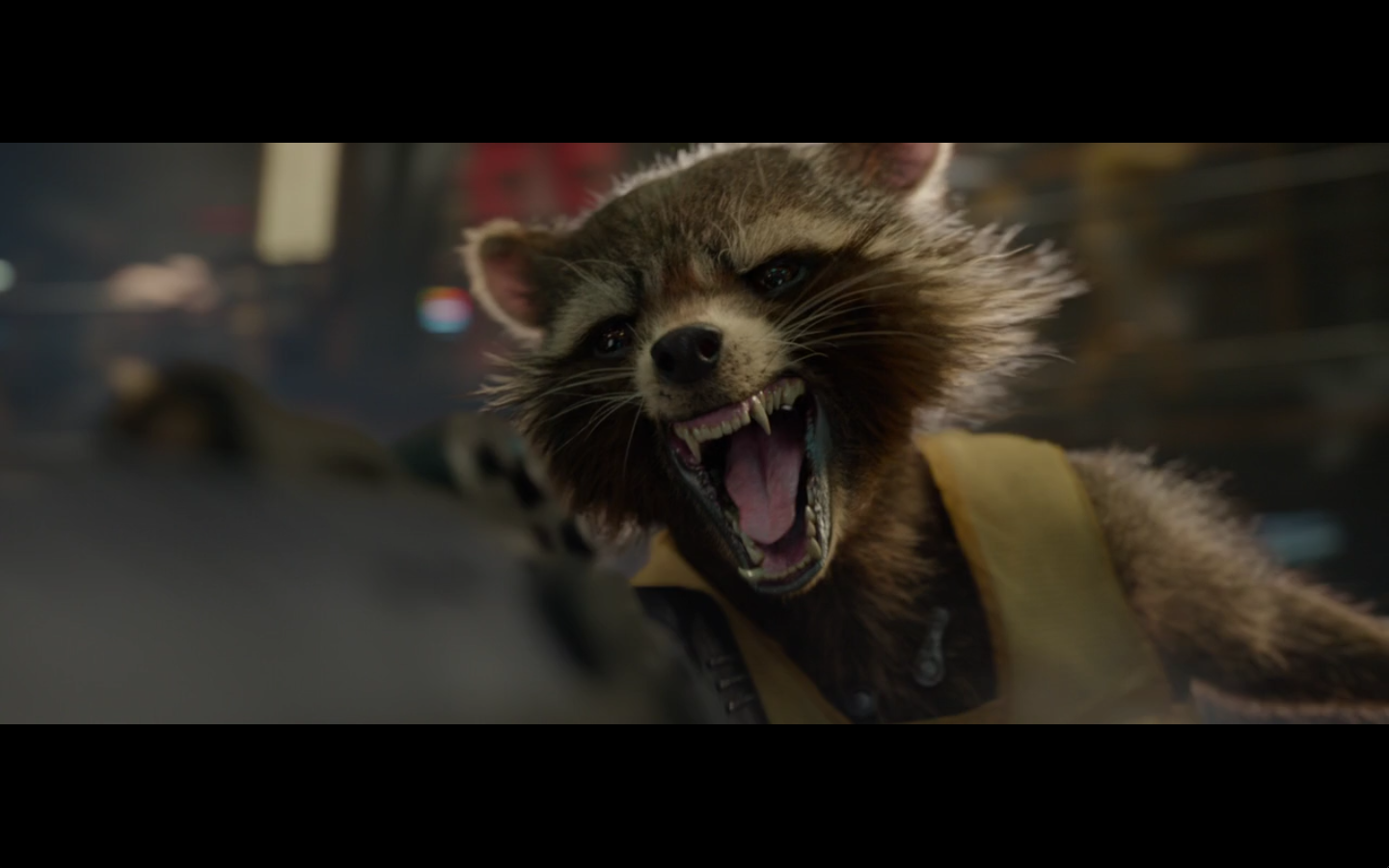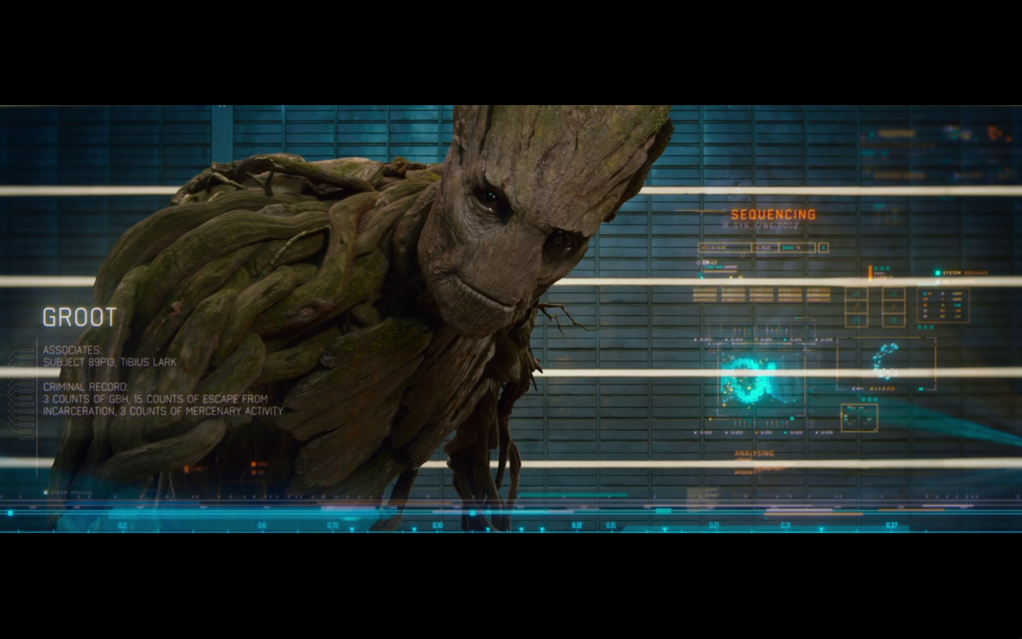 Let’s do a quick rundown of the tropes. Lovable, handsome oaf who leads the gang, enigmatic green chick, overly literal MMA fighter, computer-hacking-bounty-hunting raccoon, tree.