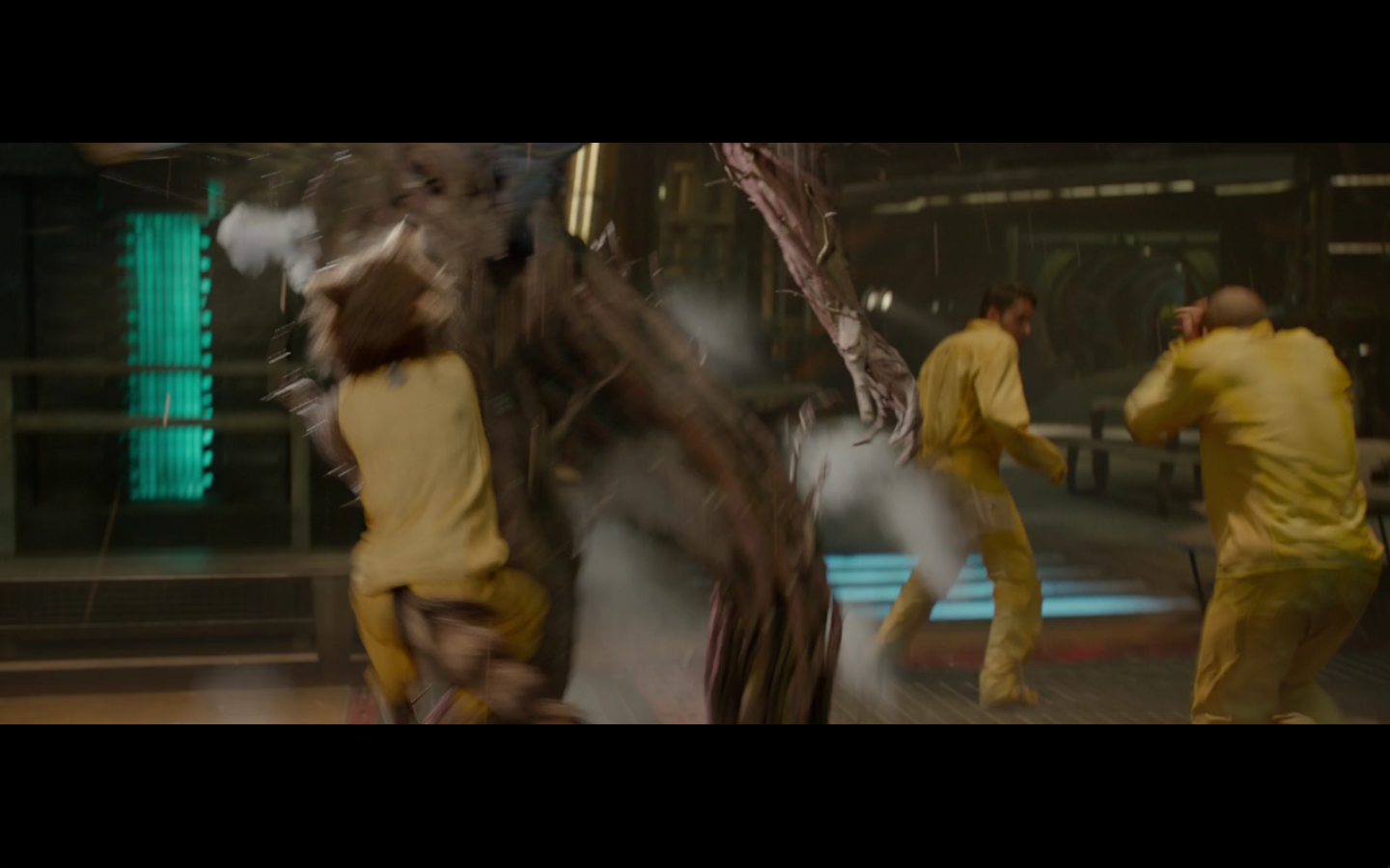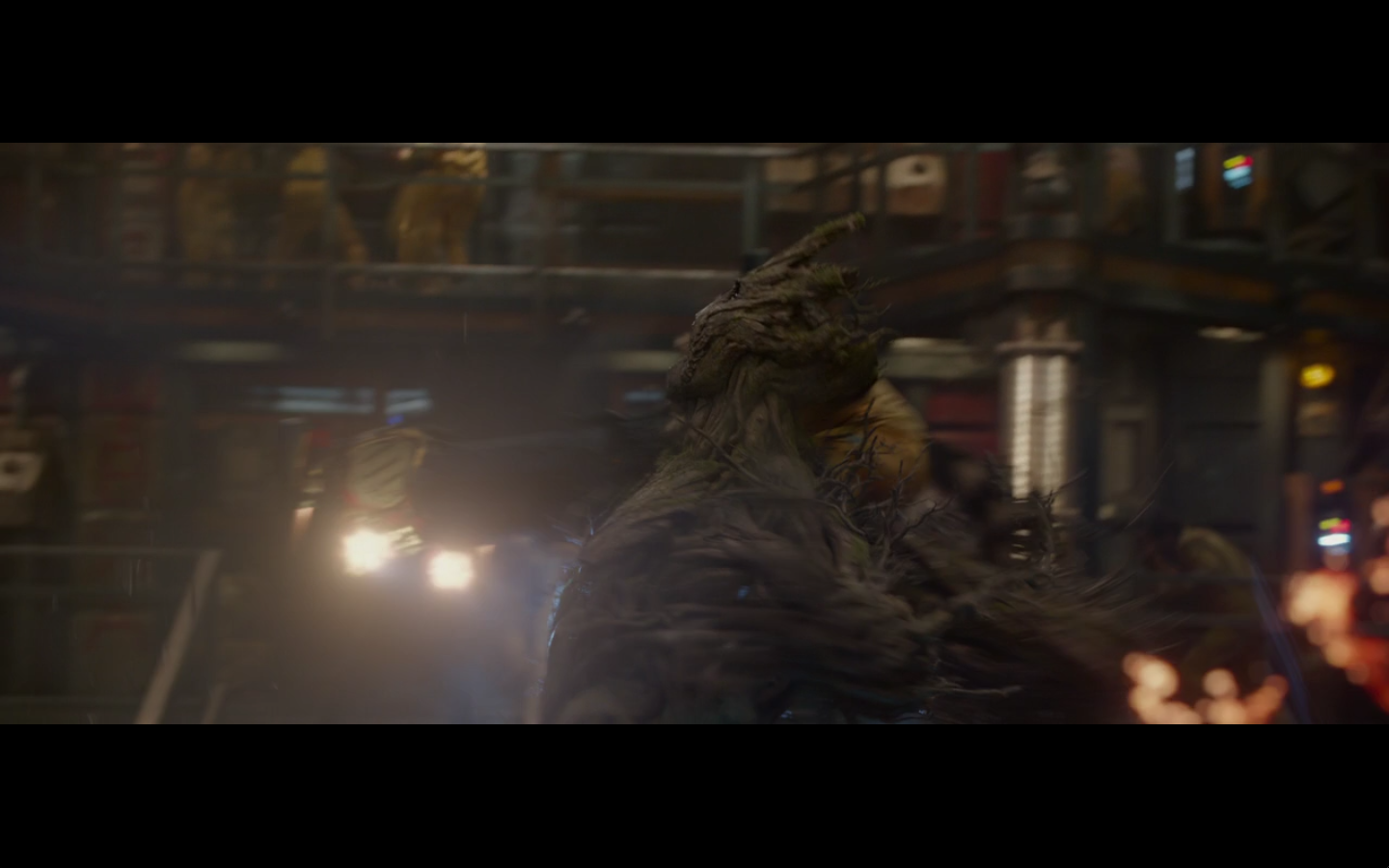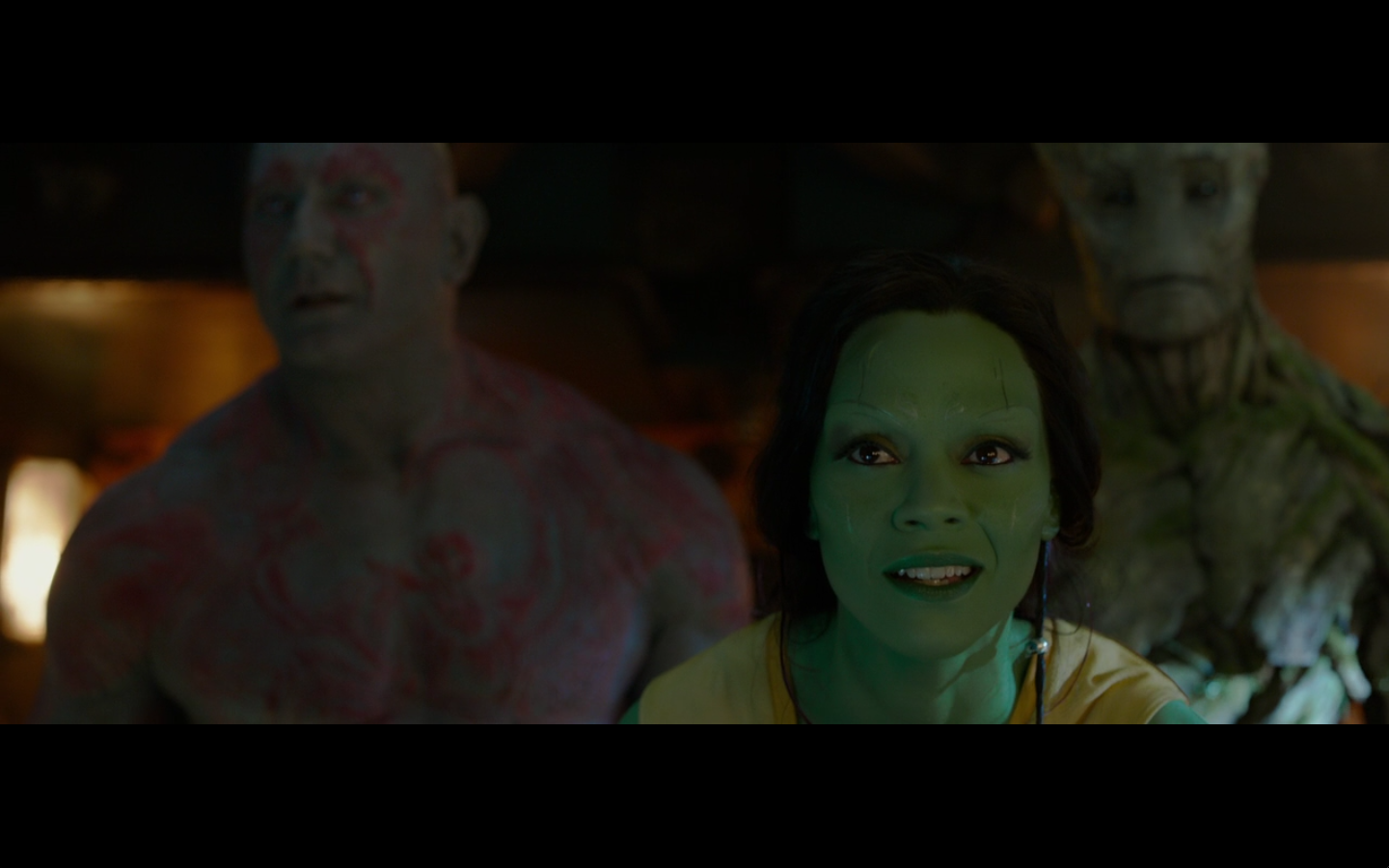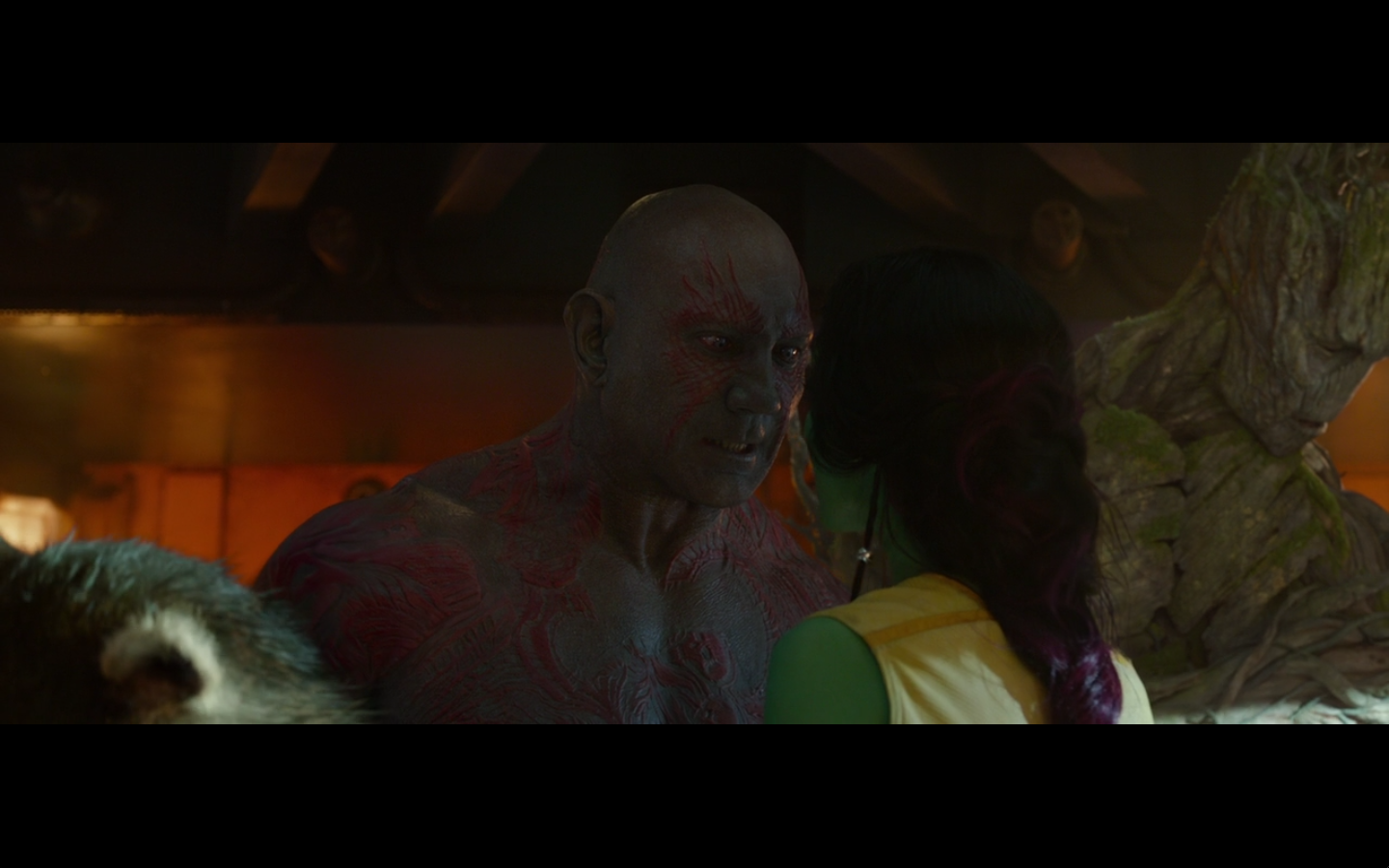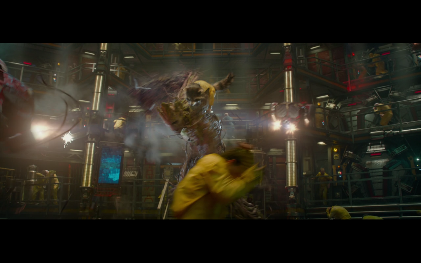 Let’s do a quick rundown of the tropes. Lovable, handsome oaf who leads the gang, enigmatic green chick, overly literal MMA fighter, computer-hacking-bounty-hunting raccoon, tree.