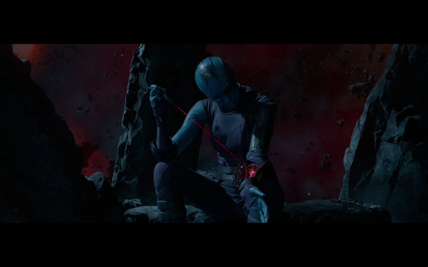 She’s genetically modified? Thanos was her dad? Oh yeah. I guess I remember that. Isn’t he the single baddest villain in the entire galaxy? Why isn’t he destroying this planet to get her back?