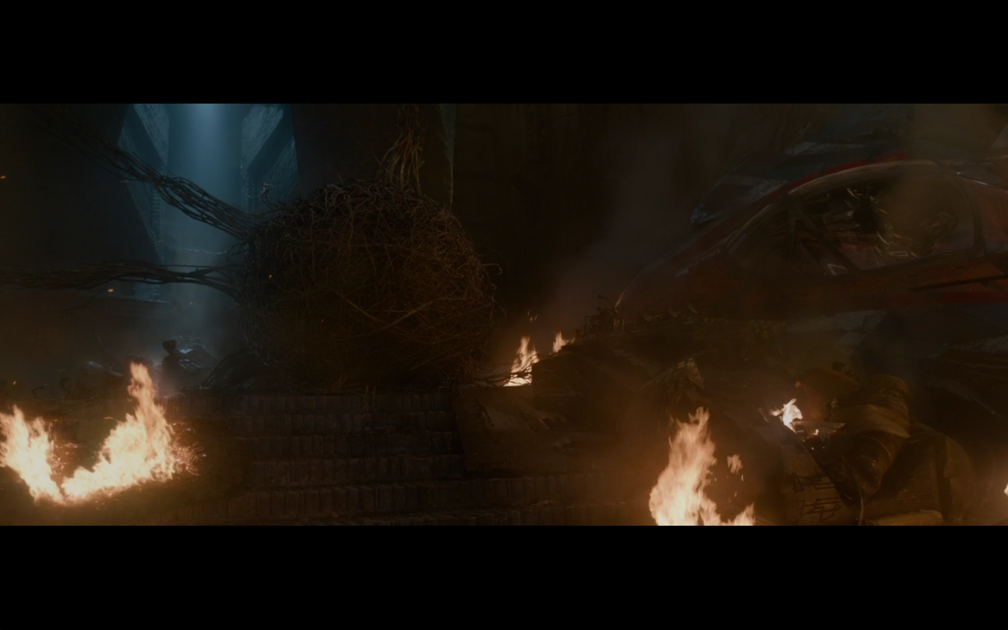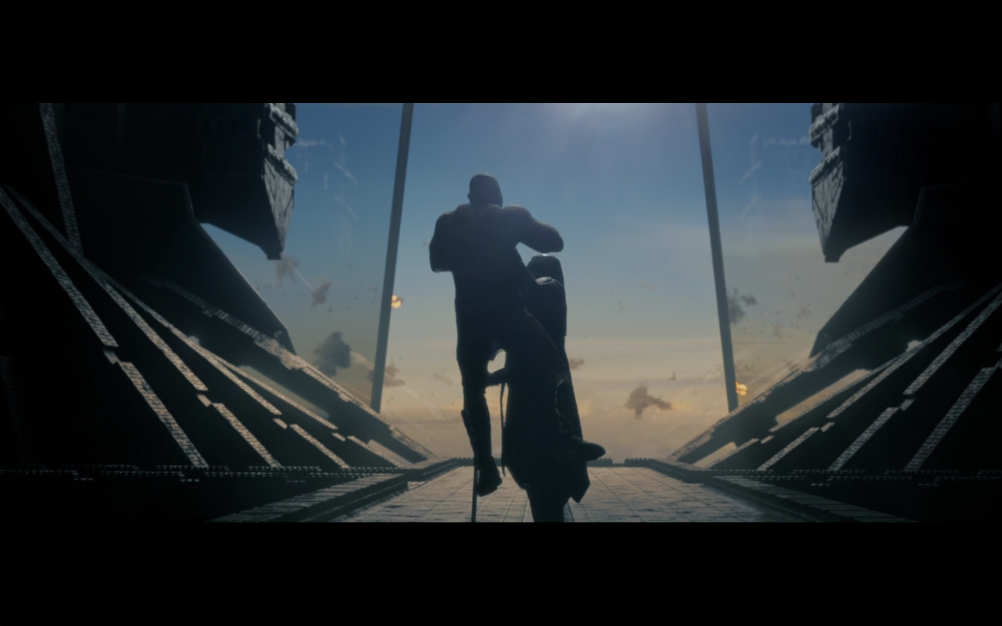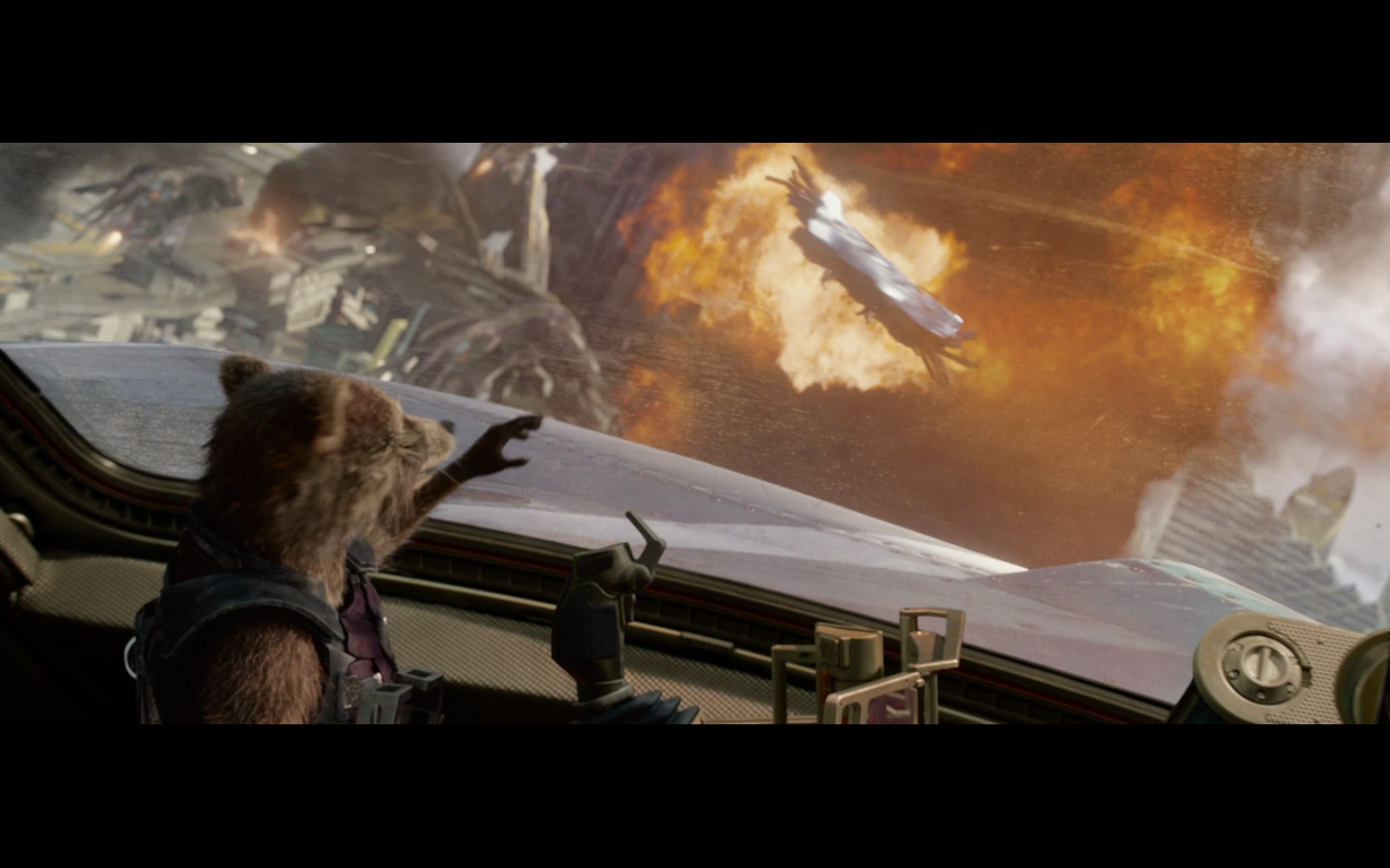 This is cool. The fight being interrupted by parts of the ship being blown up. I like that.